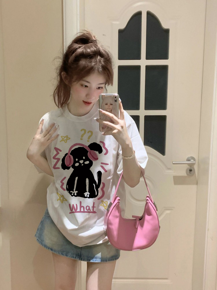 短袖小众t恤女夏季2023新款宽松原创纯棉半袖体恤小个子温柔上衣