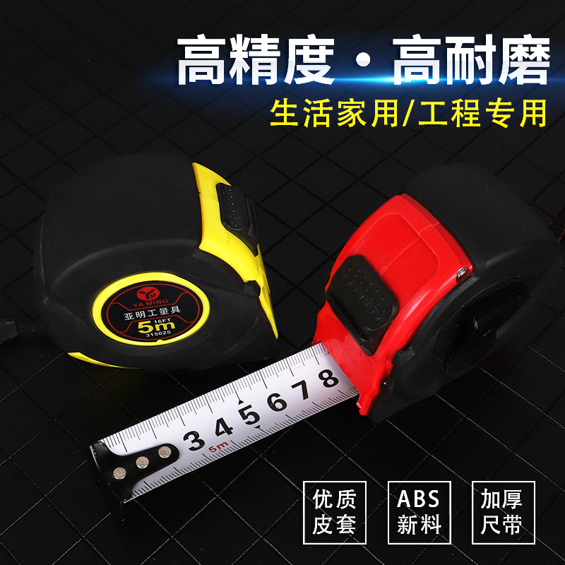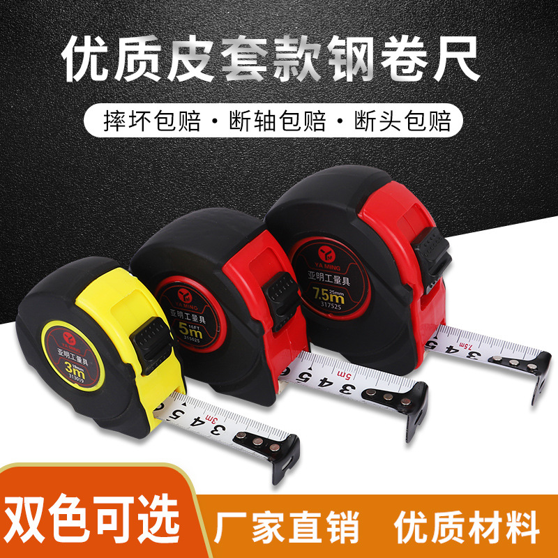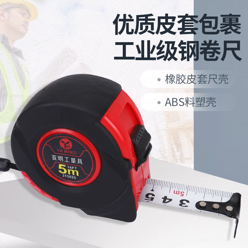 9URT亚明三米五米七米五十米卷尺加厚包胶卷尺不锈钢赤字耐磨批发