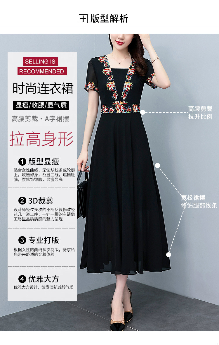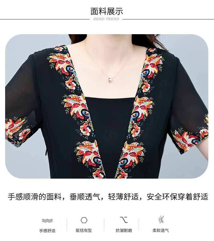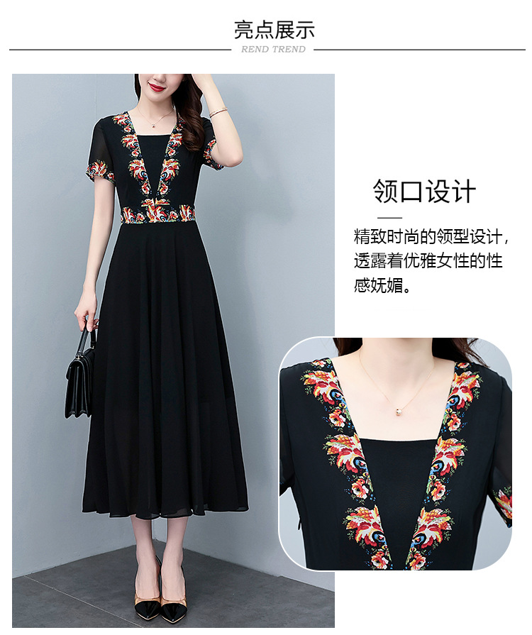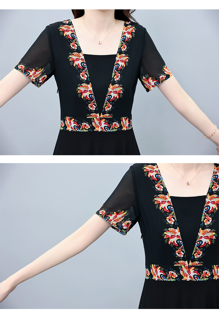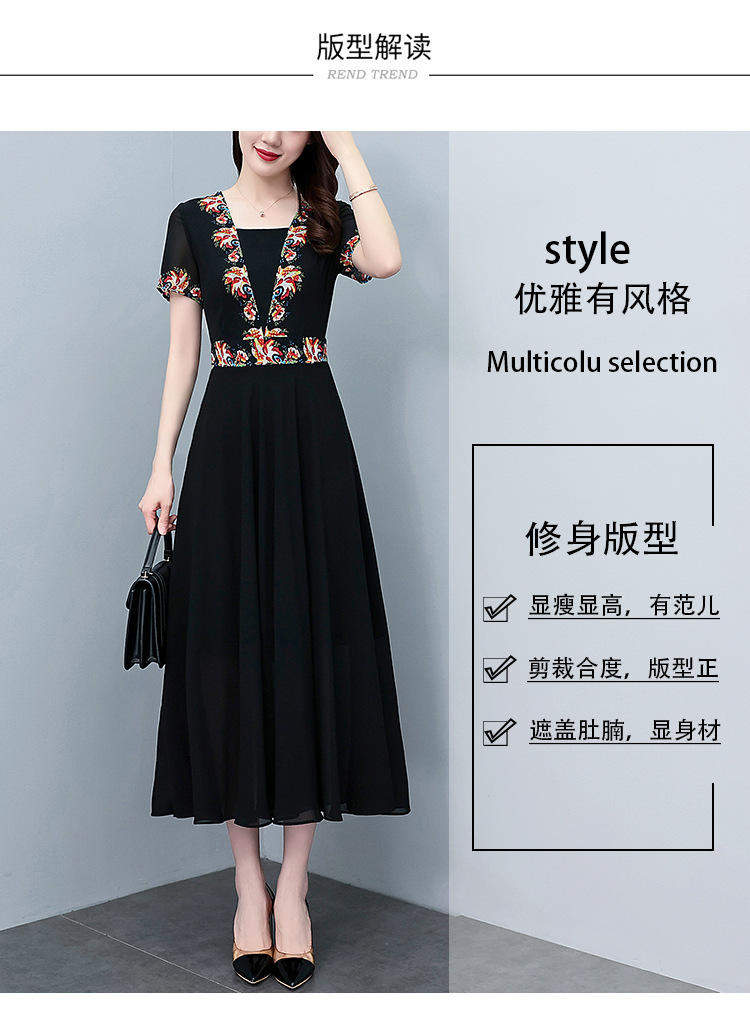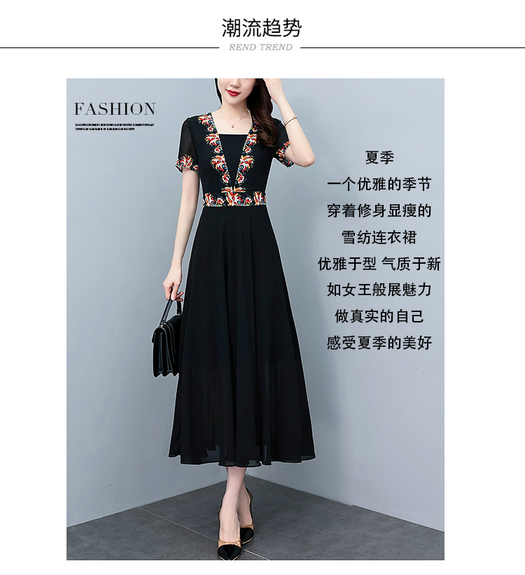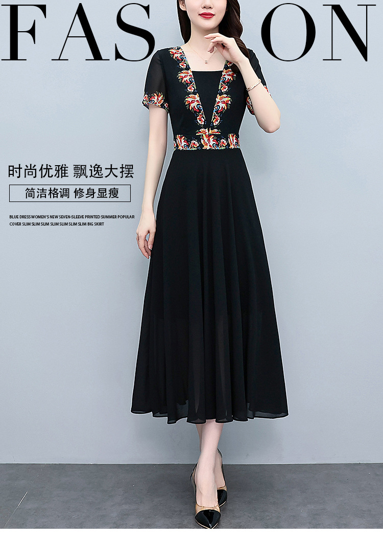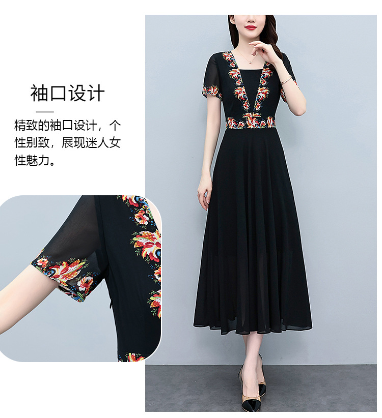 2023夏季新款雪纺碎花连衣裙大码胖mm收腰显瘦遮肚长裙