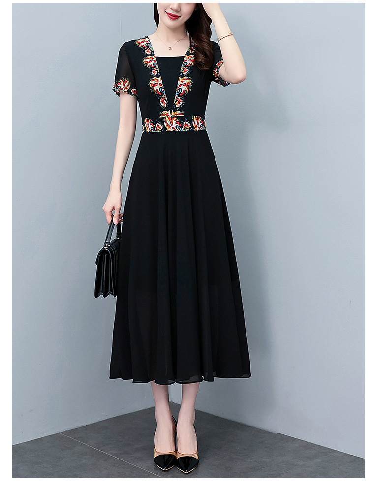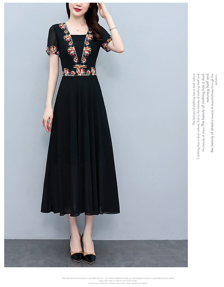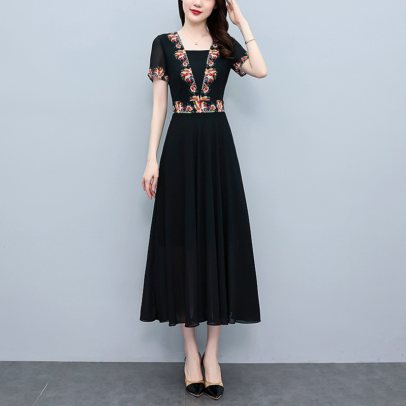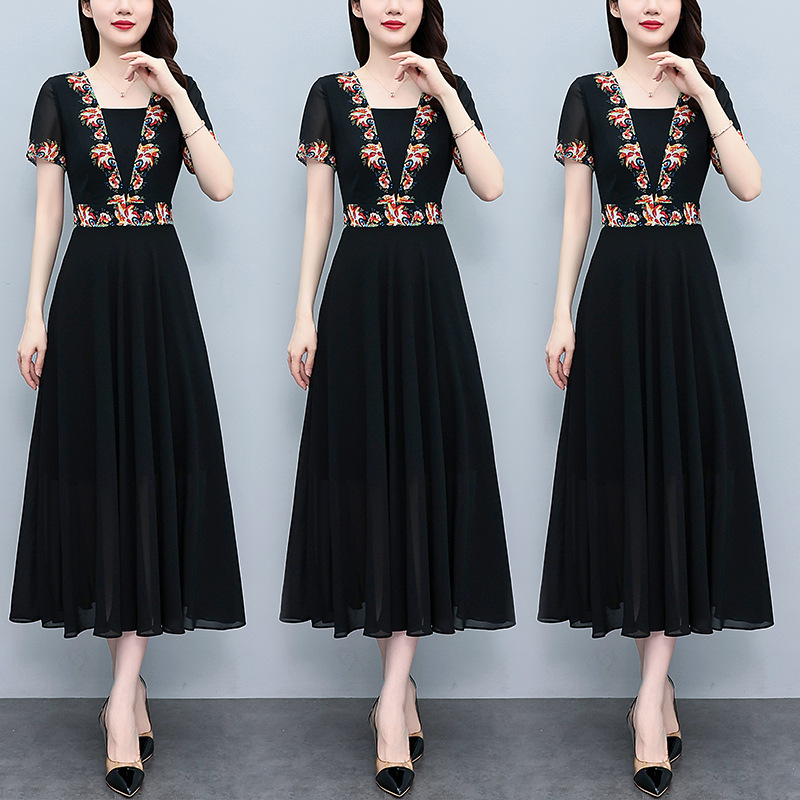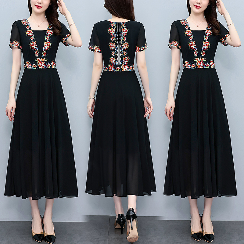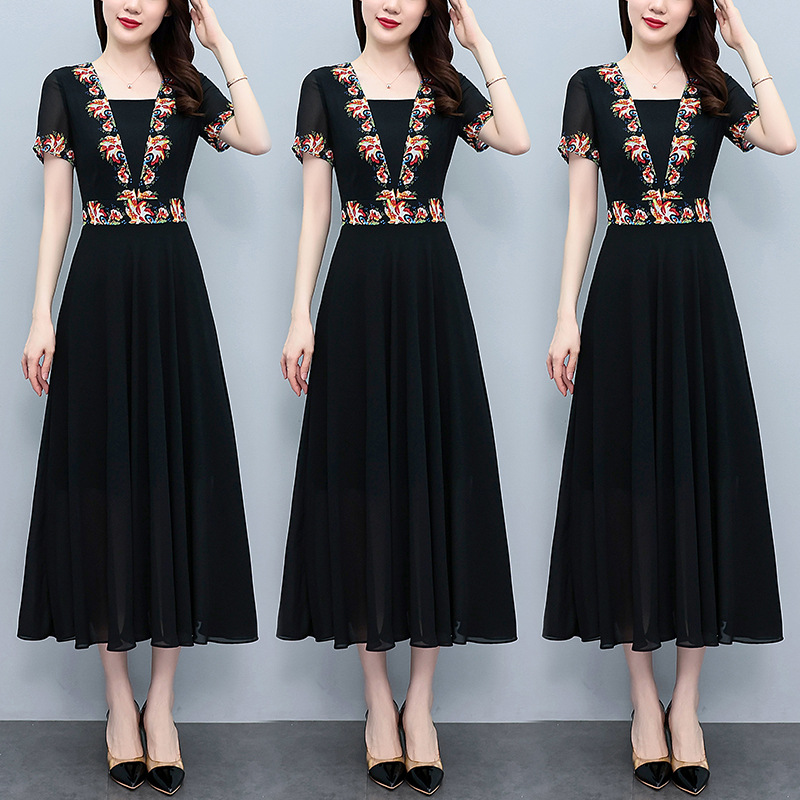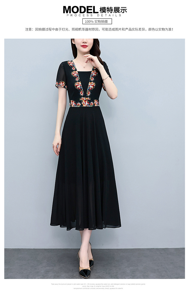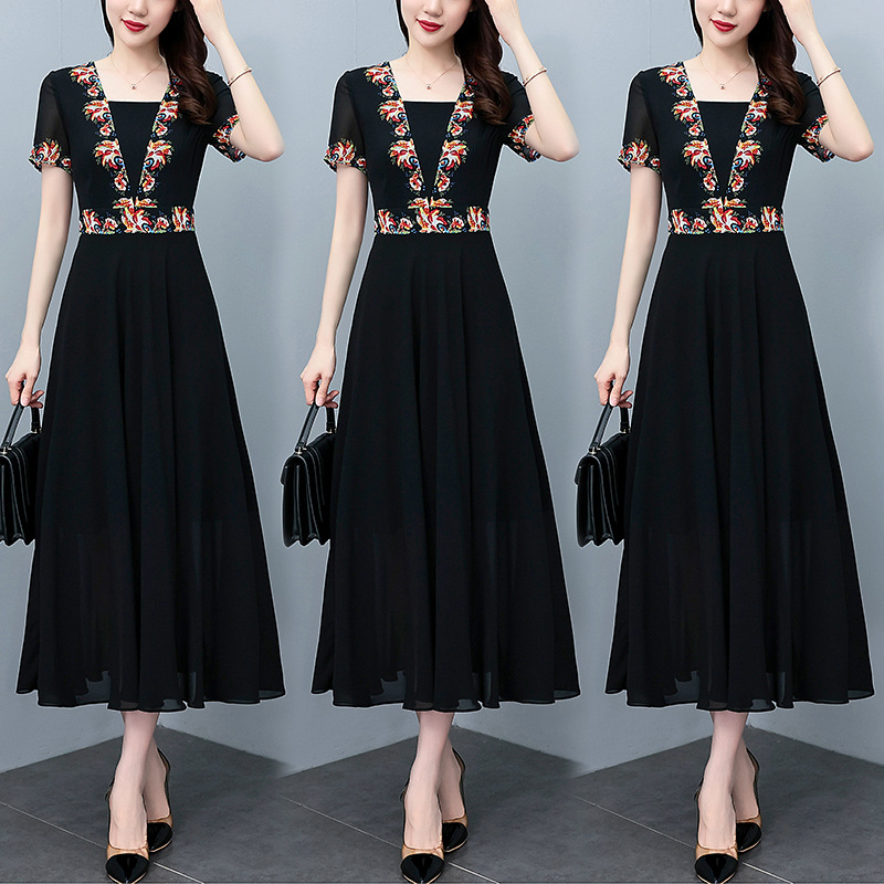 2023夏季新款雪纺碎花连衣裙大码胖mm收腰显瘦遮肚长裙