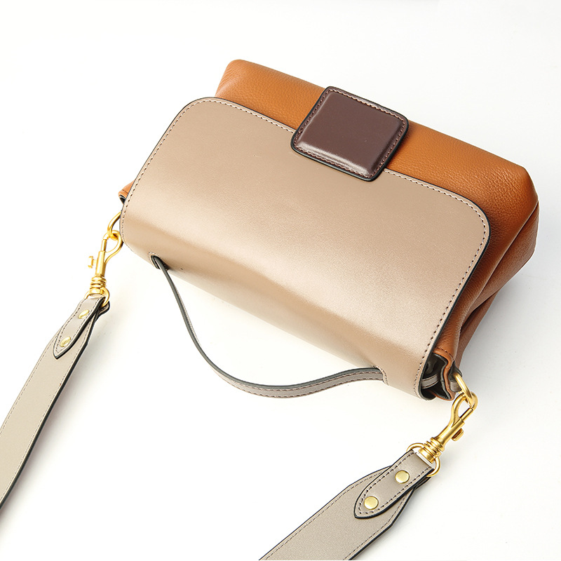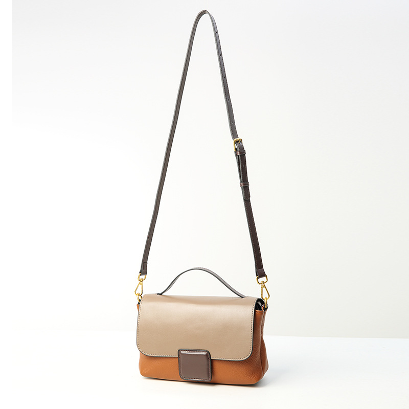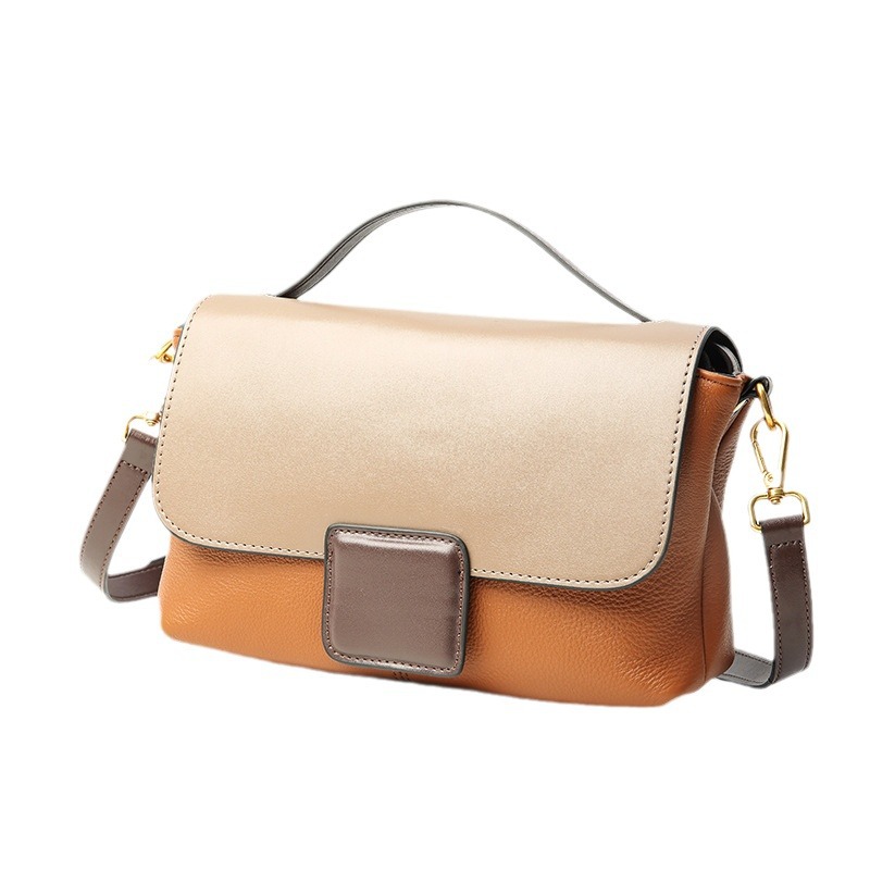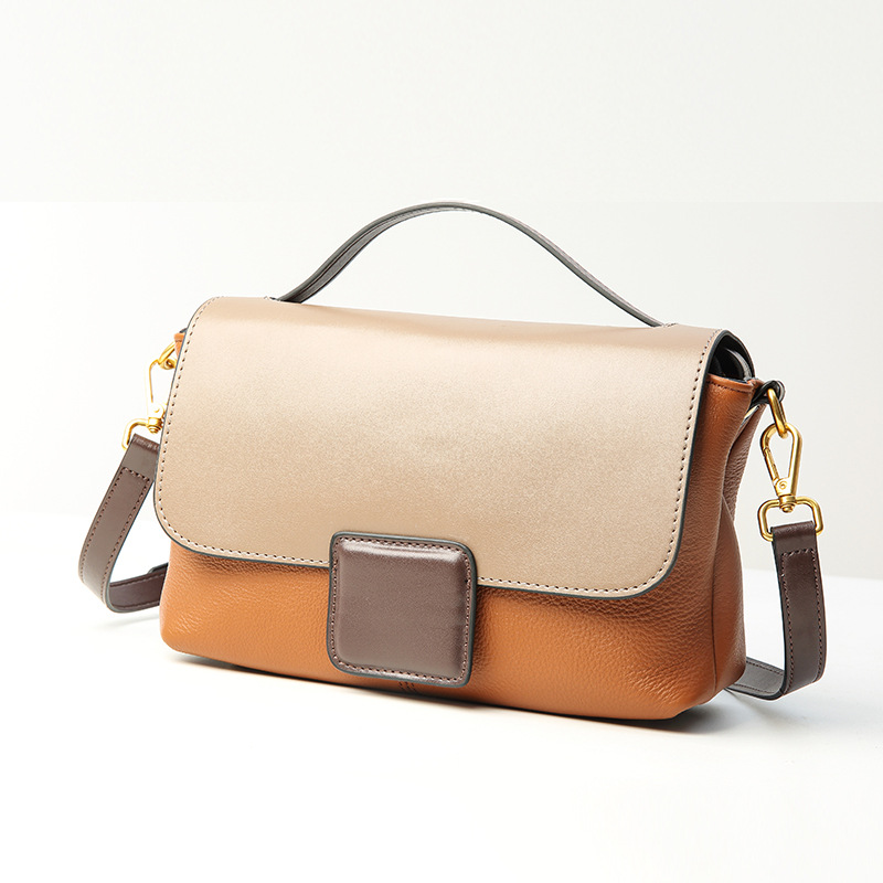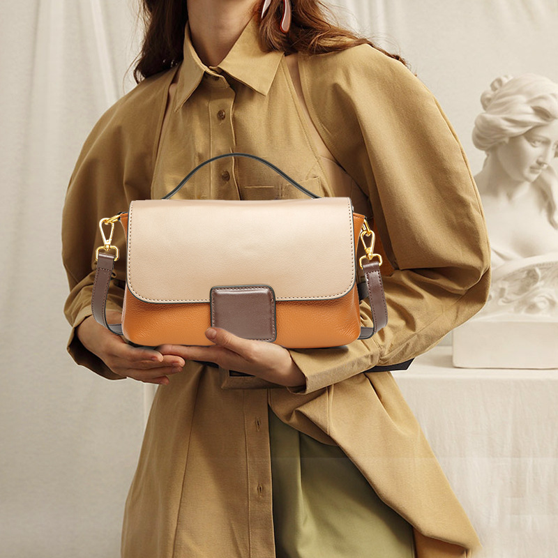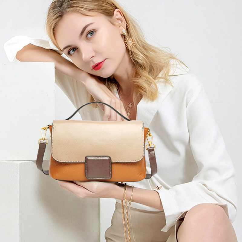 包包女2024新款头层牛皮女包 时尚百搭手提包 单肩斜挎撞色小方包