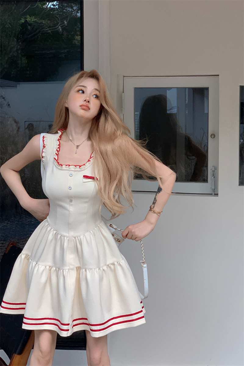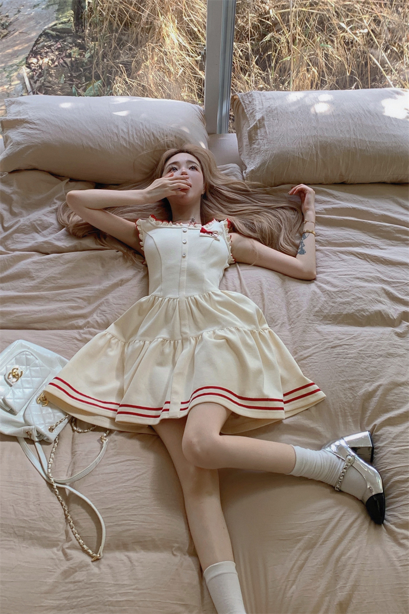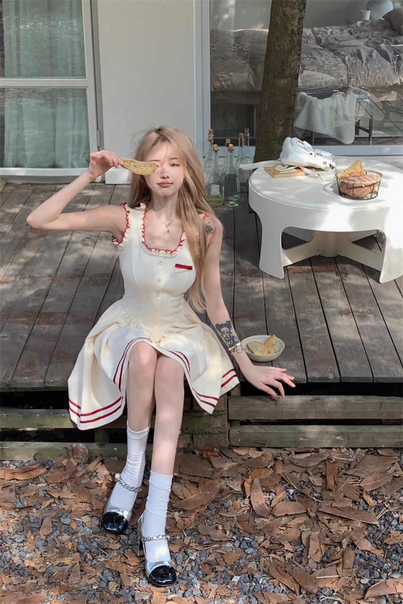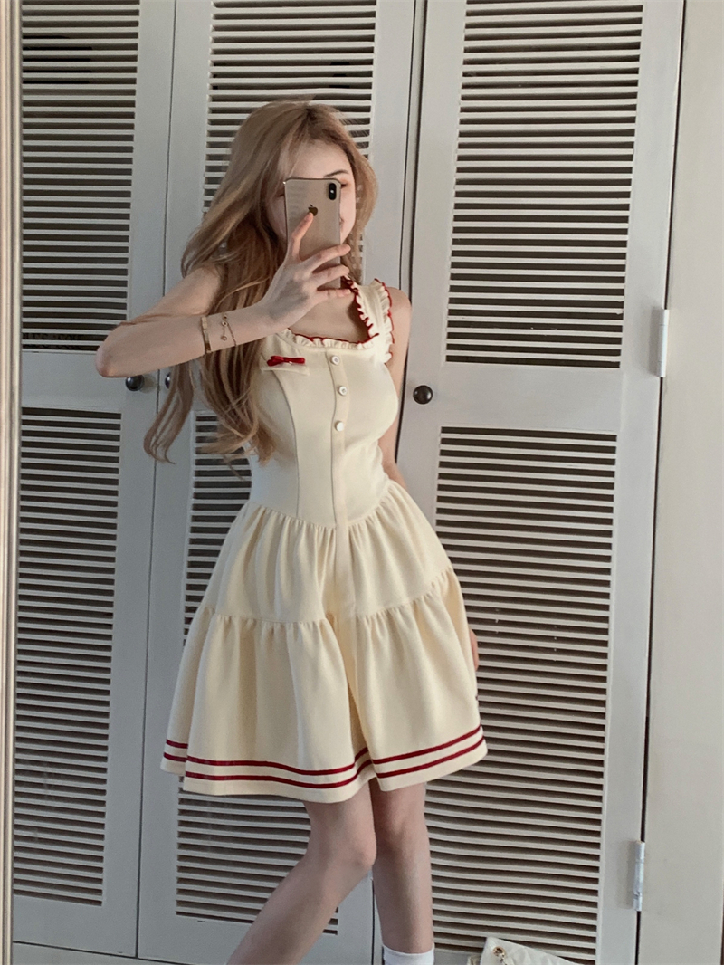 PPHOME柏林際遇~法式學院風吊帶洋裝女氣質收腰顯瘦a字短裙子