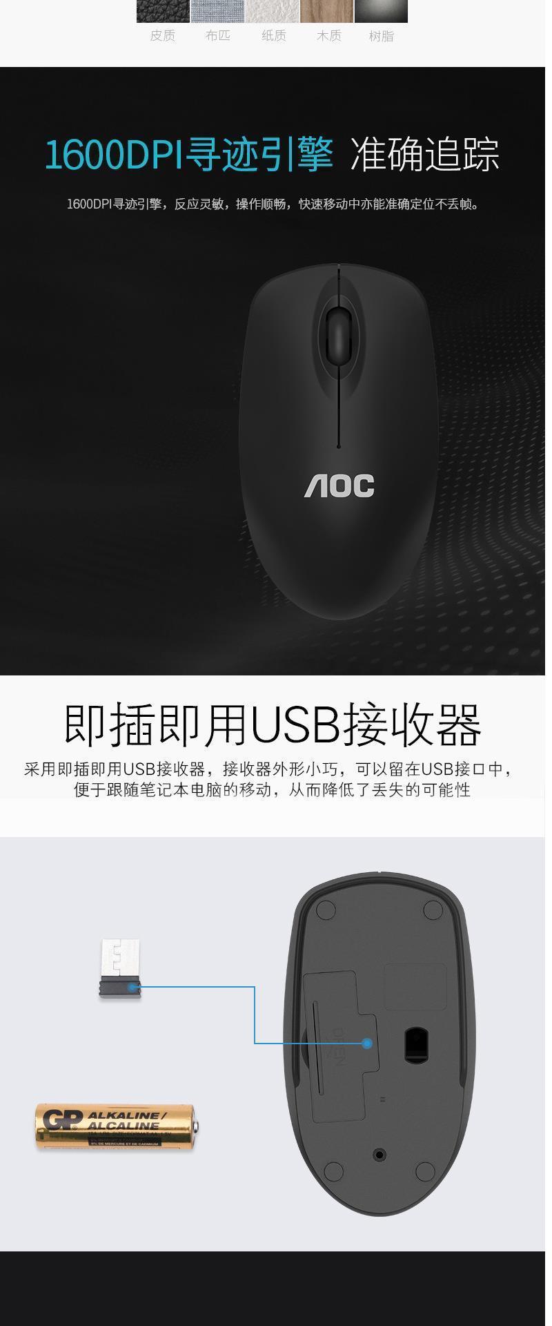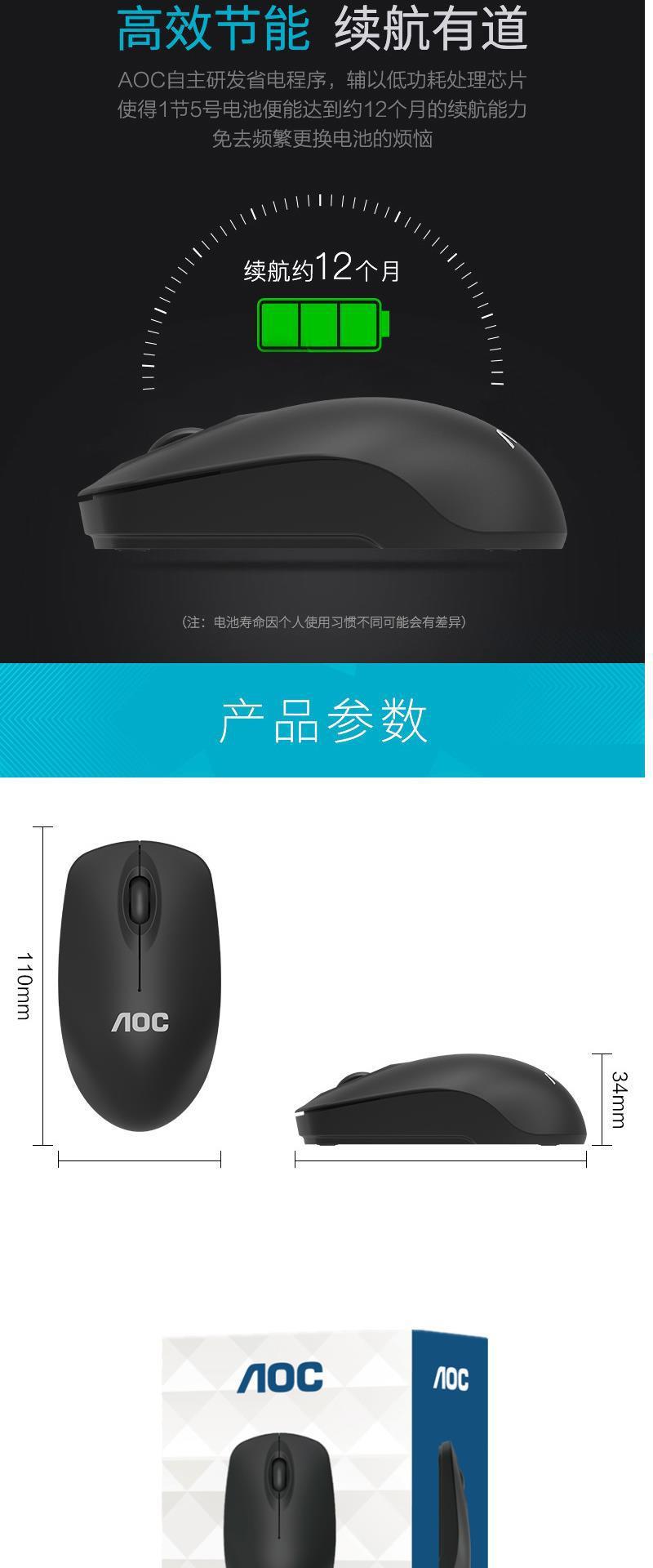 AOC MS320无线商务办公光电鼠标 usb笔记本台式电脑游戏家用鼠标