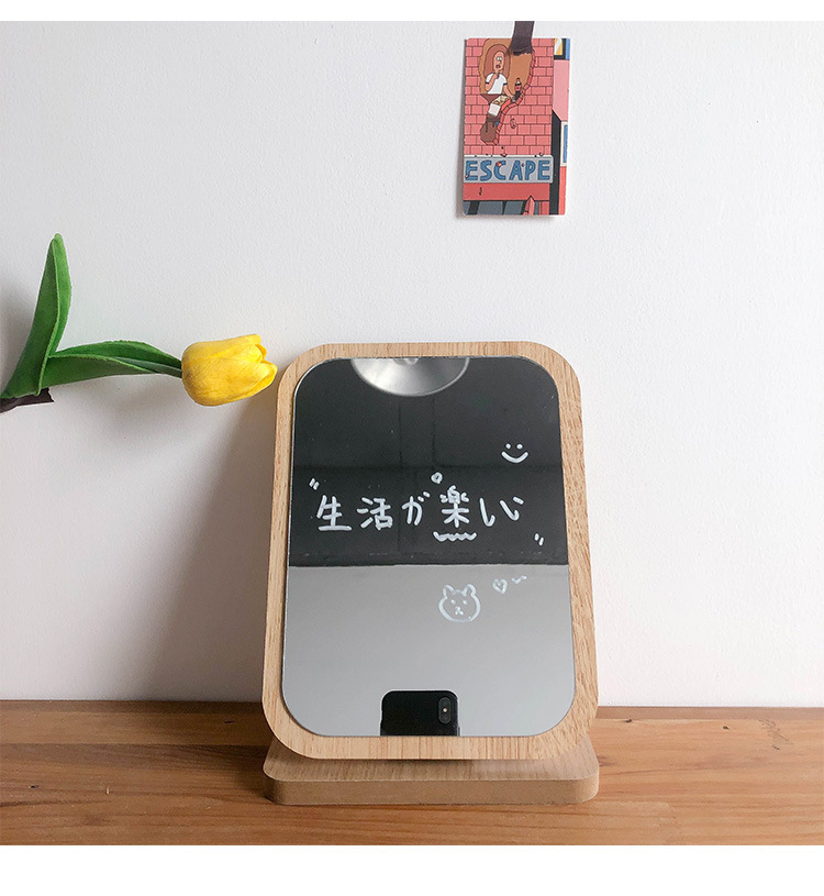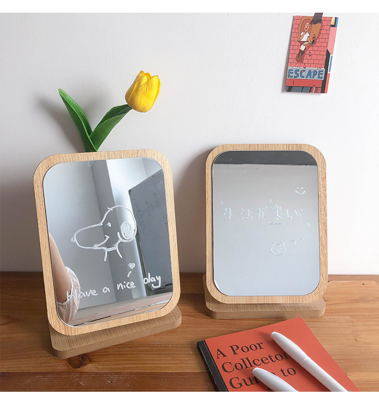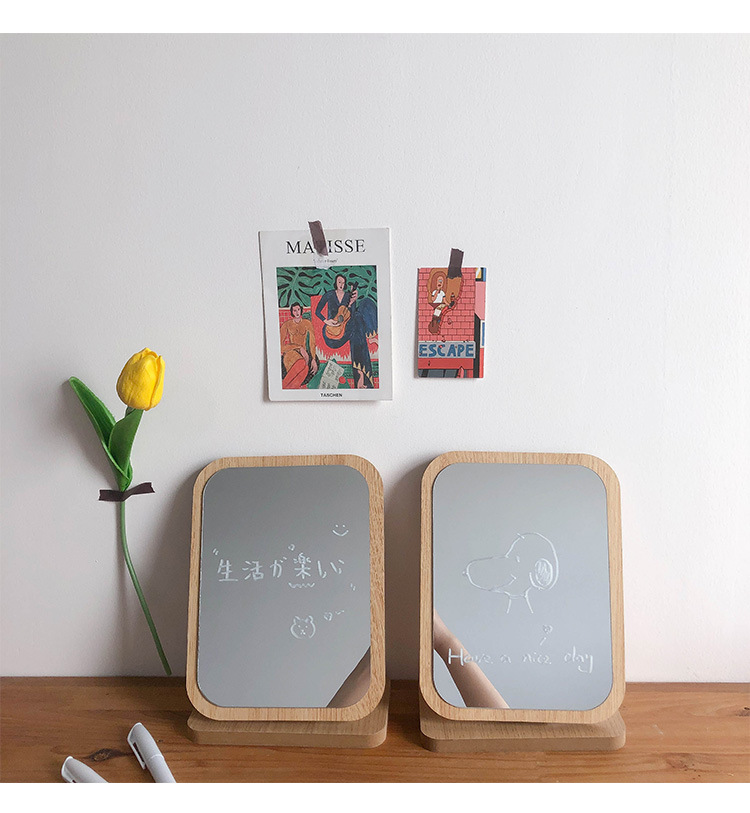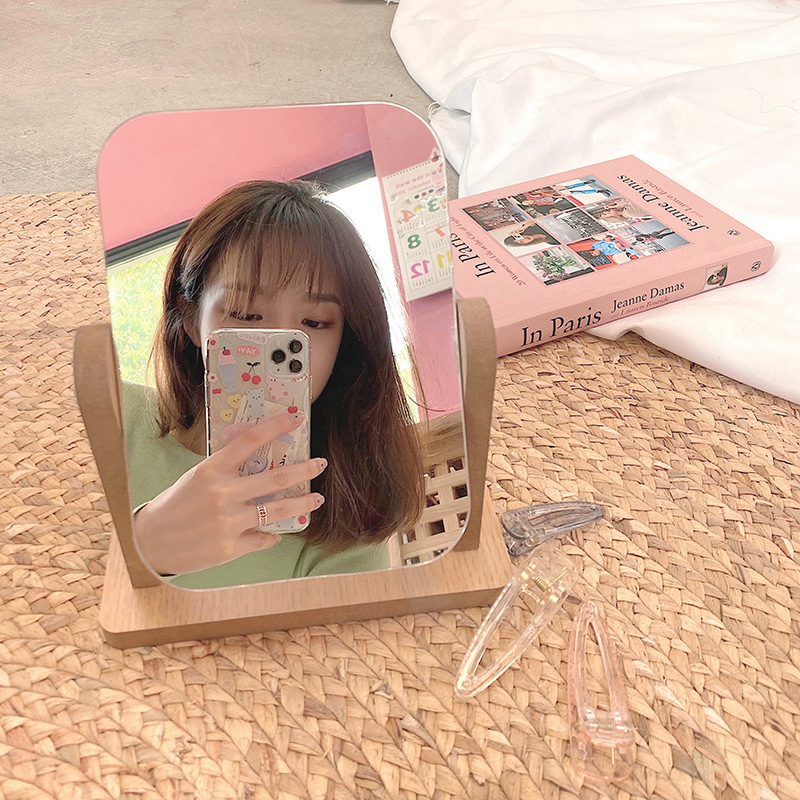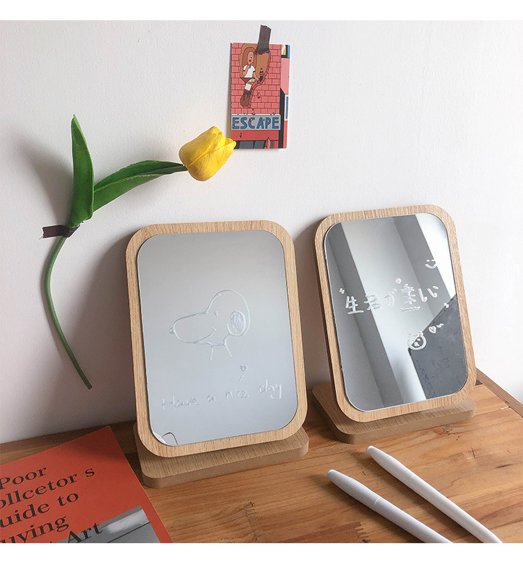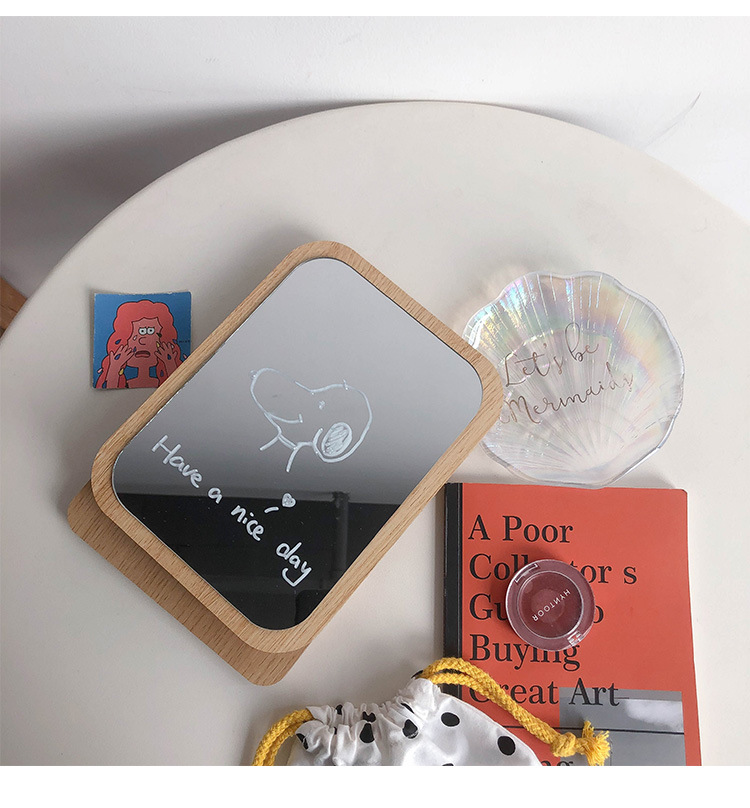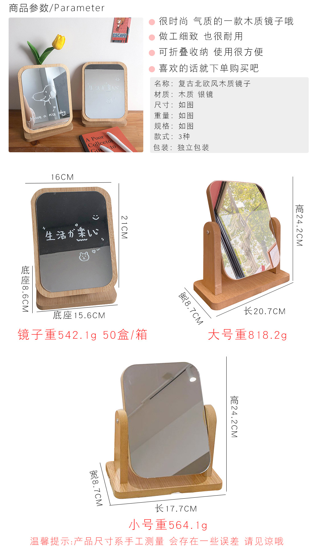 韩版ins风可爱北欧复古木质化妆镜学生宿舍便携台式桌面梳妆镜子