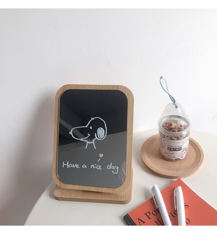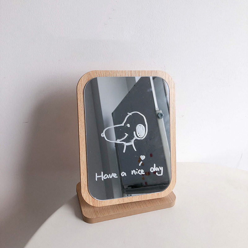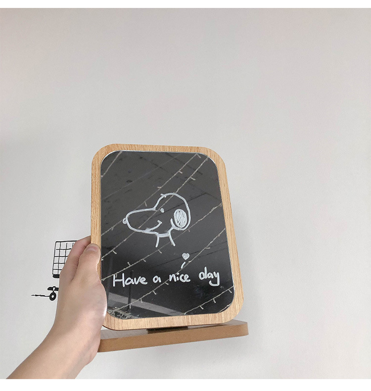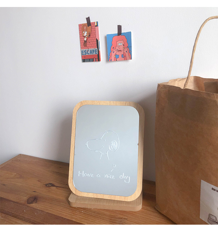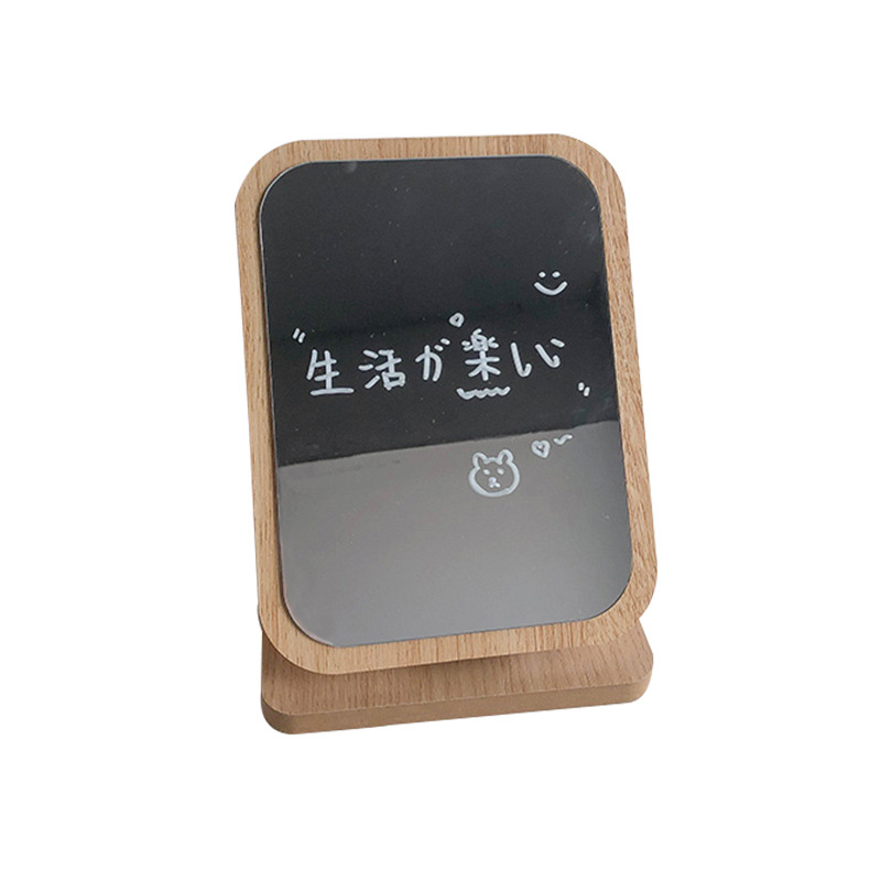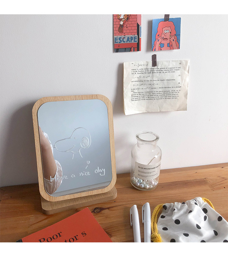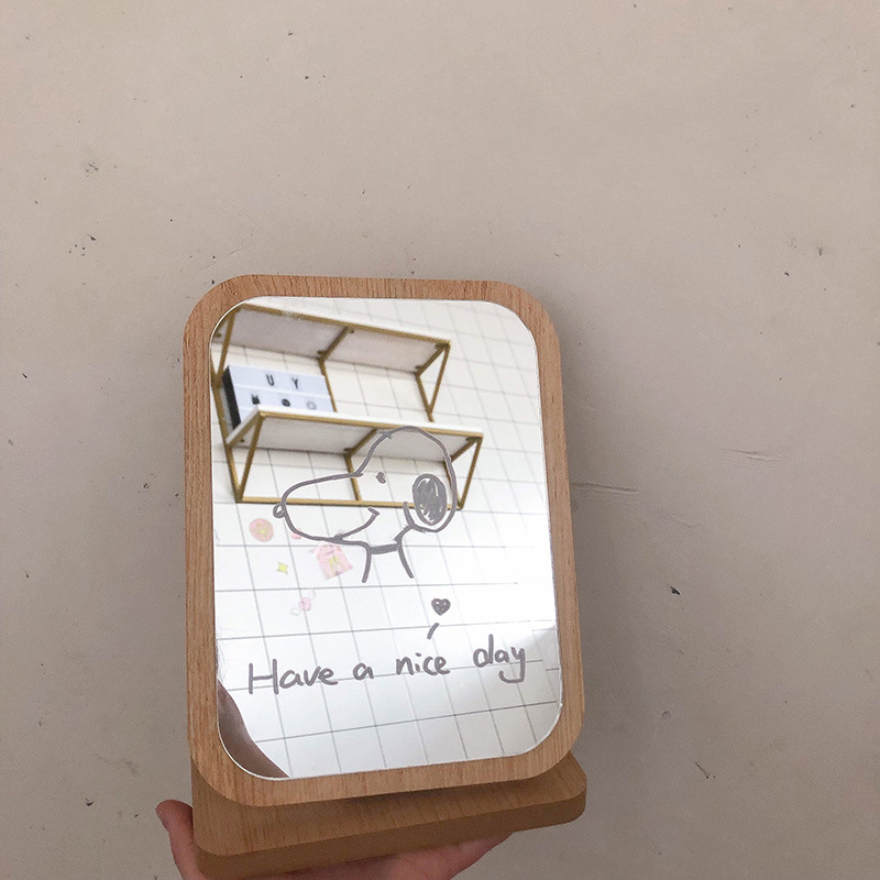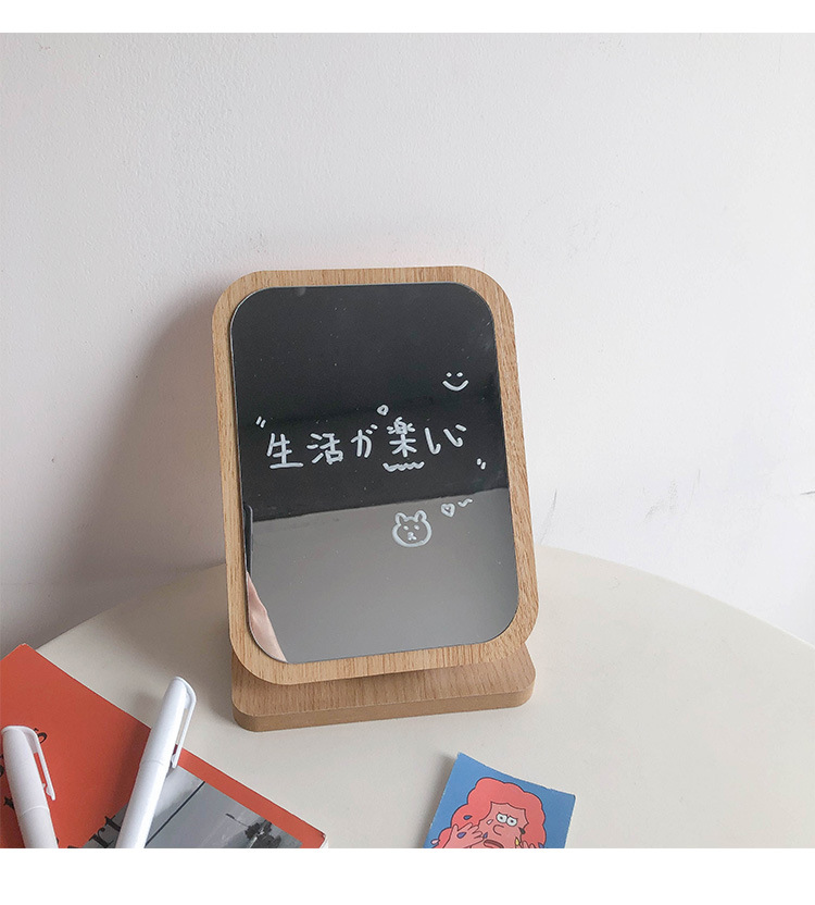 韩版ins风可爱北欧复古木质化妆镜学生宿舍便携台式桌面梳妆镜子