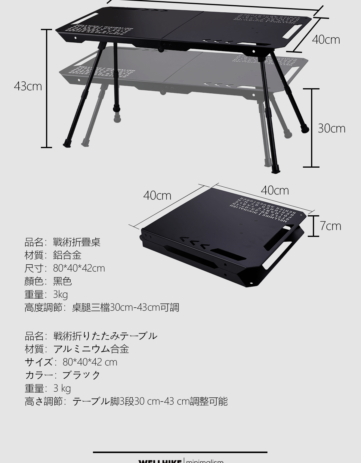 WELLHIKE戶外摺疊戰術桌 黑化鋁合金露營超輕量可攜式小桌子茶幾