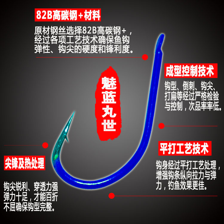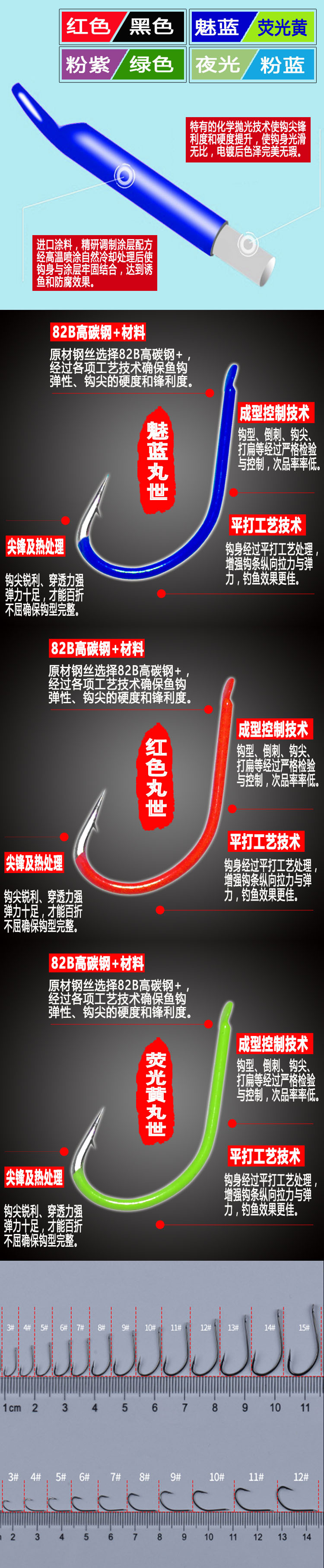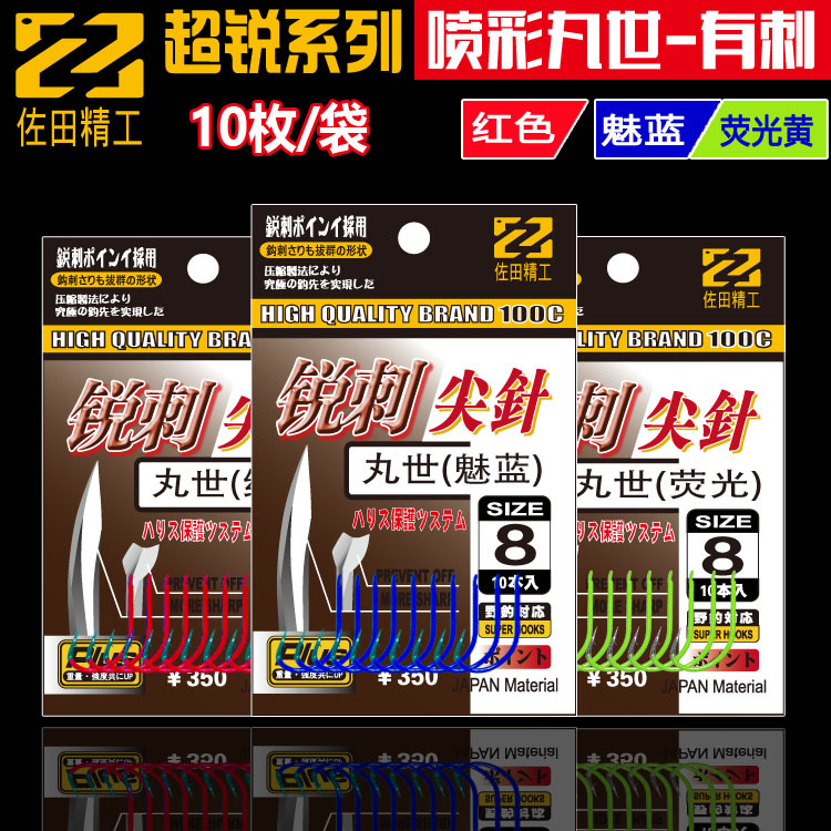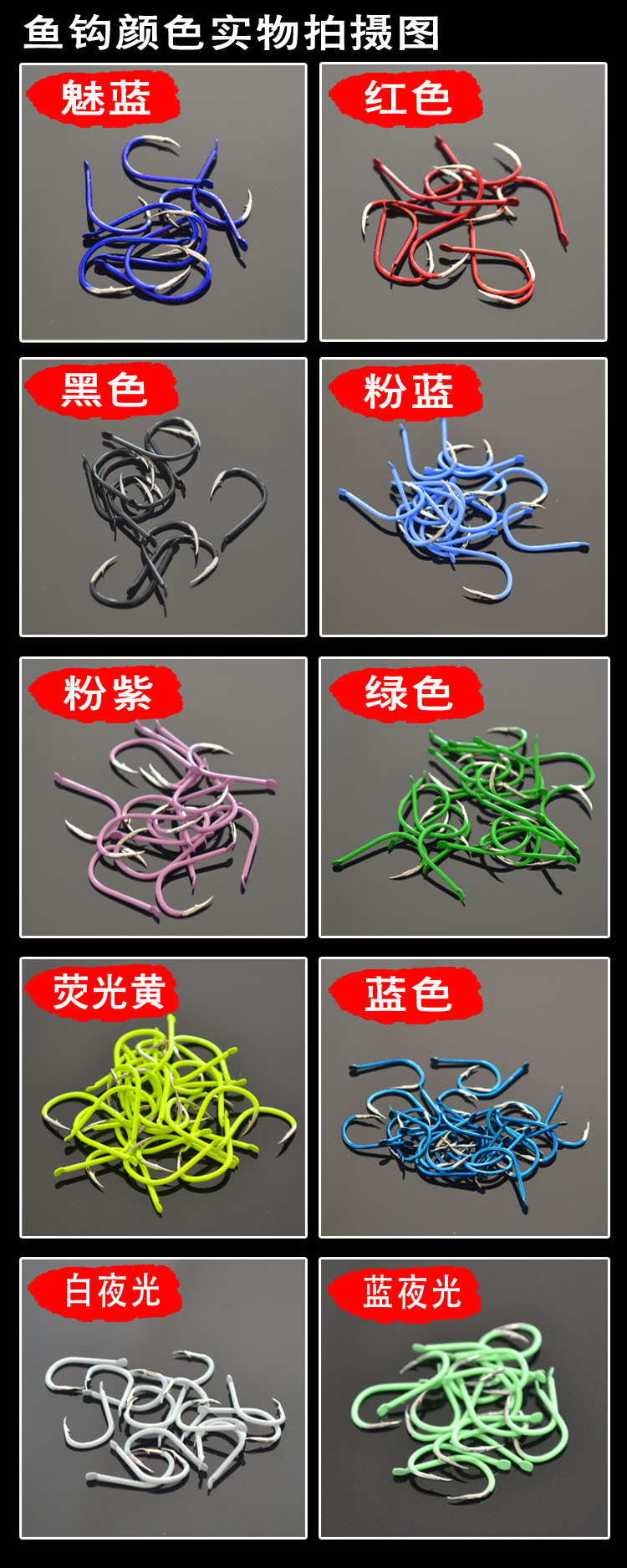 10枚袋装 丸世 荧光黄 魅蓝 黄色 有倒刺彩色鱼钩渔具批发