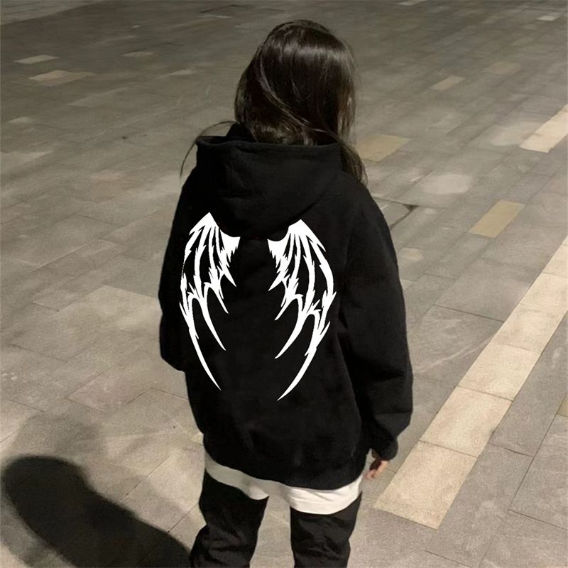 黑色連帽運動衫女秋冬新款ins設計感小眾大尺碼百搭休閒長袖上衣潮牌