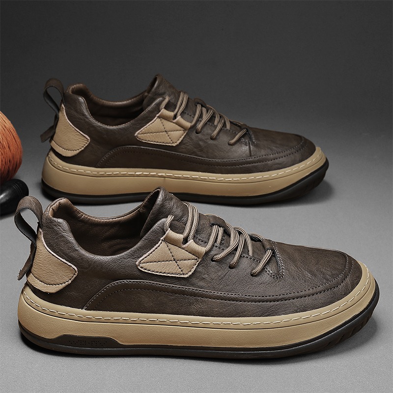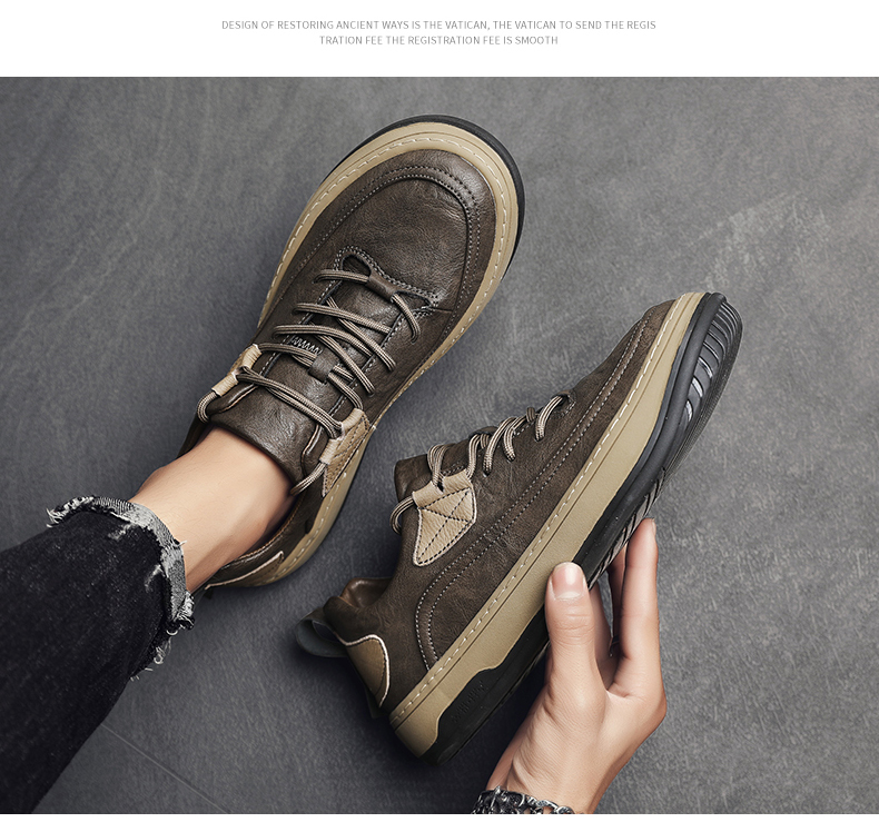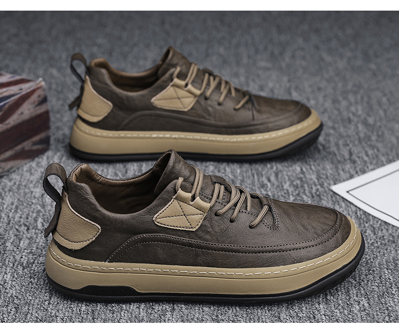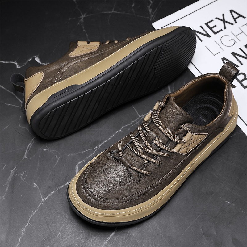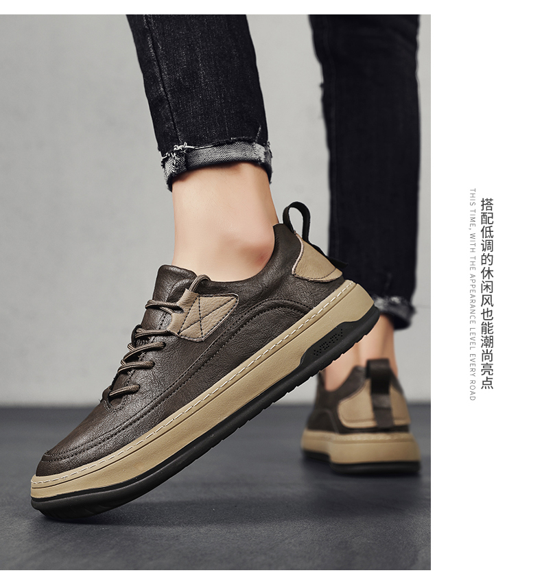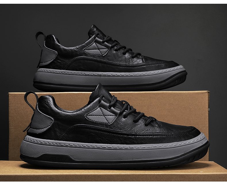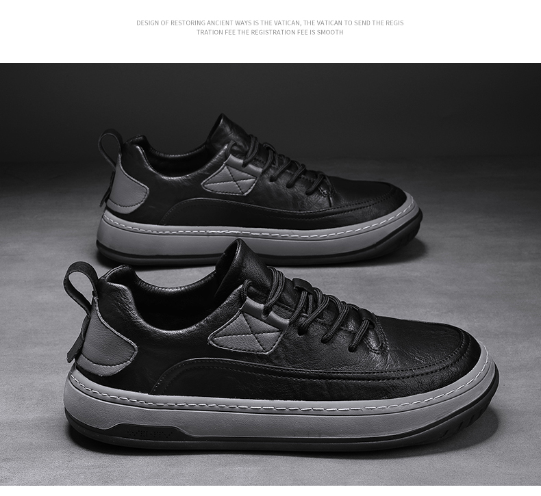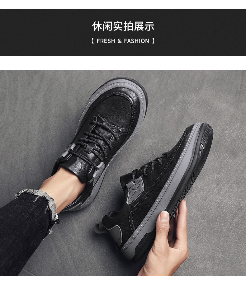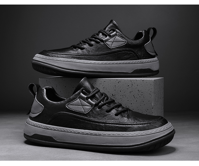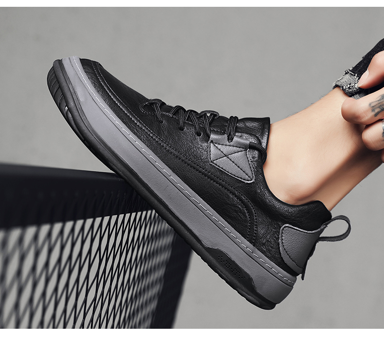 男鞋2023新款夏季百搭皮面防水休閒板鞋男士商務皮鞋工作運動潮鞋