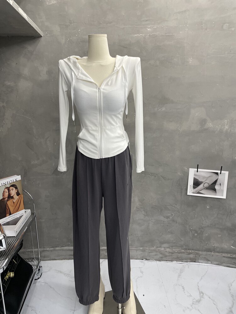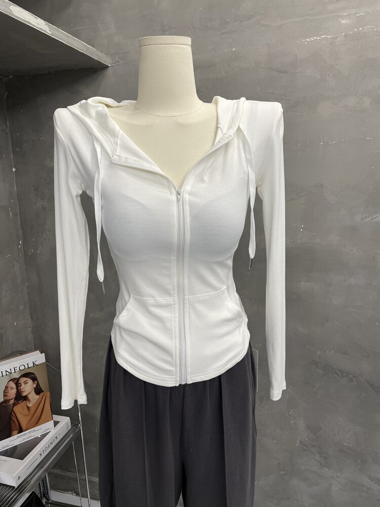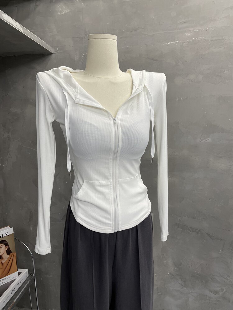 胸大腰細~薄款拉鍊連帽衛褲厚棉T女春秋顯瘦長袖T恤上衣外套2021