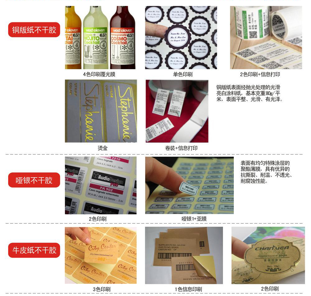 材质 铜板不干胶,牛皮纸,PVC不干胶,镜面不干胶
