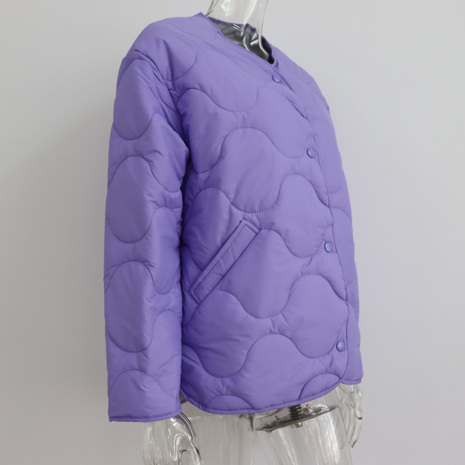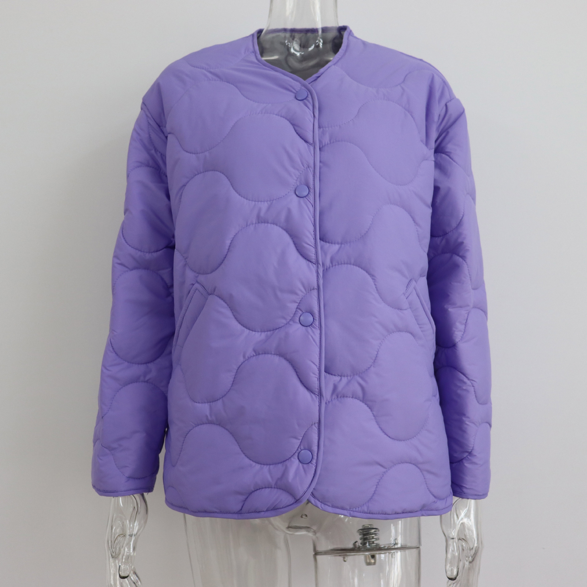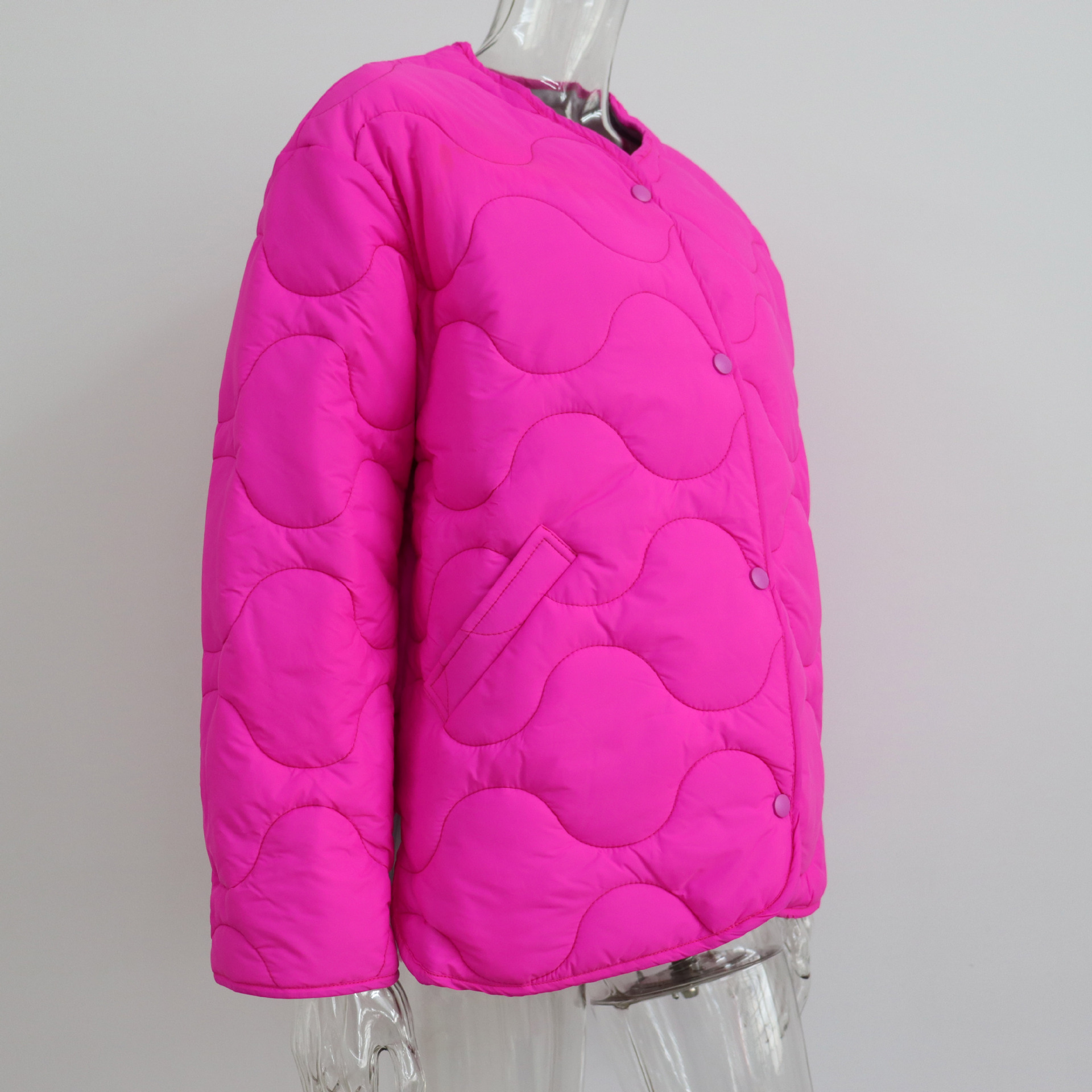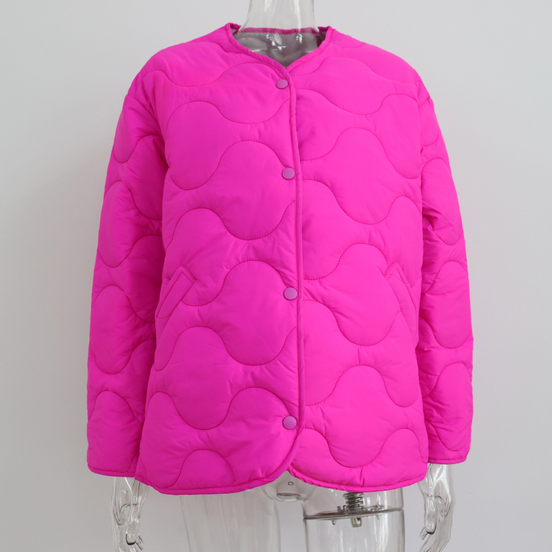 圆领排扣棉服欧美2022秋冬新款上衣宽松长袖口袋彩色棉衣女装批发