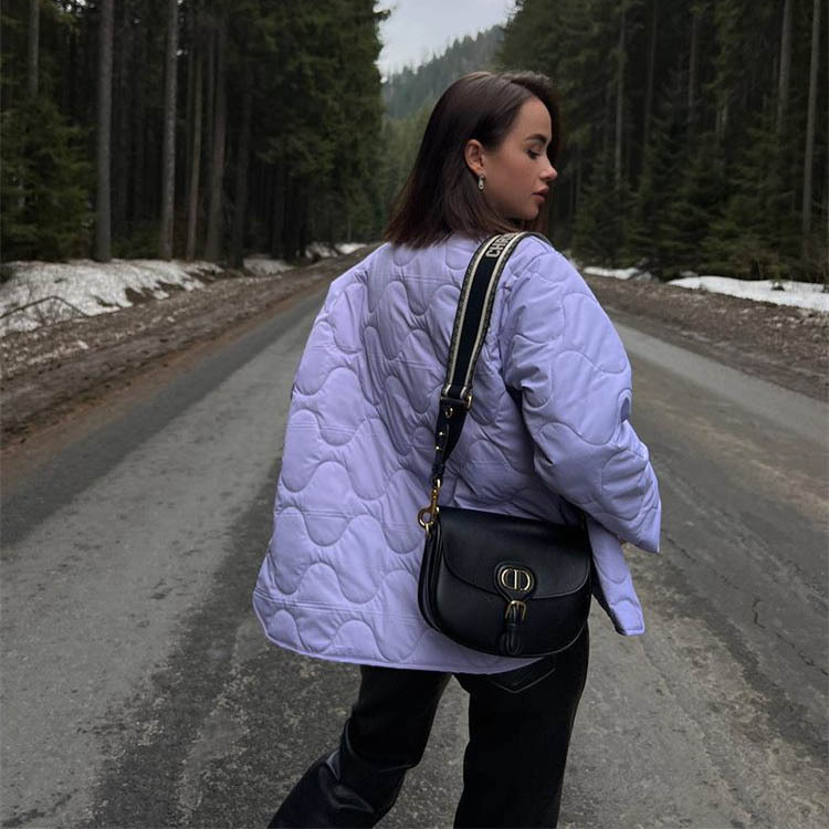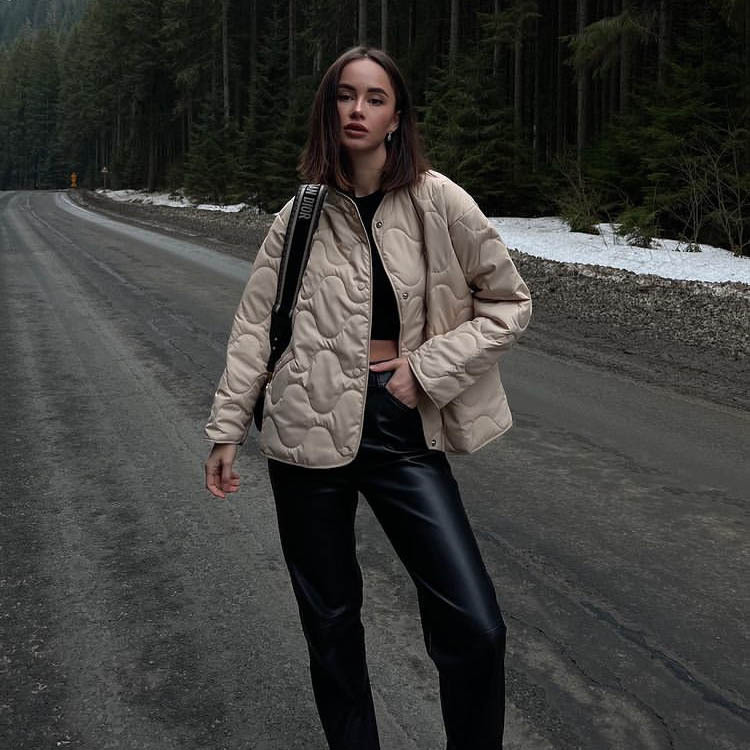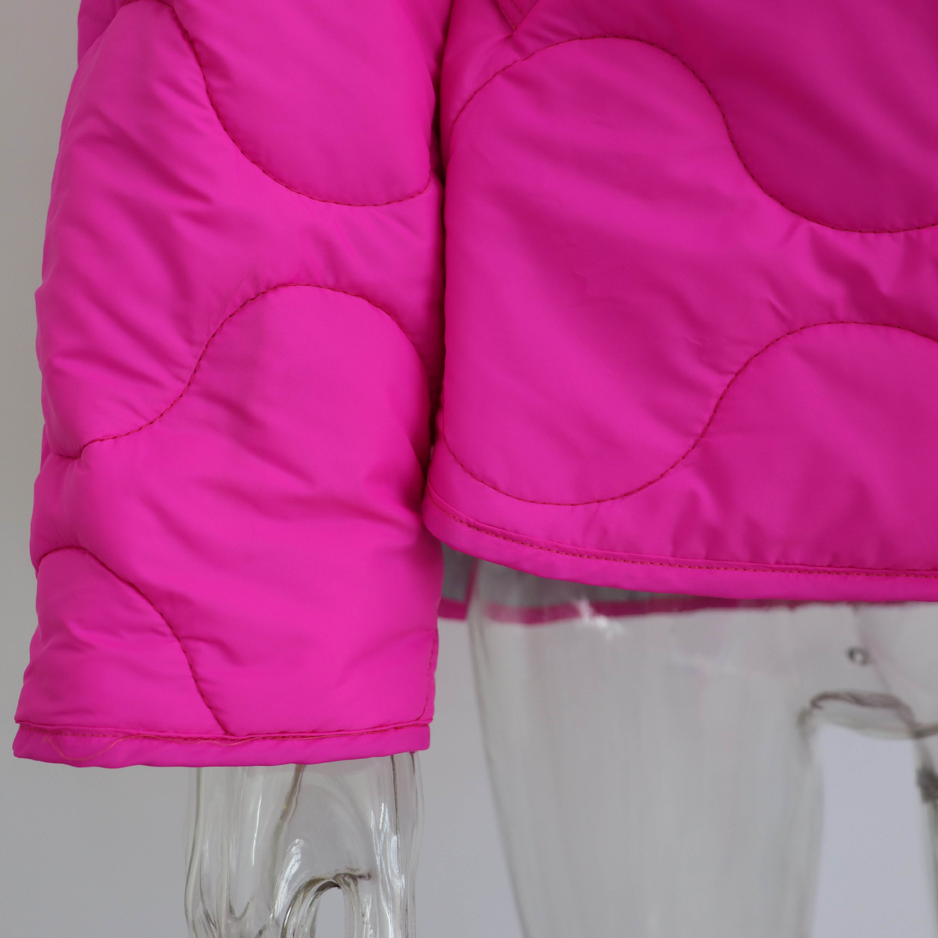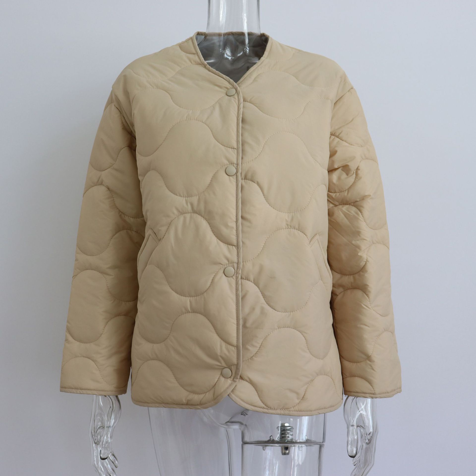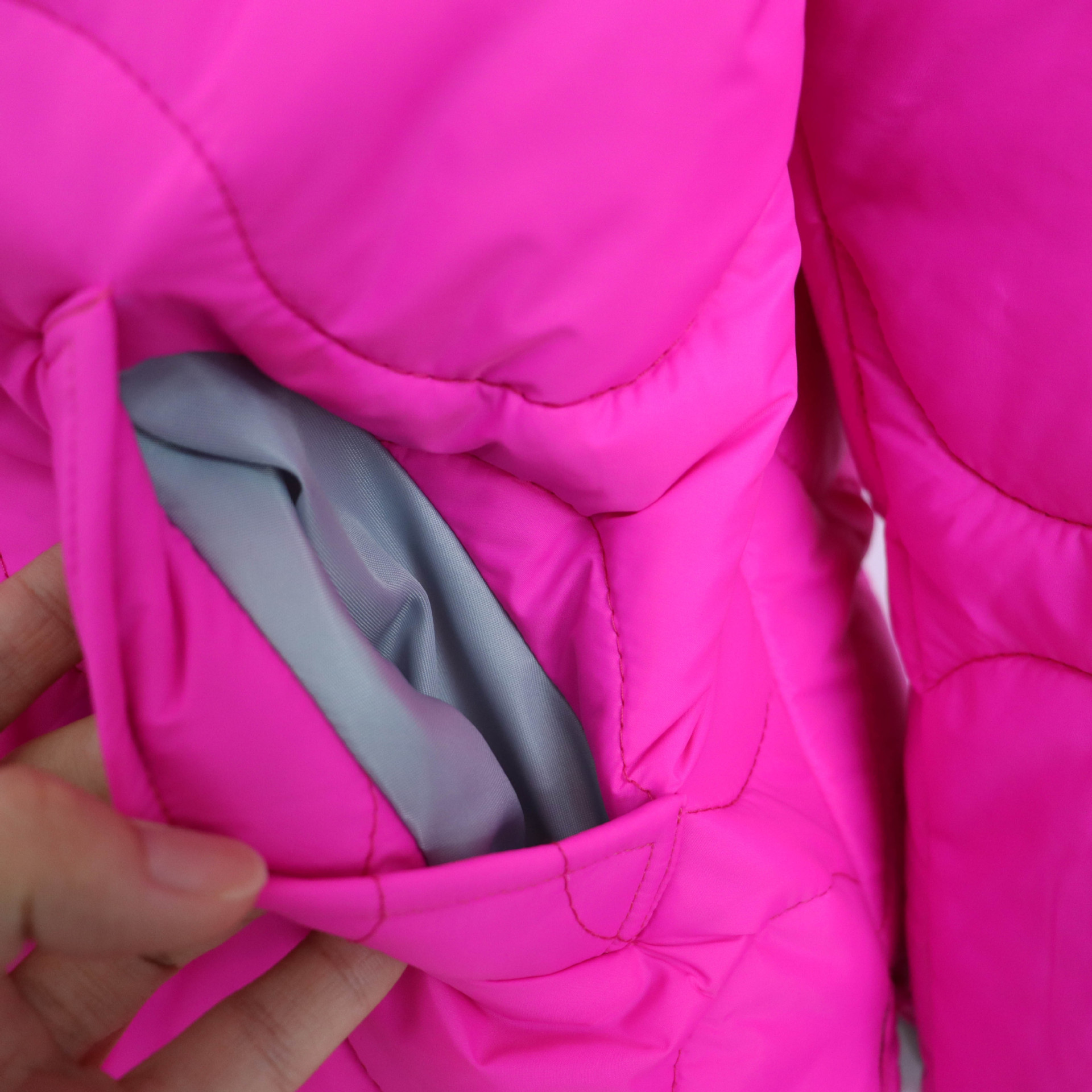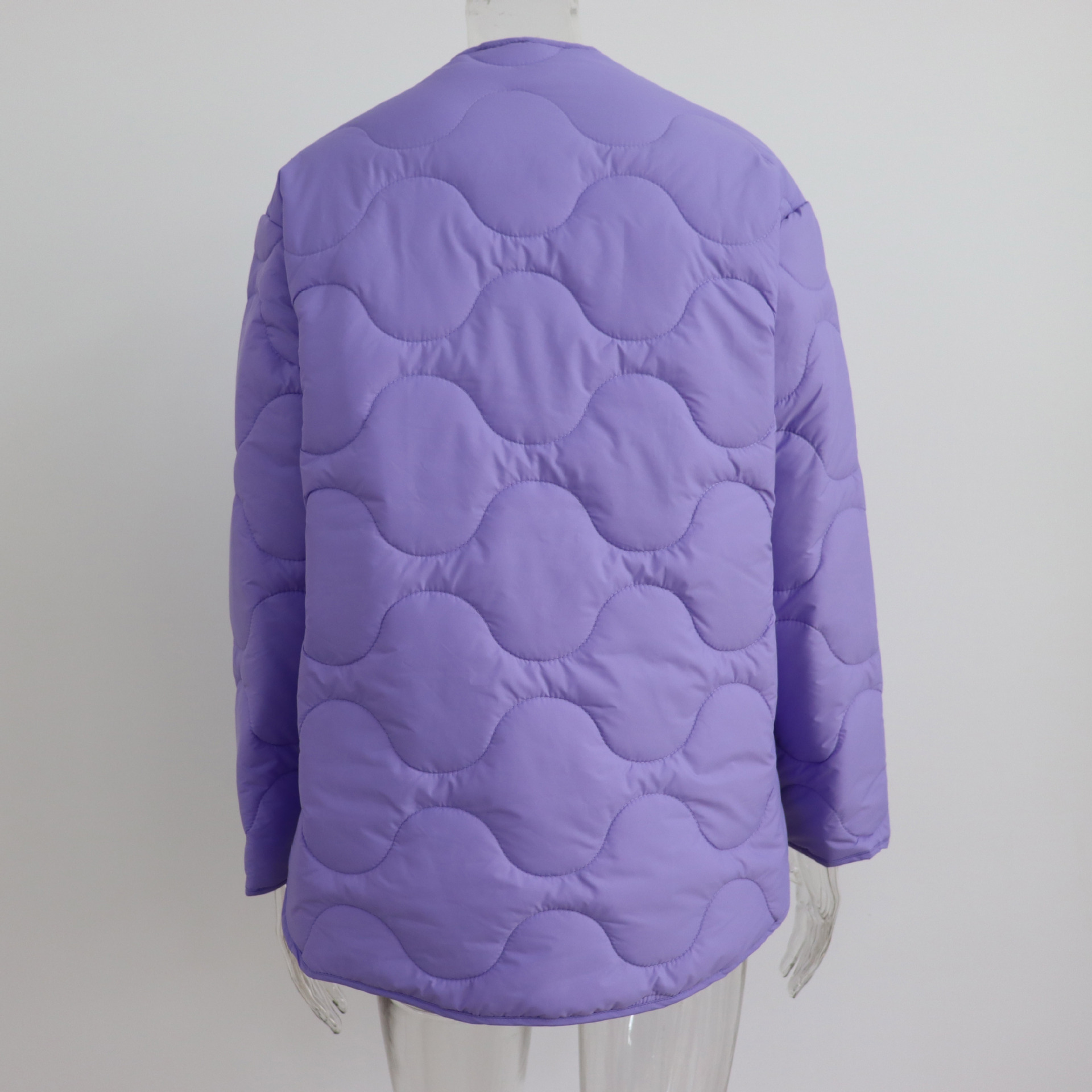 圆领排扣棉服欧美2022秋冬新款上衣宽松长袖口袋彩色棉衣女装批发