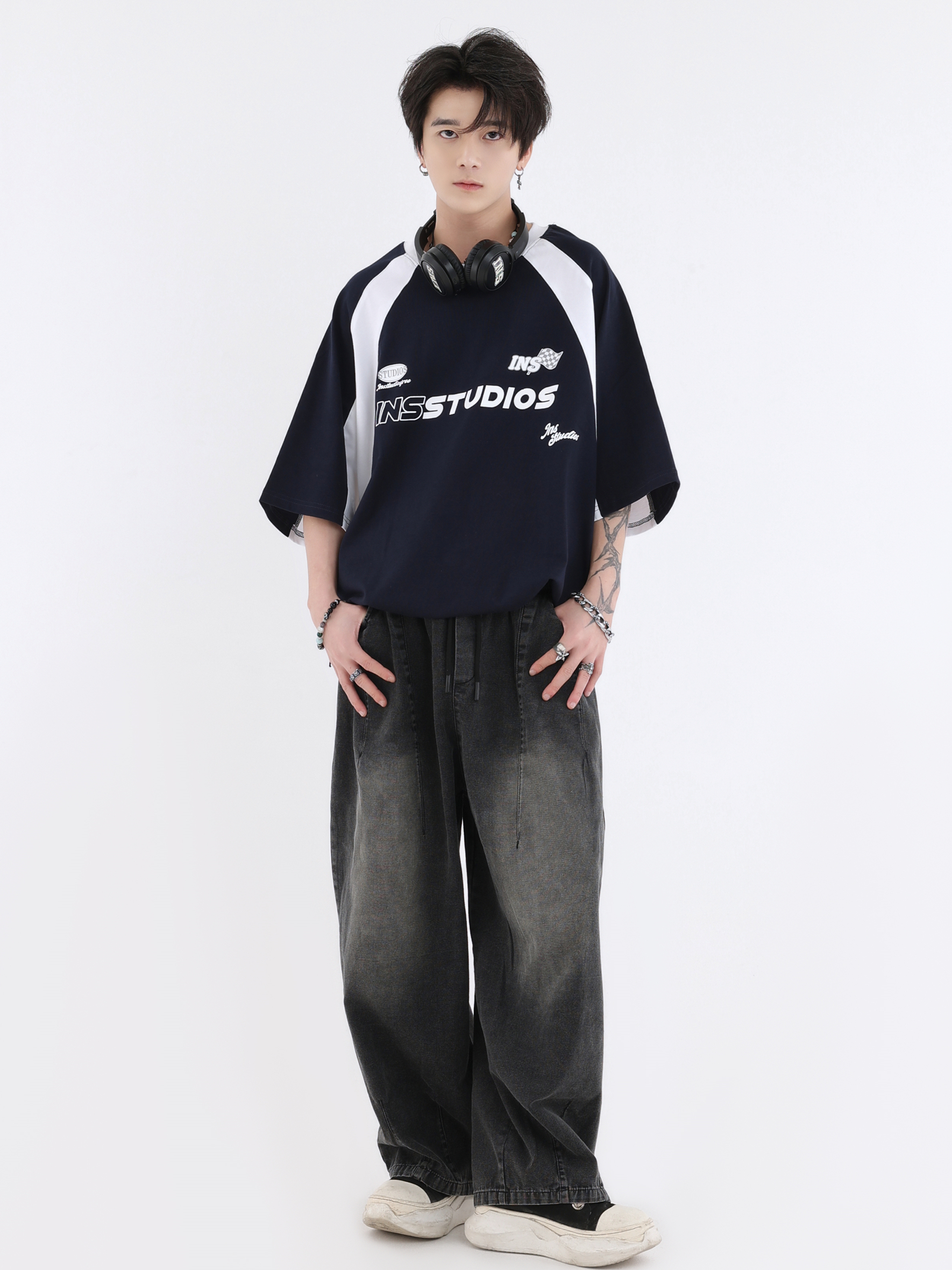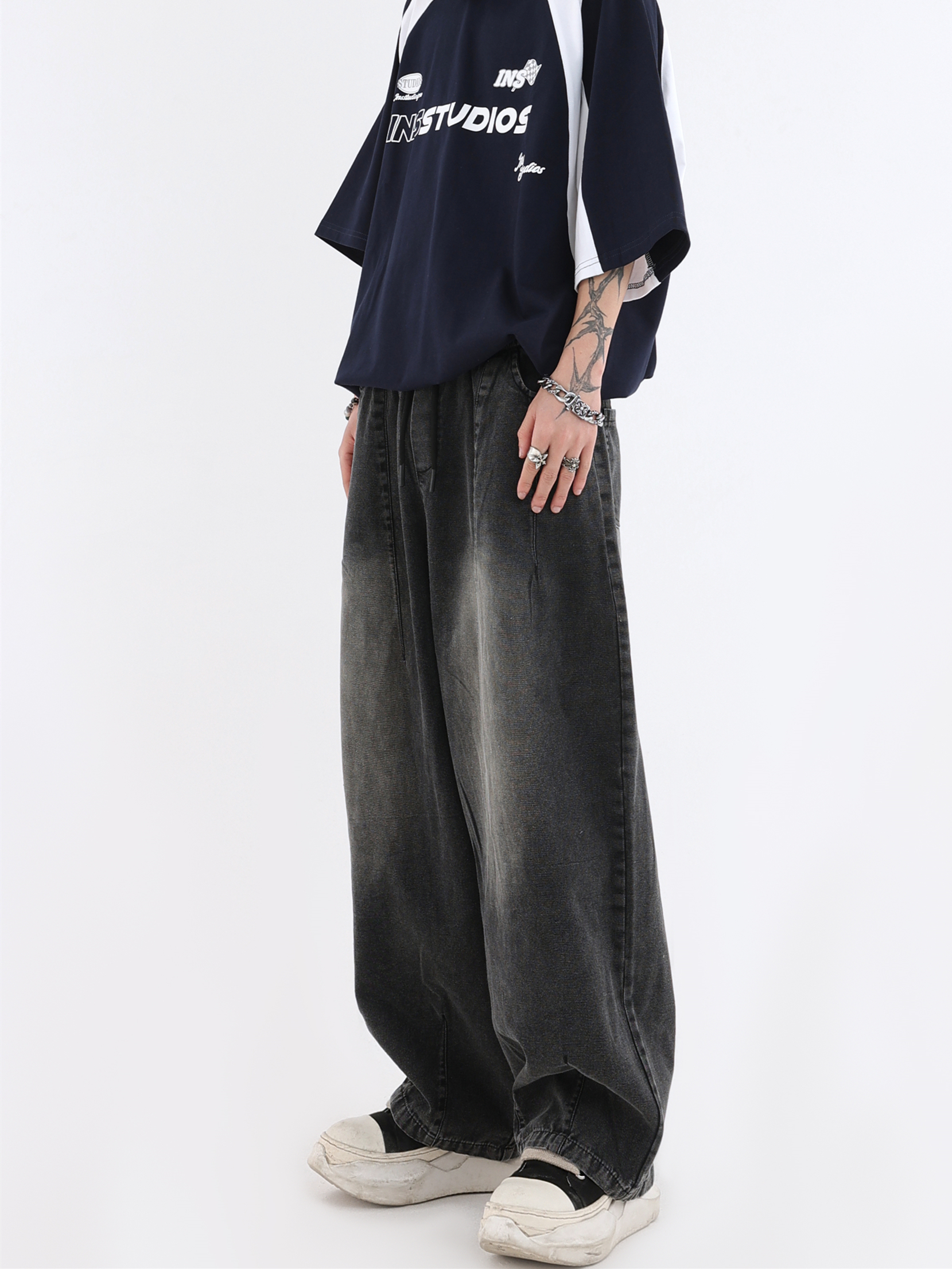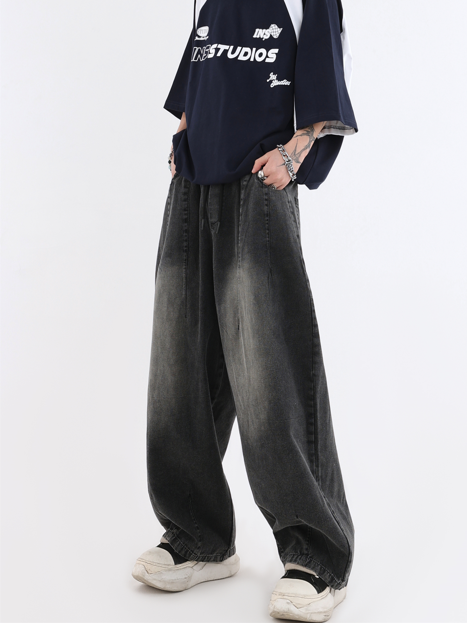 【INSKR】國潮牌情侶美式漸層水洗牛仔褲寬鬆闊腿褲直筒褲子男女