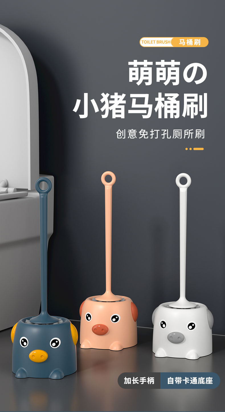小猪马桶刷套装洁厕刷子家用软毛刷无死角厕所长柄清洁刷带底座