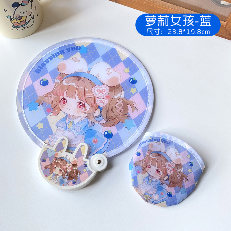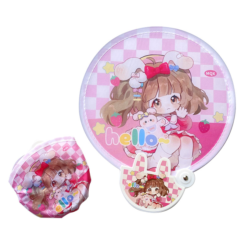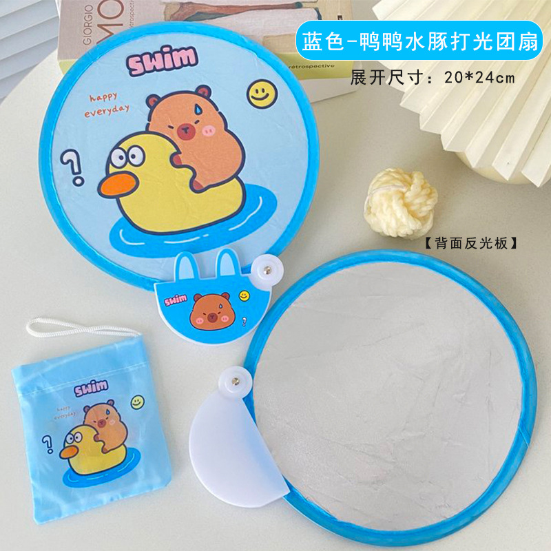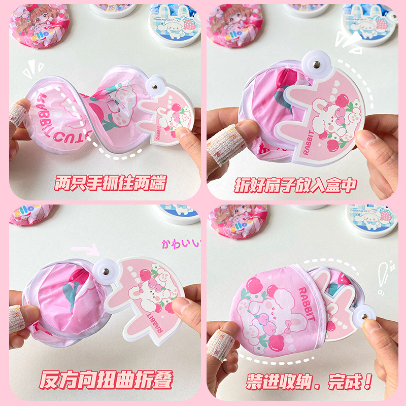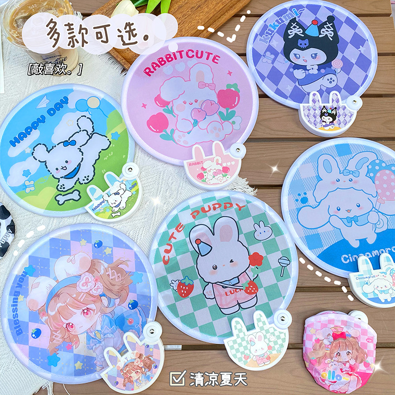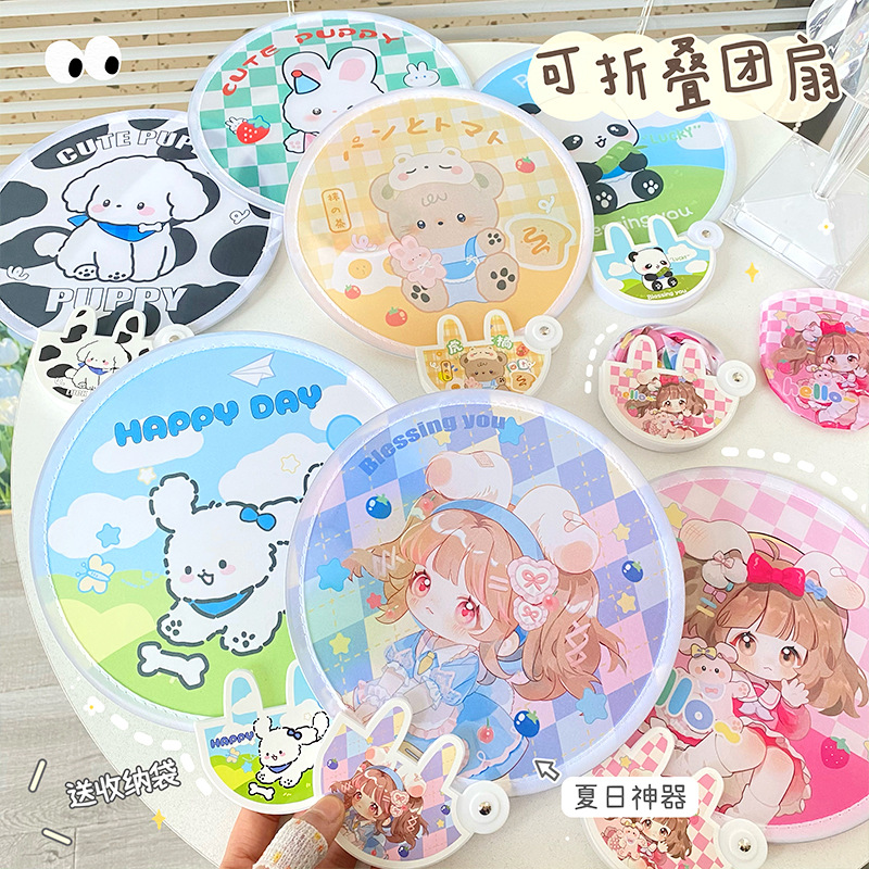 夏季可折叠团扇学生儿童diy便携圆形绢布卡通可爱扇子伴手礼批发