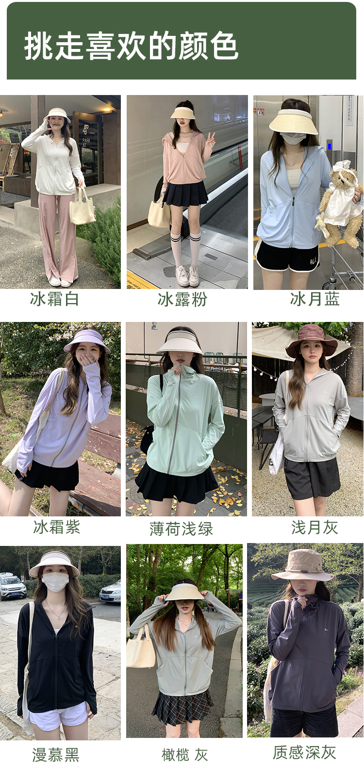 顏色分類 ❤加購物車優先發貨❤冰絲原紗面料 尼龍含量88%,越穿越涼爽 冰露粉-休閒款 淺月灰-休閒款 冰霜白-休閒款 橄欖灰-休閒款 冰霜紫-休閒款 冰月藍-休閒款 薄荷淺綠-休閒款 漫慕黑-休閒款 質感深灰-休閒款 ❤加購物車優先發貨❤冰絲原紗面料 尼龍含量88%,越穿越冰爽 冰露粉-帽簷可拆 淺月灰-帽簷可拆 冰霜白-帽簷可拆 橄欖灰-帽簷可拆 冰霜紫-帽簷可拆 冰月藍-帽簷可拆 薄荷淺綠-帽簷可拆 漫慕黑-帽簷可拆 質感深灰-帽簷可拆