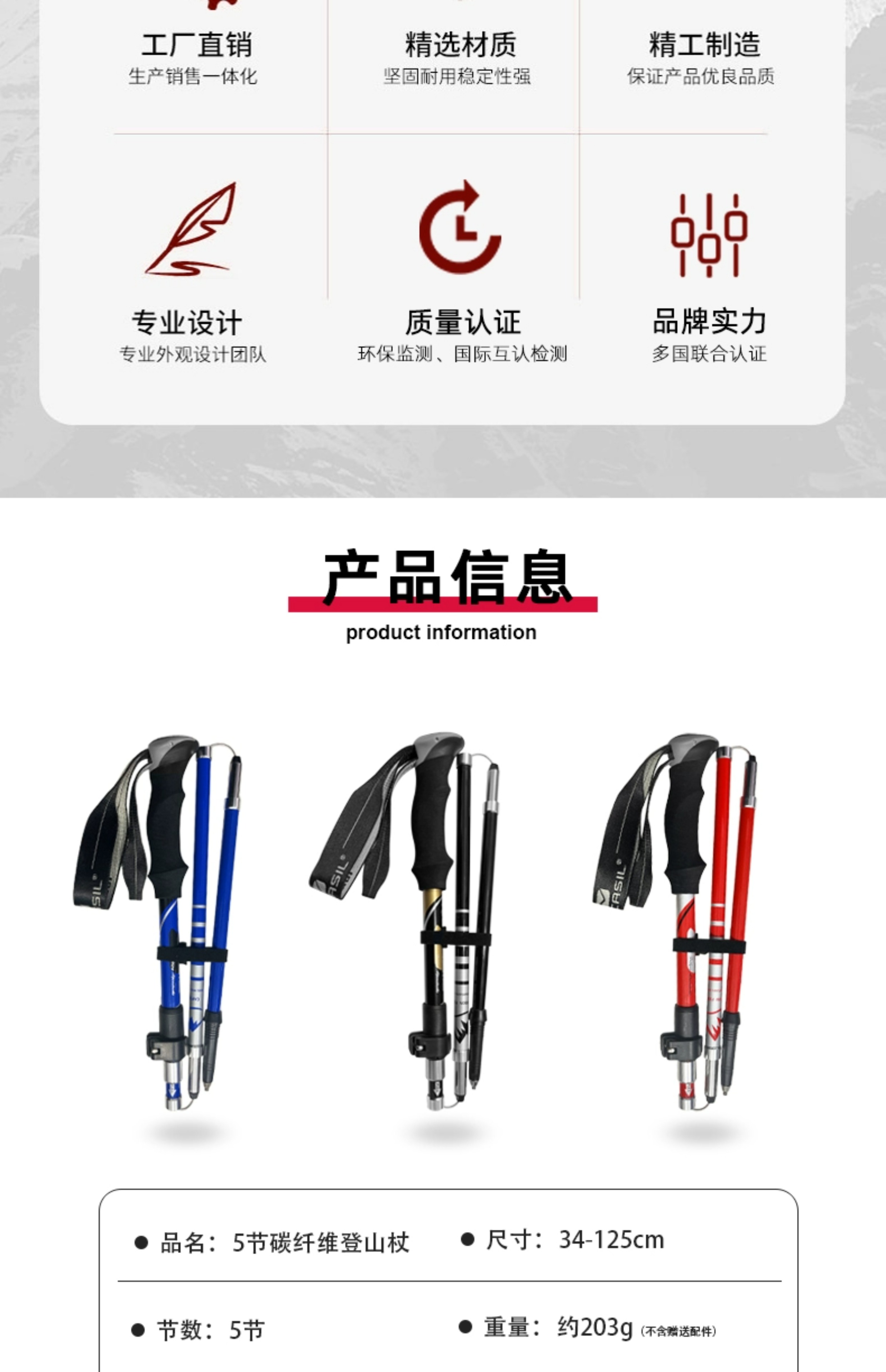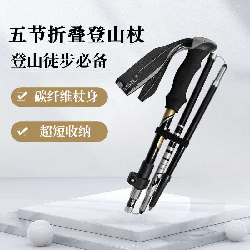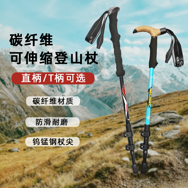戶外摺疊登山杖伸縮碳素手杖碳纖維爬山杖老人旅遊柺杖超輕徒步杖