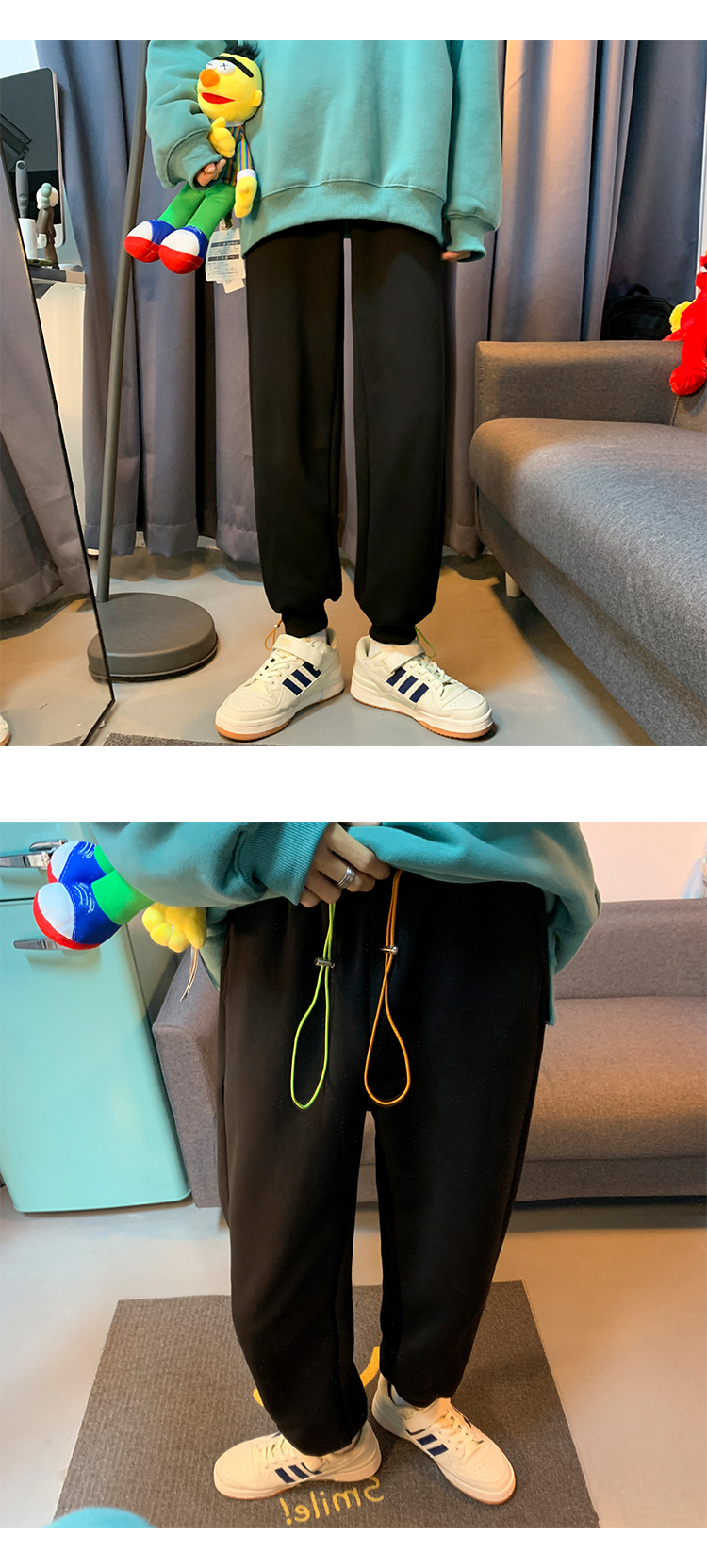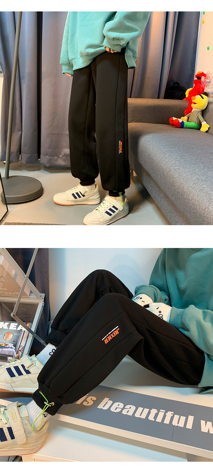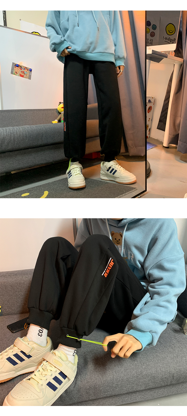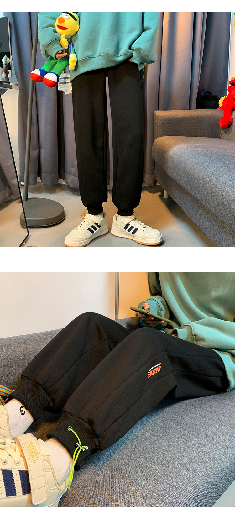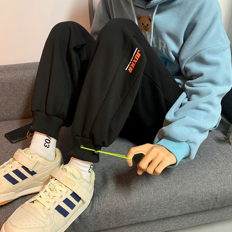 2023冬季加絨抽繩束口褲男潮ins運動褲港風加厚休閒褲子百搭衛褲
