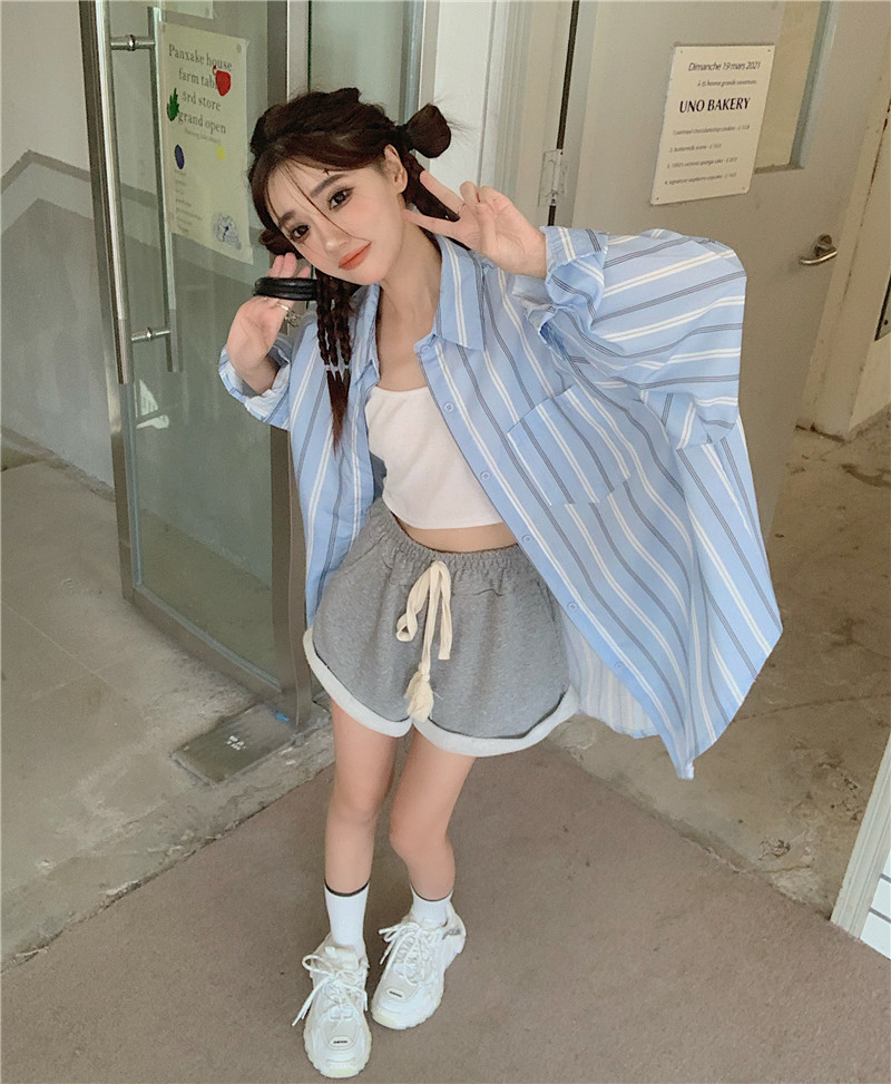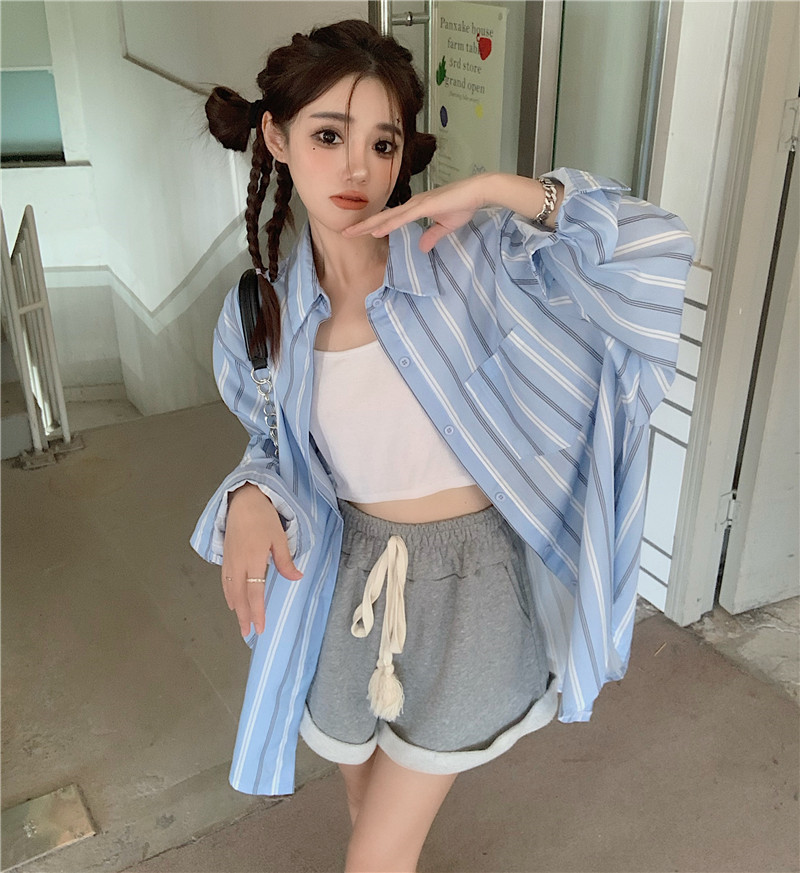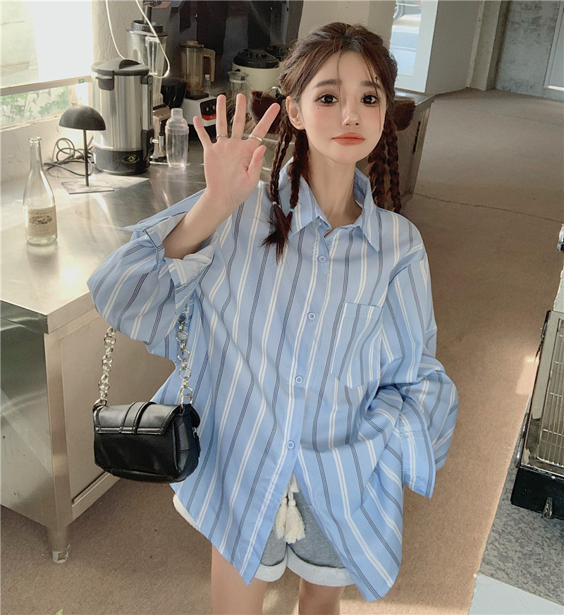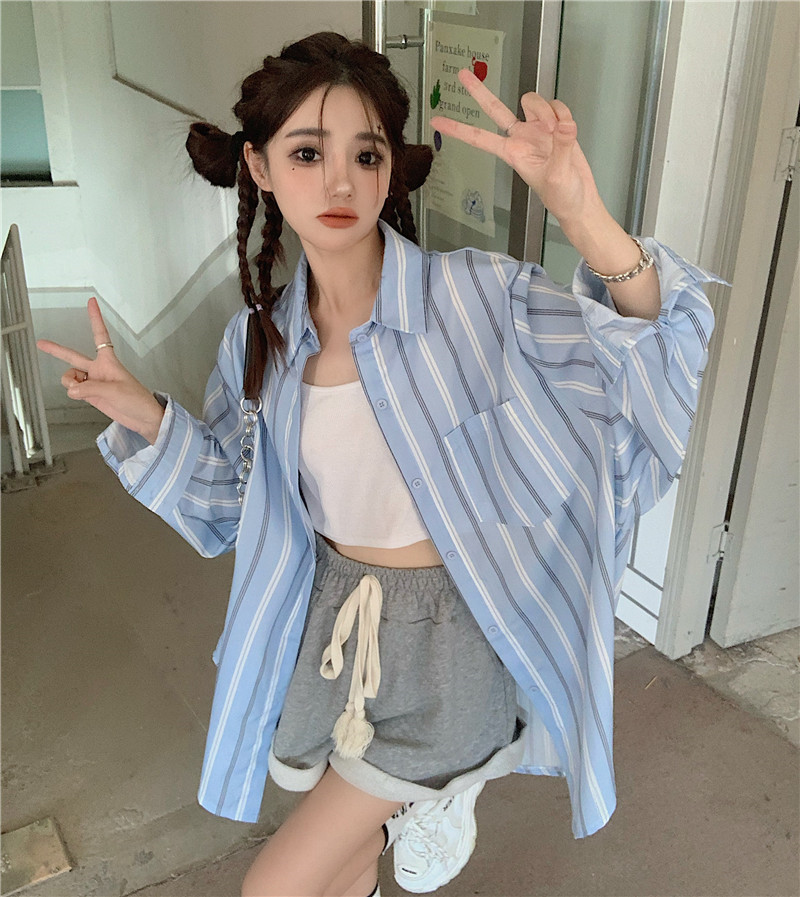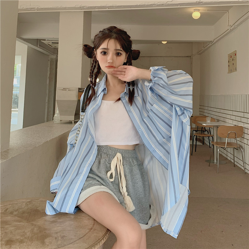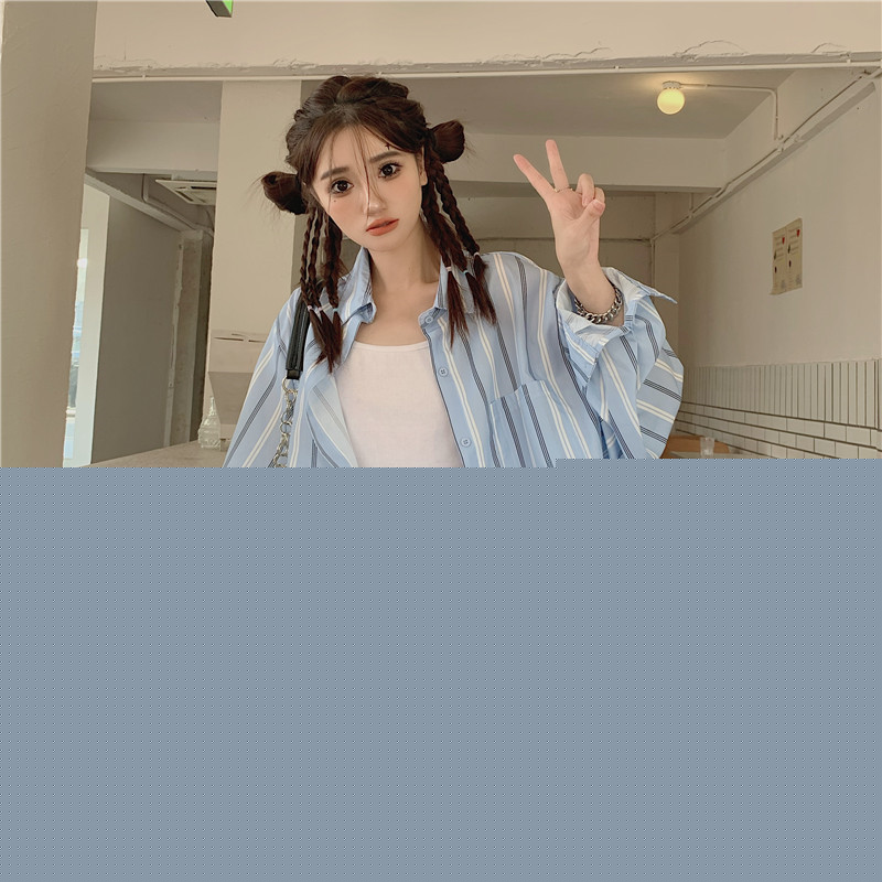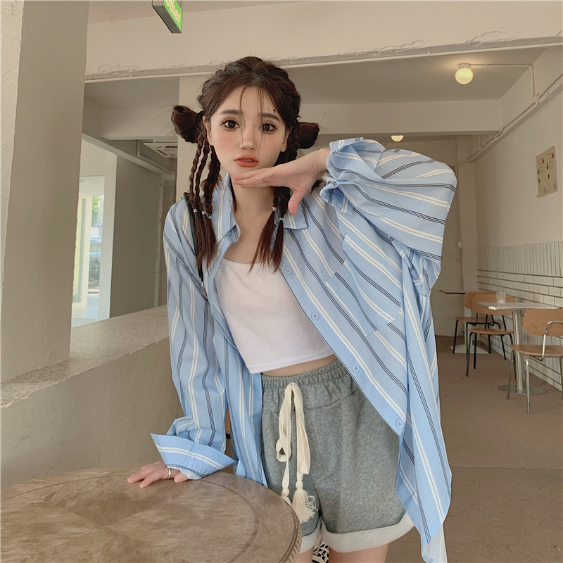 200斤胖妹妹女裝夏季ins條紋字母長袖襯衫加肥加大碼學生防曬襯衫