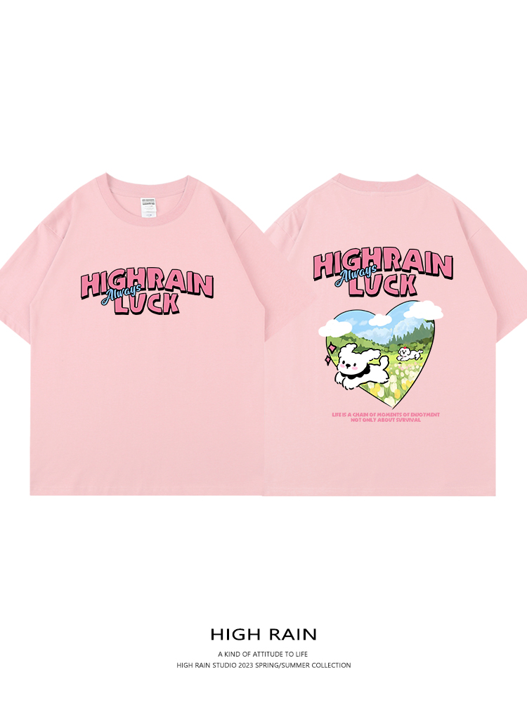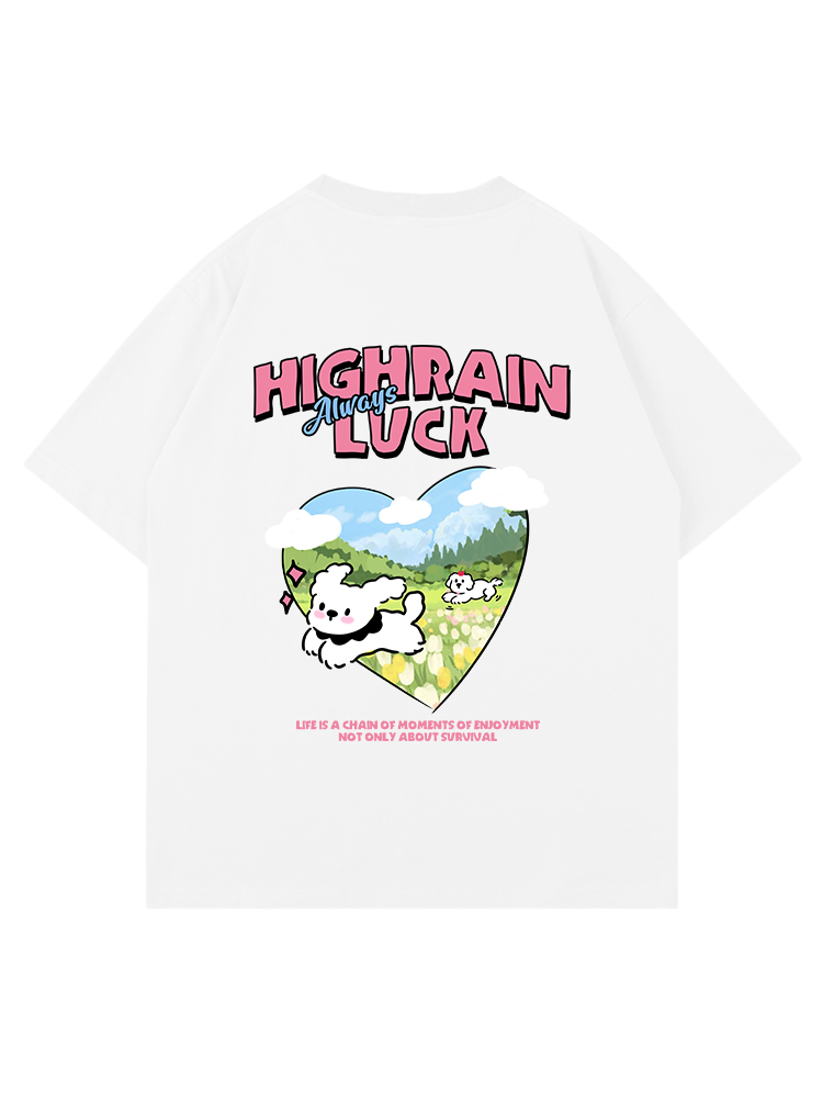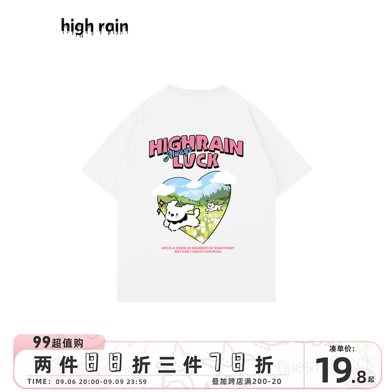 很潤工作室 新款奔跑狗狗落肩短袖男女白色T恤卡通可愛情侶上衣夏