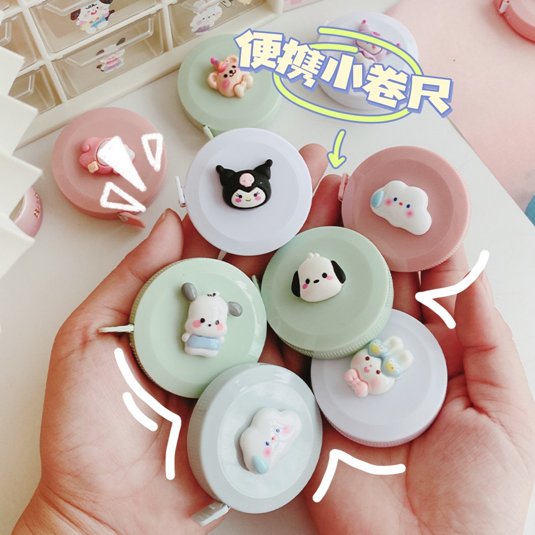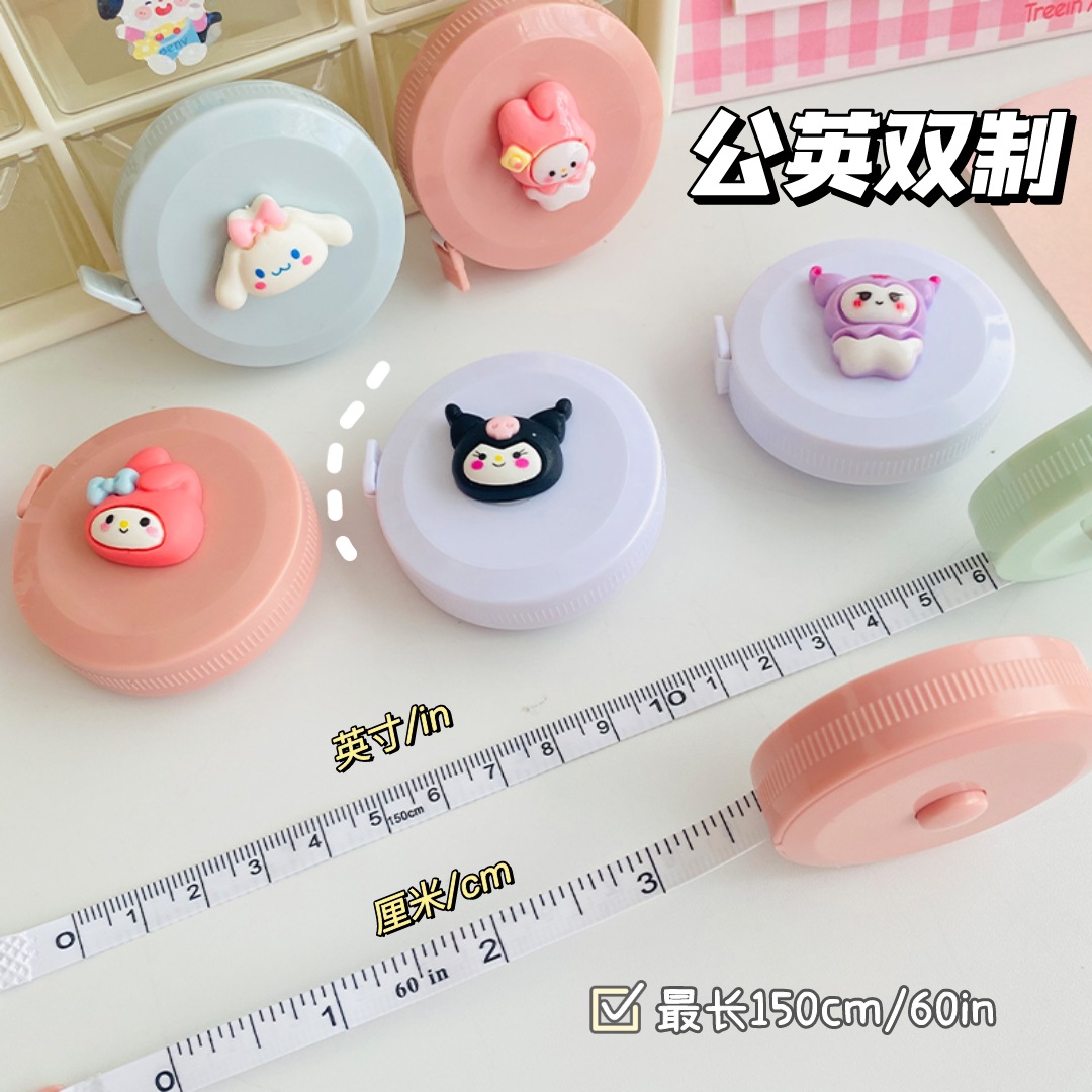 抖音卡通学生文具家用便携小巧自锁卷尺办公用品1.5米公英寸量尺