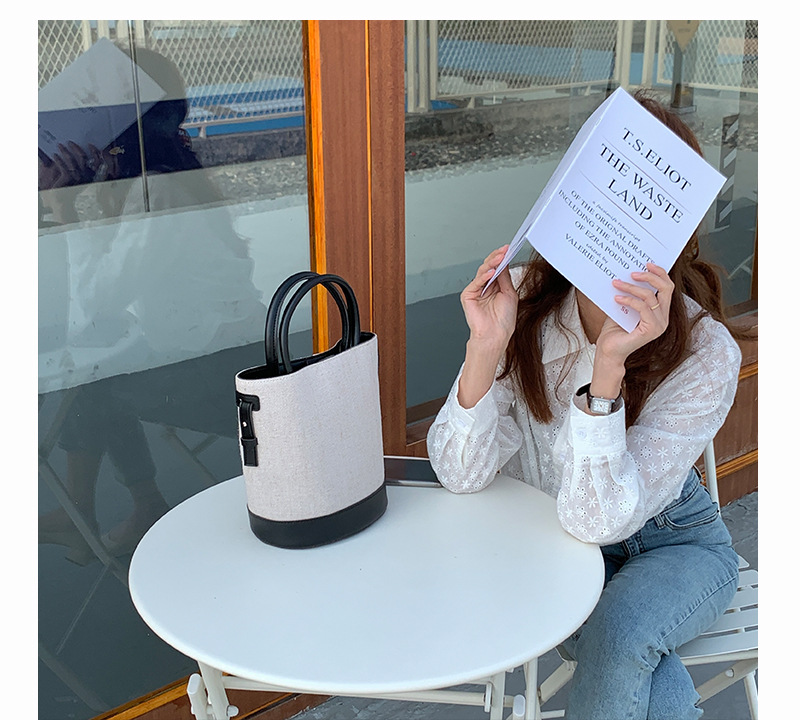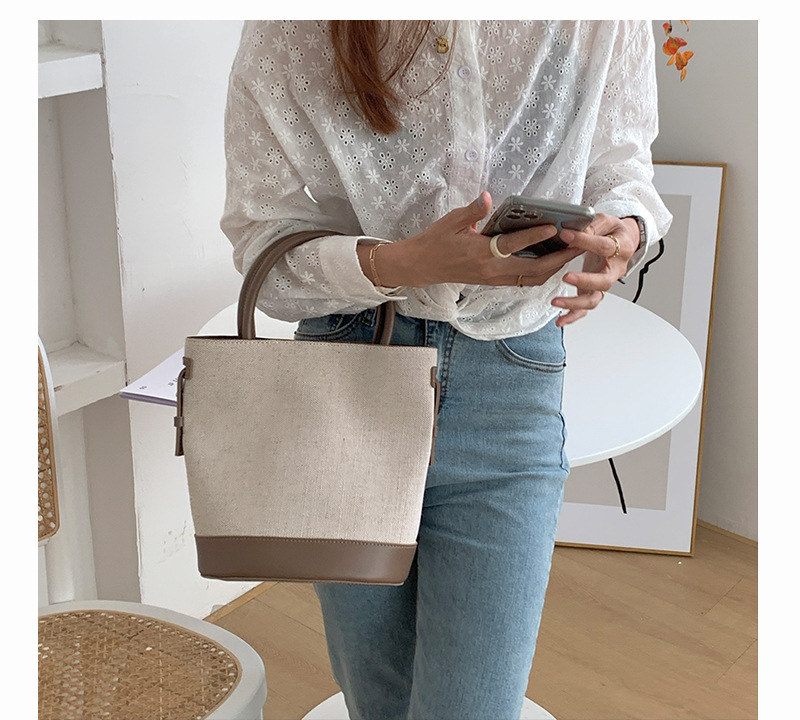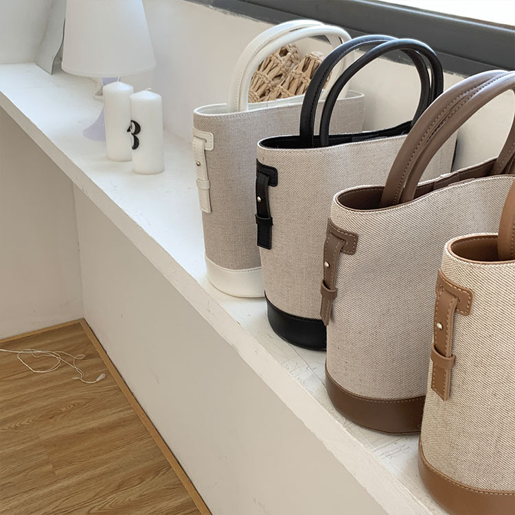大容量手提包包女2023新款单肩斜挎包韩版时尚简约休闲帆布水桶包