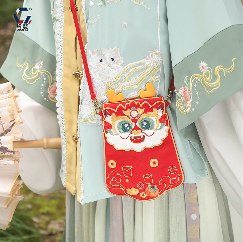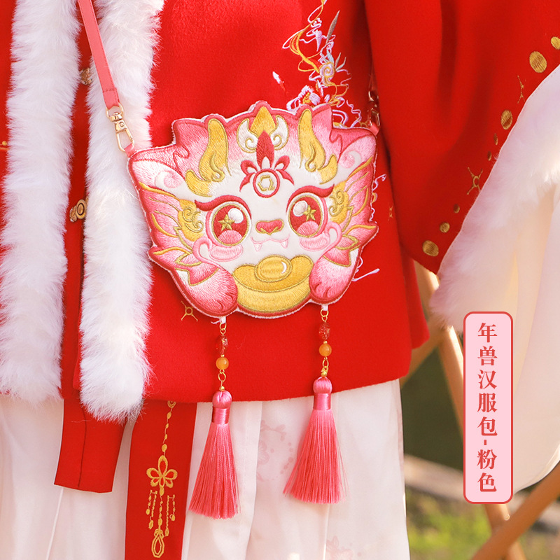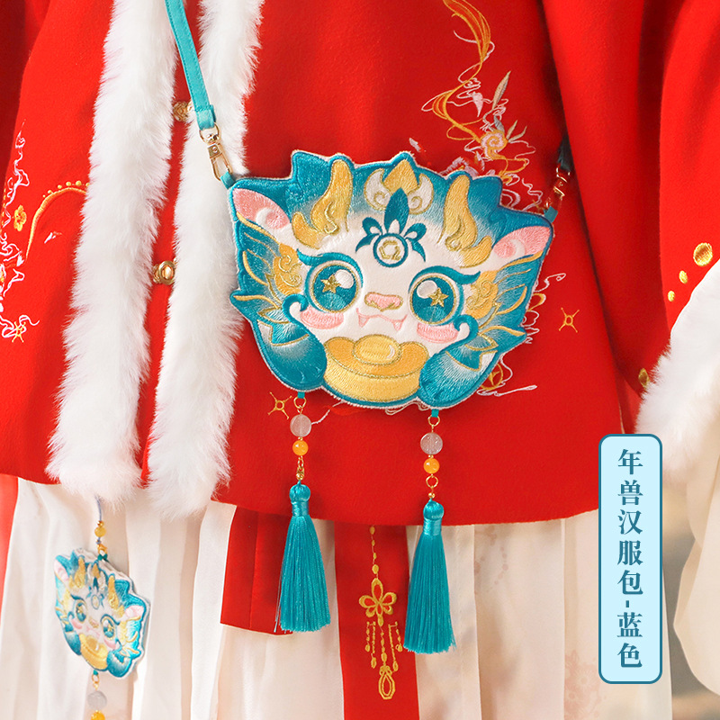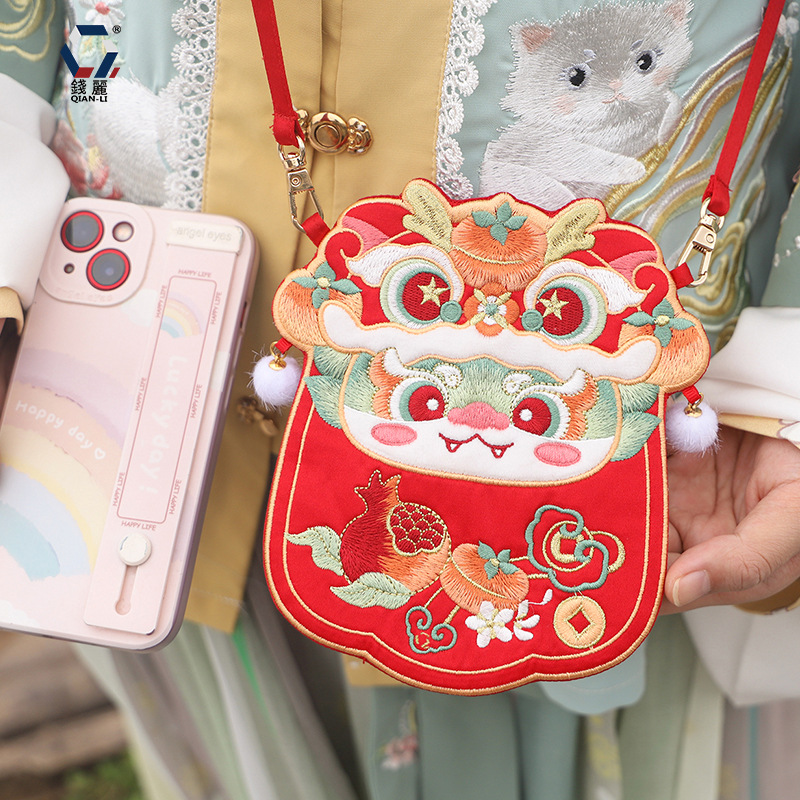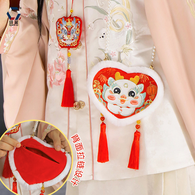 【钱丽】龙年汉服包新年汉服配饰包包儿童款复古斜跨刺绣斜挎包