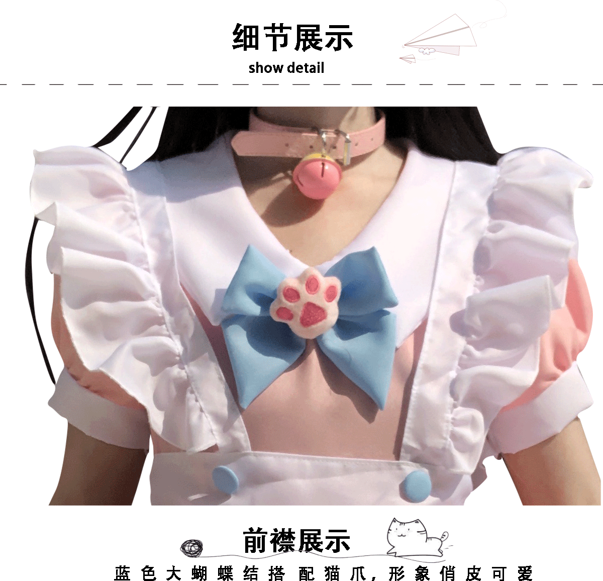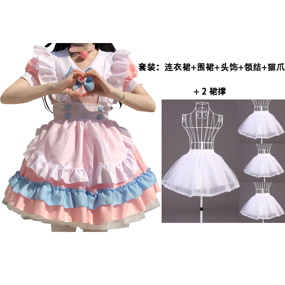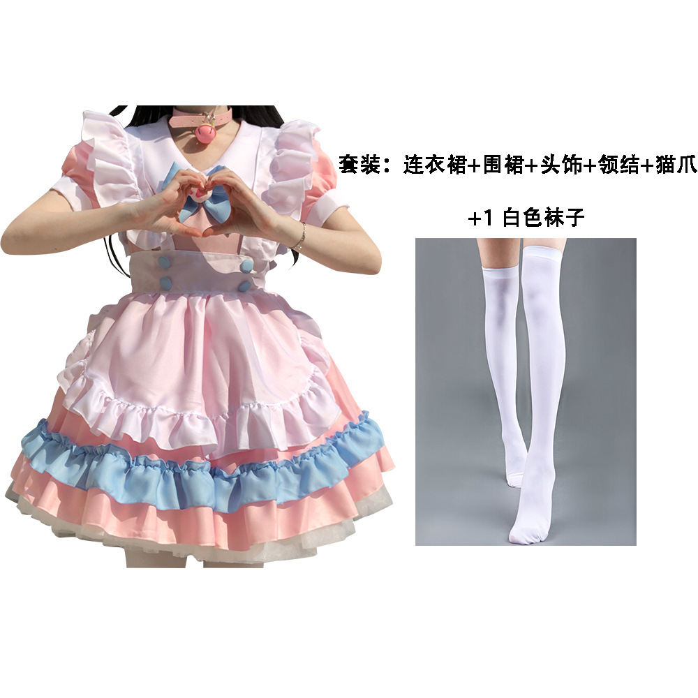 颜色 802粉蓝(连衣裙+围裙+头饰+蝴蝶结+猫爪),802粉蓝+白色袜子,802粉蓝+裙撑,802粉蓝+铃铛,802粉蓝+白色袜子+裙撑+铃铛,802粉蓝+暴力裙撑(视频同款)