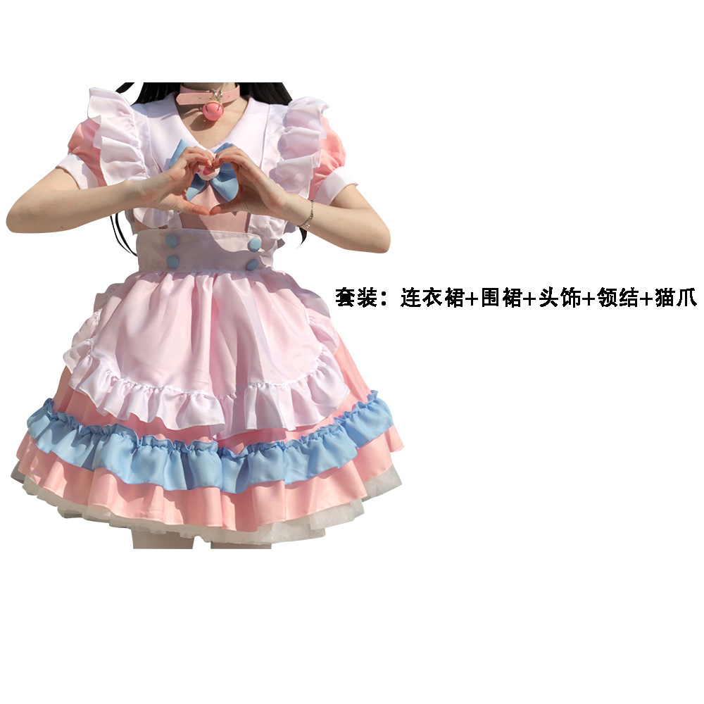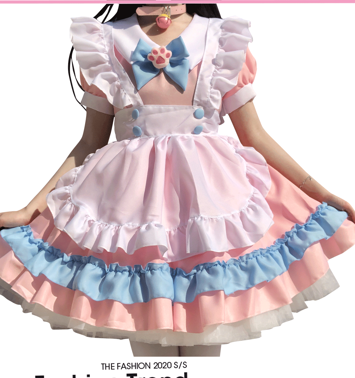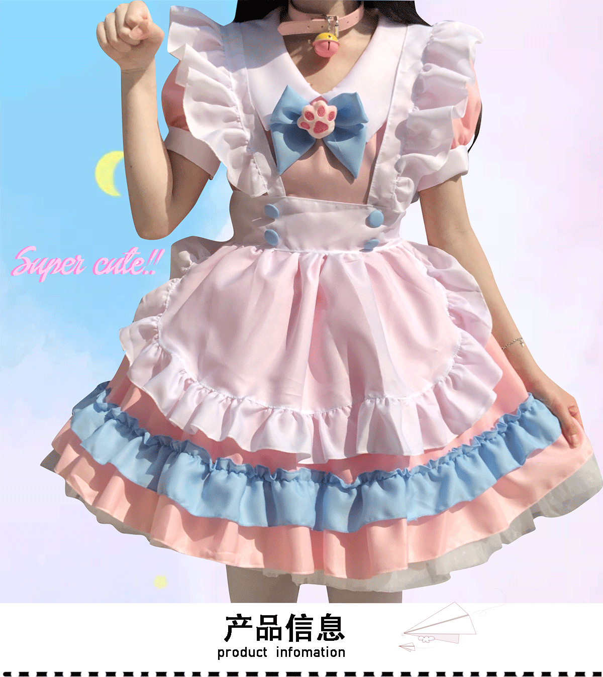 2023新款日常动漫超萌粉色女仆装可爱Lolita女装萝莉塔套装连衣裙