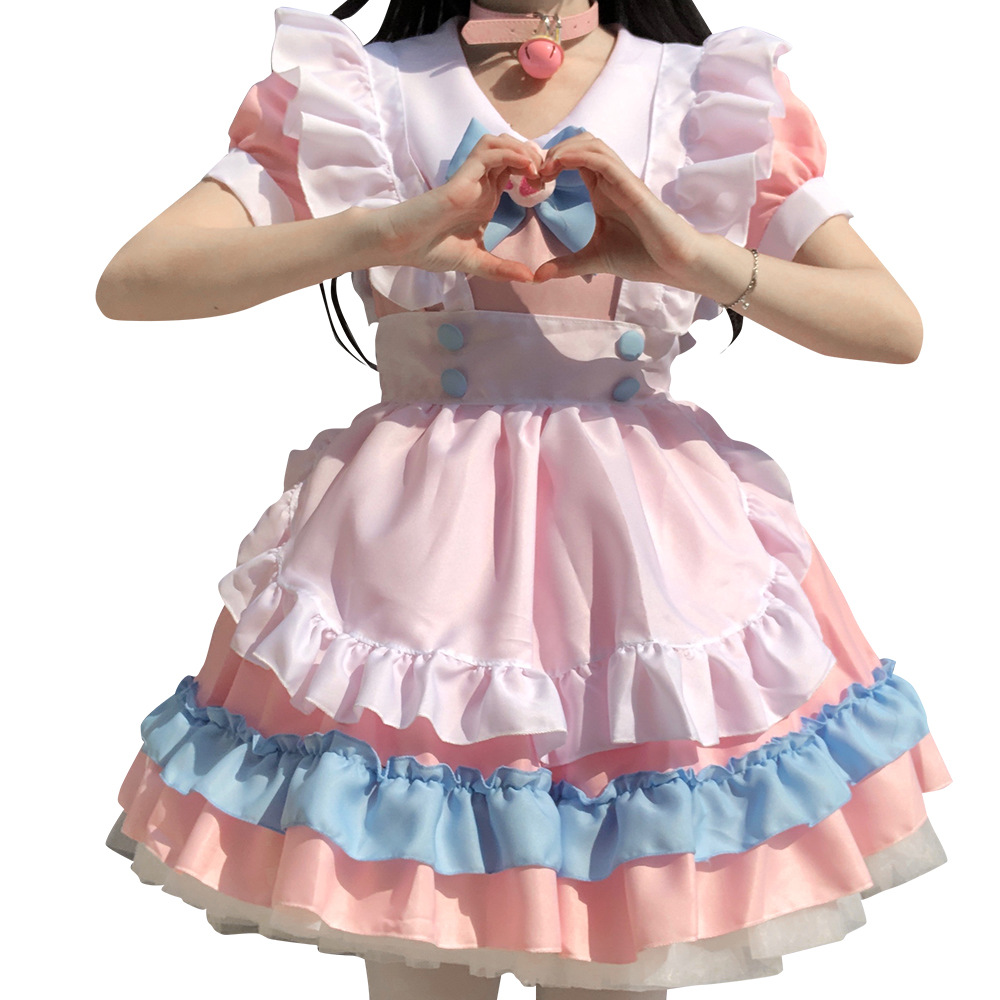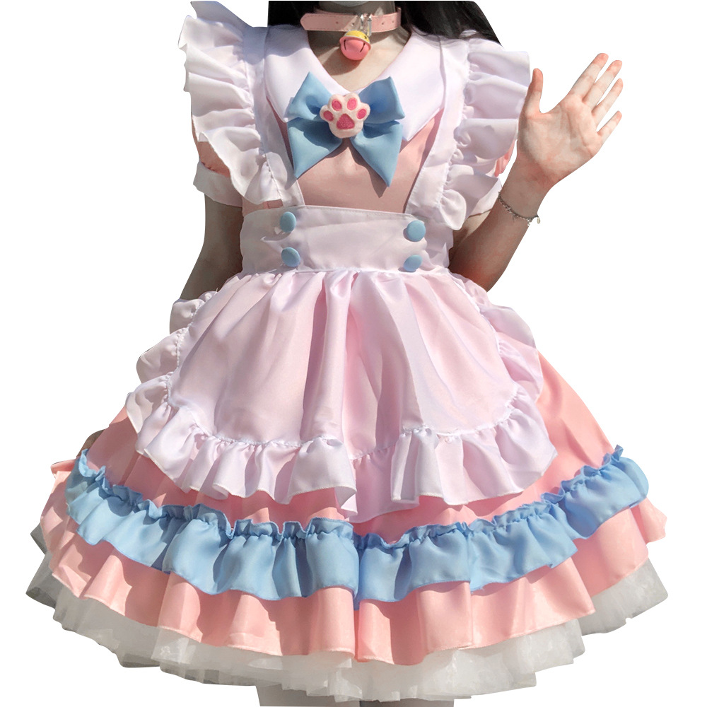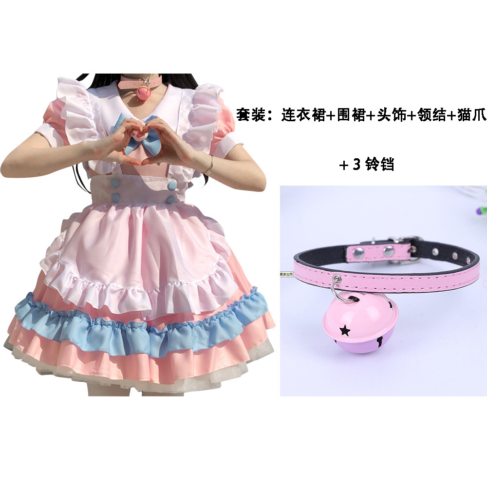 2023新款日常动漫超萌粉色女仆装可爱Lolita女装萝莉塔套装连衣裙