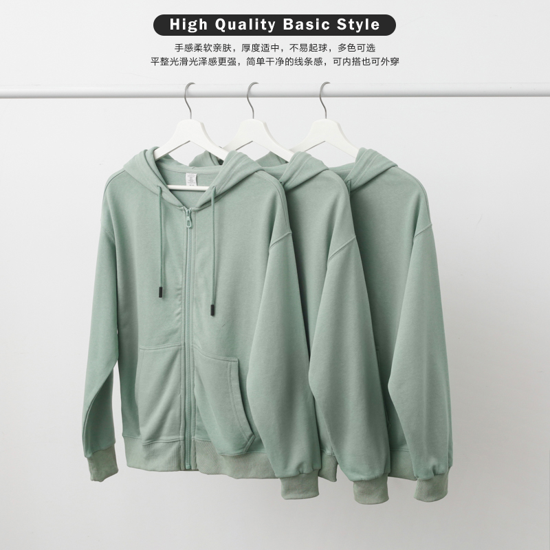 清新奶綠色!薄荷綠寬鬆連帽拉鍊衛衣男淺綠色寬鬆情侶開衫外套女