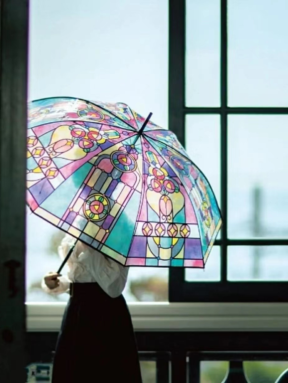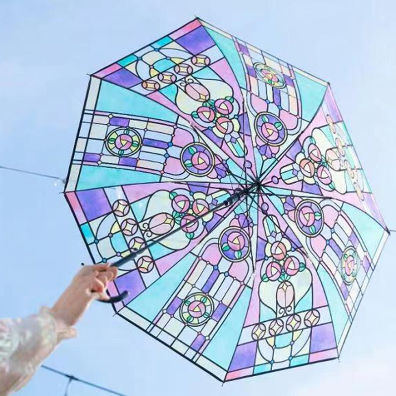 颜色 长柄教堂彩绘透明,透明KT教堂长柄伞,长柄玉桂透明教堂伞,K洛米教堂长柄伞透明