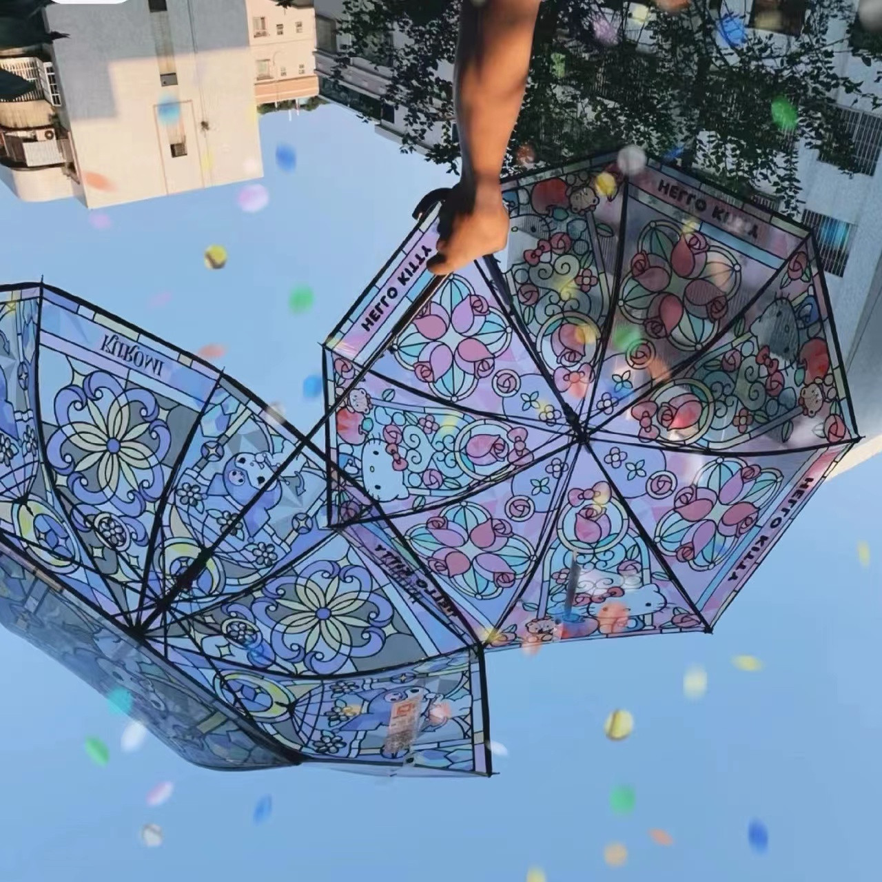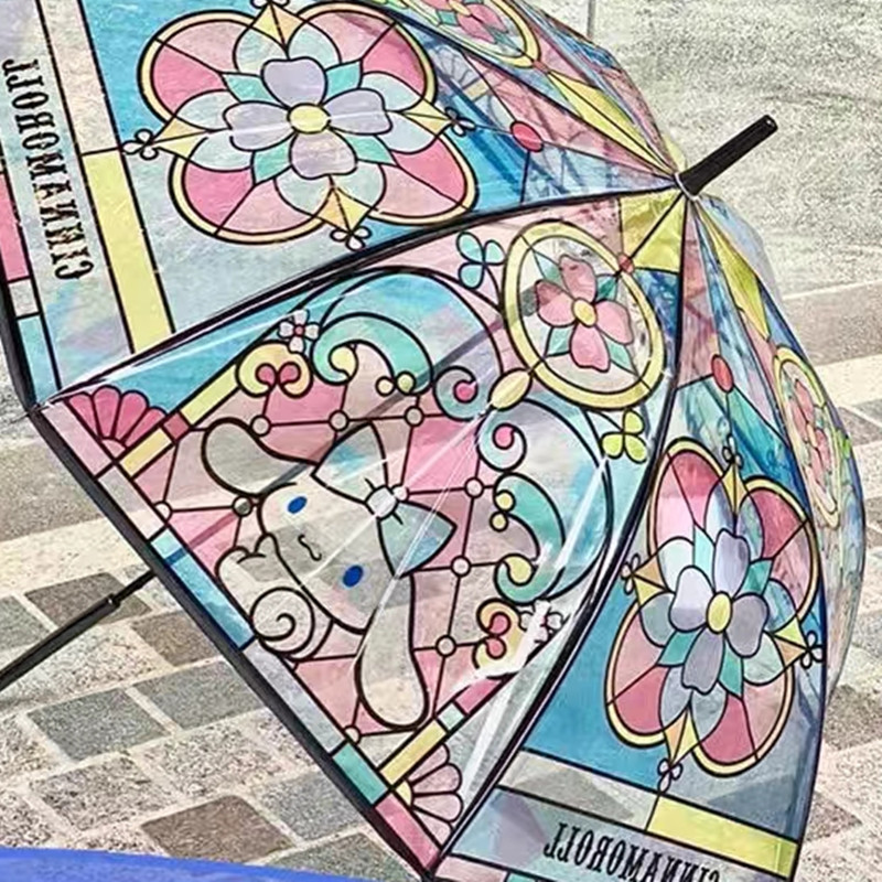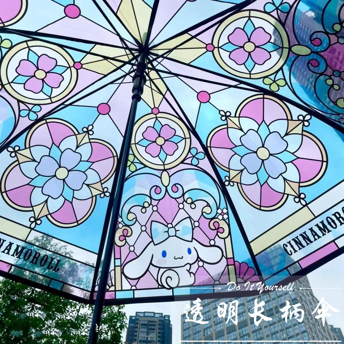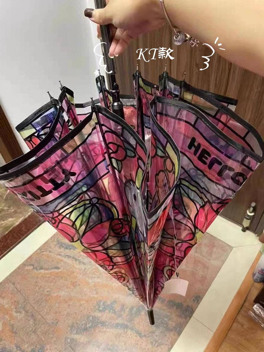 9URT批发透明长柄伞三丽玻璃彩绘雨伞加厚抗风洛米可爱女高颜值拍