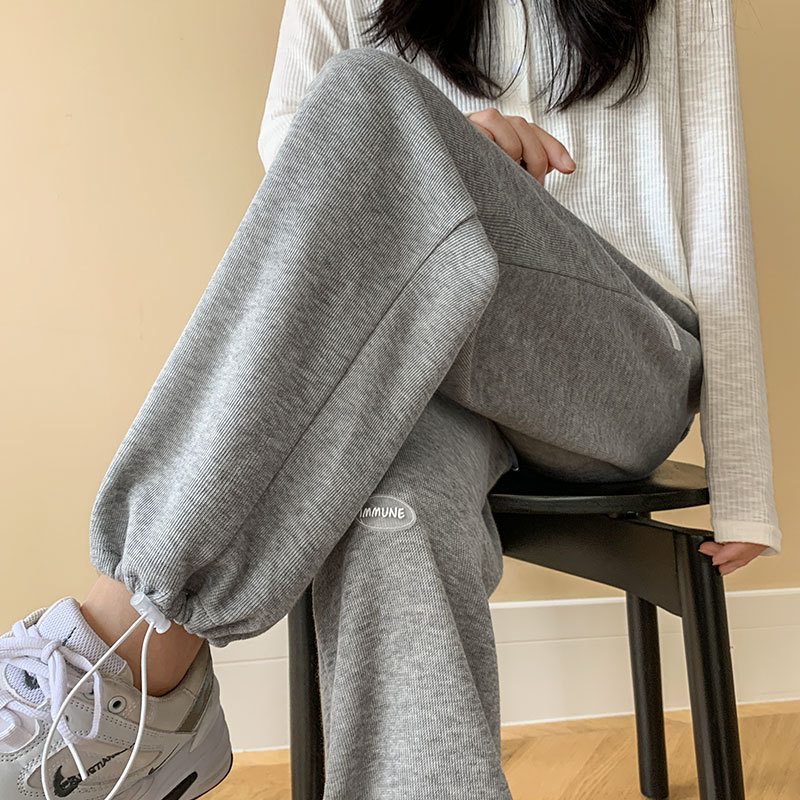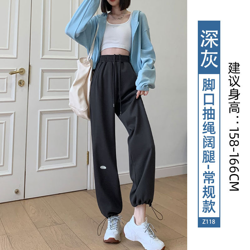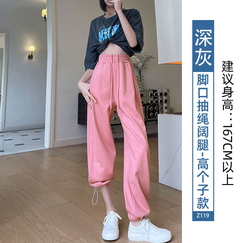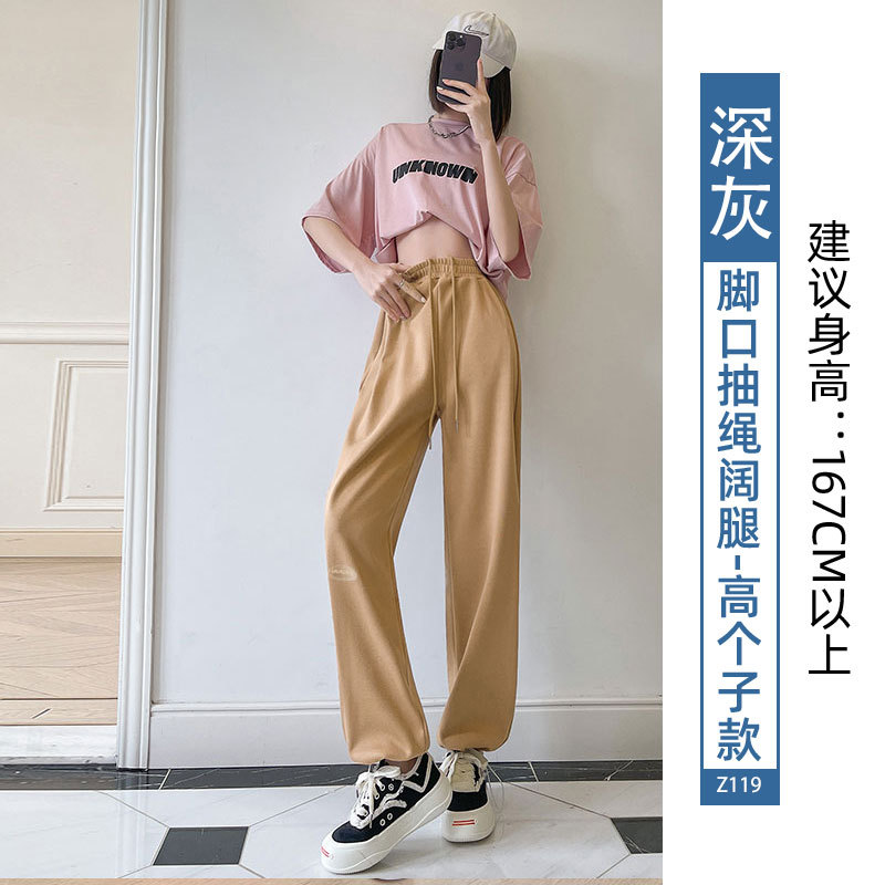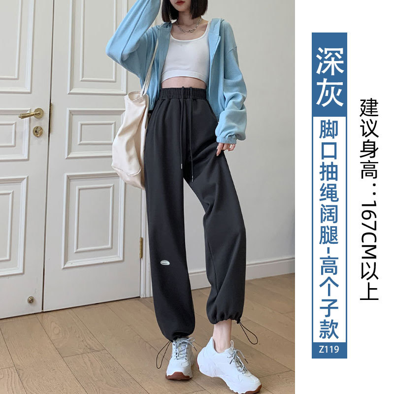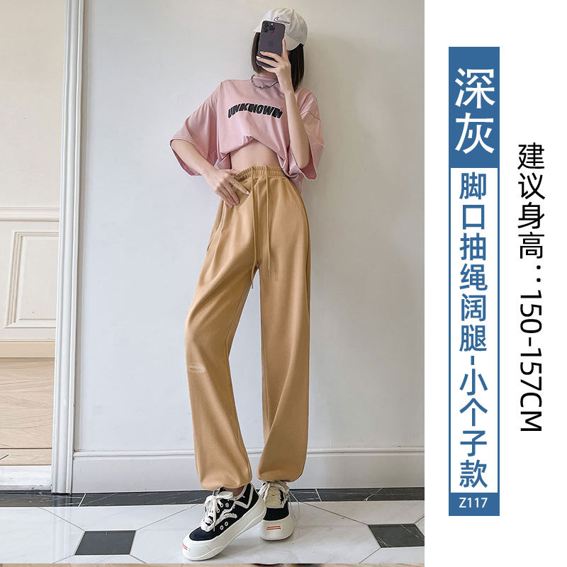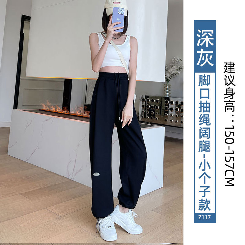 运动裤女裤子夏季2023新款束脚春秋季宽松休闲阔腿小个子灰色卫裤