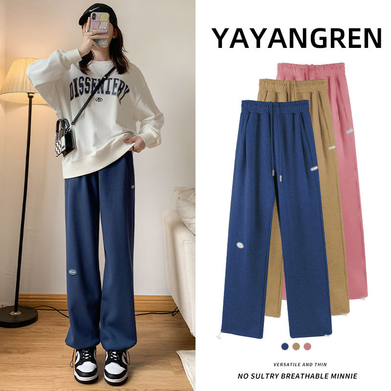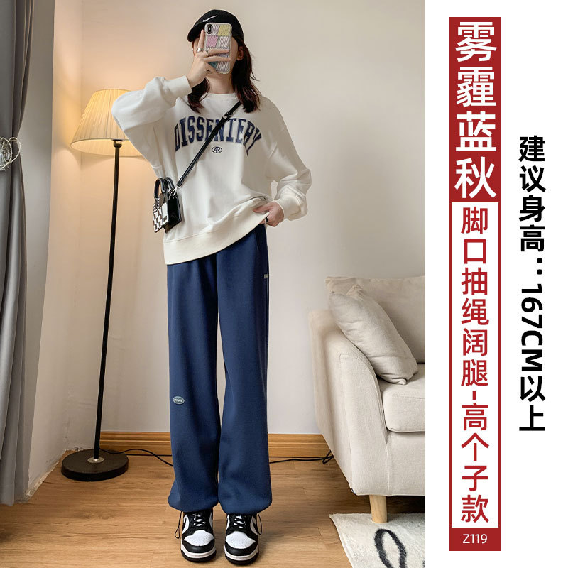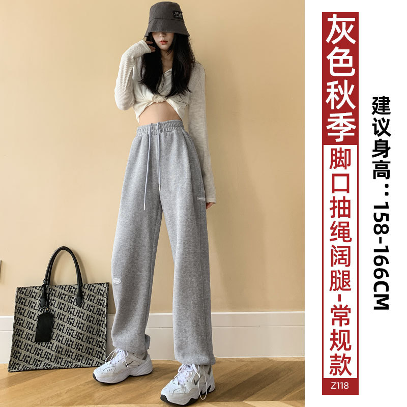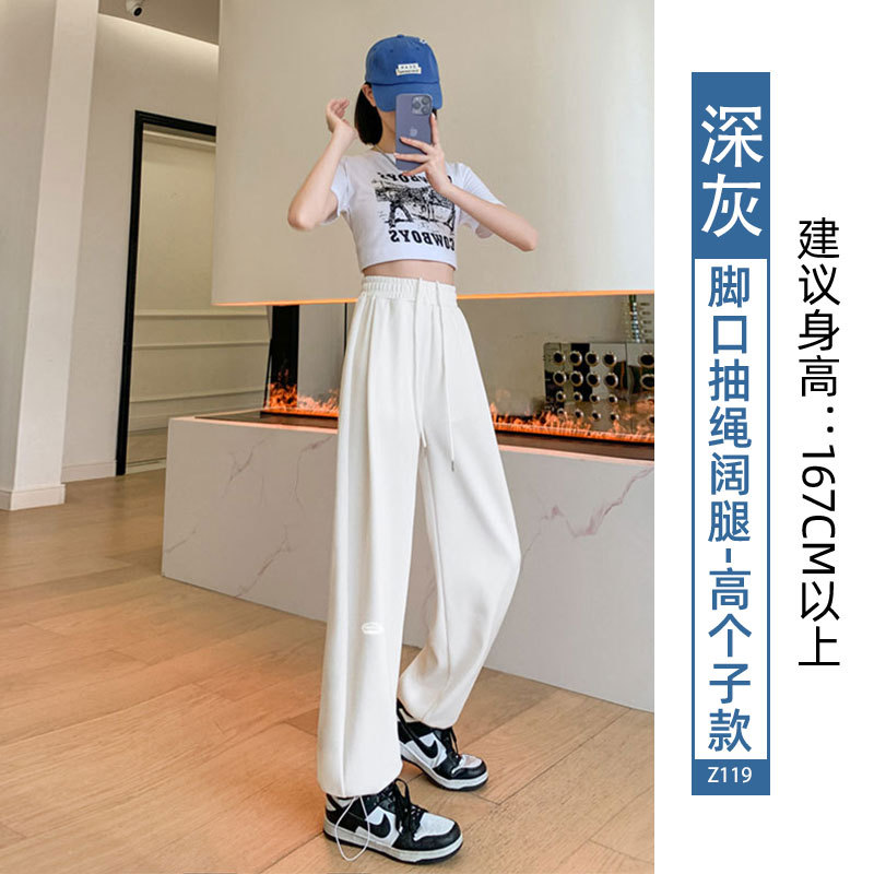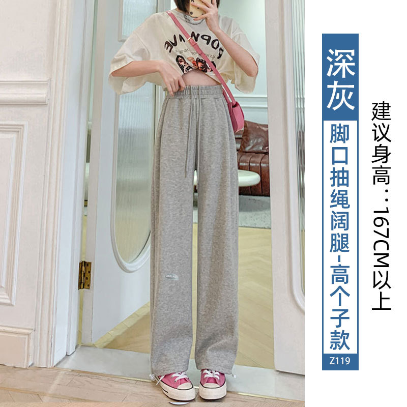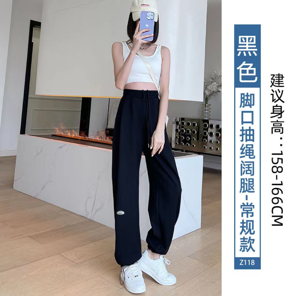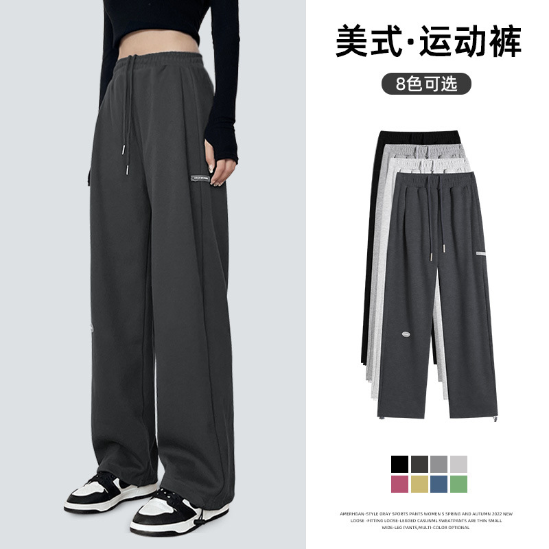 运动裤女裤子夏季2023新款束脚春秋季宽松休闲阔腿小个子灰色卫裤