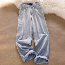上身巨显腿长!浅蓝复古阔腿牛仔裤女2023年新款直筒宽松拖地裤潮