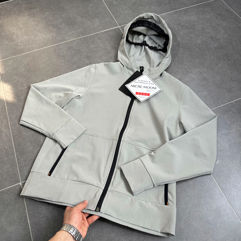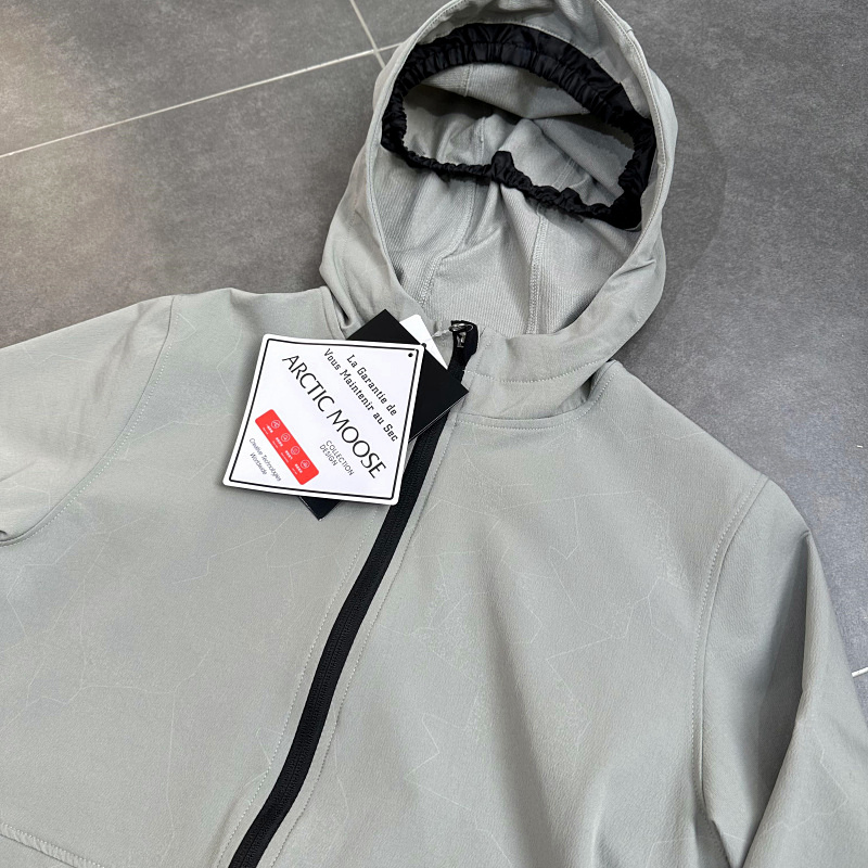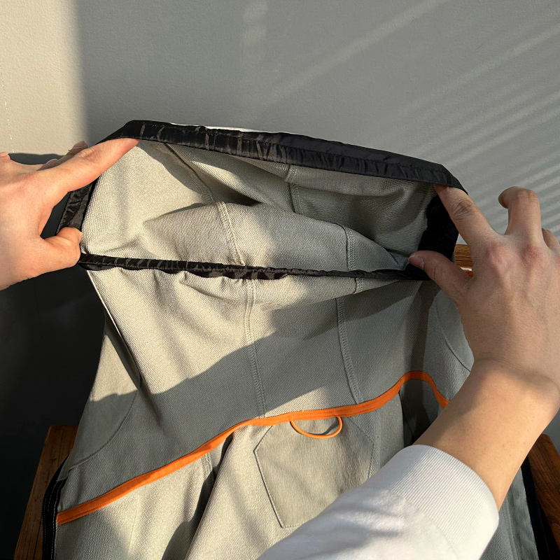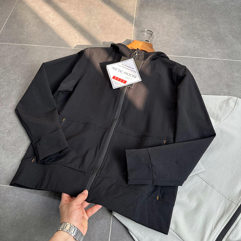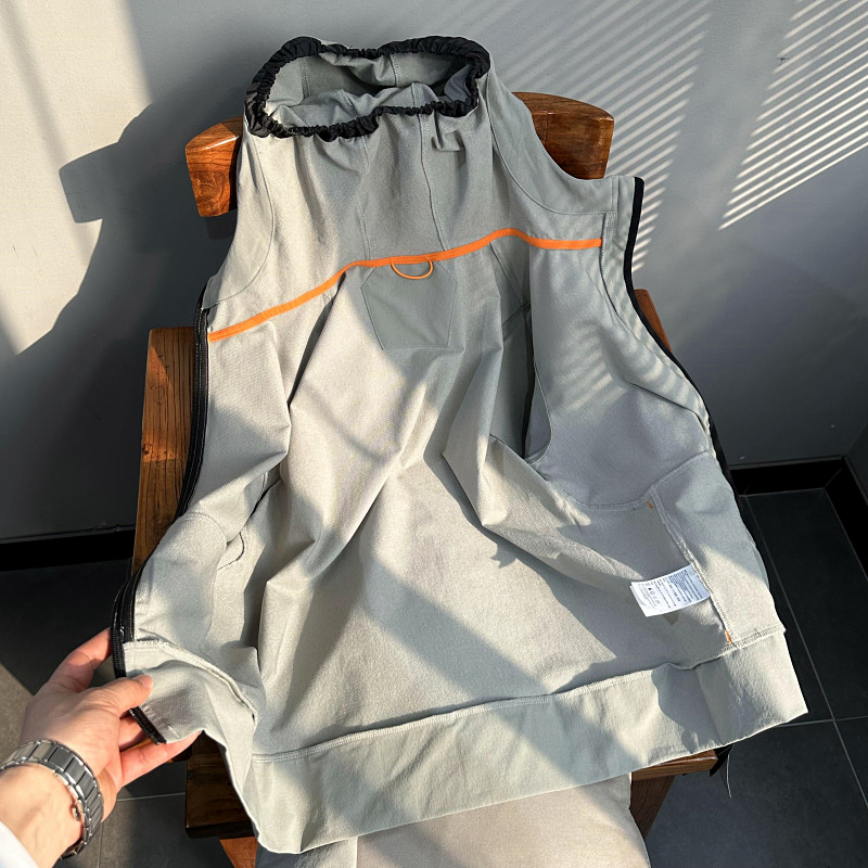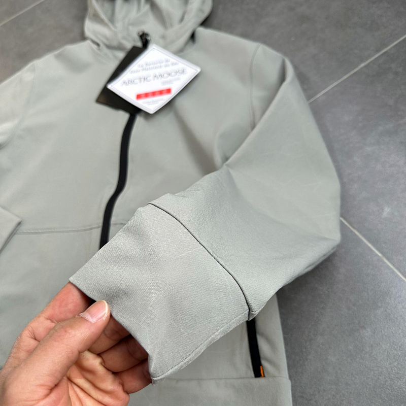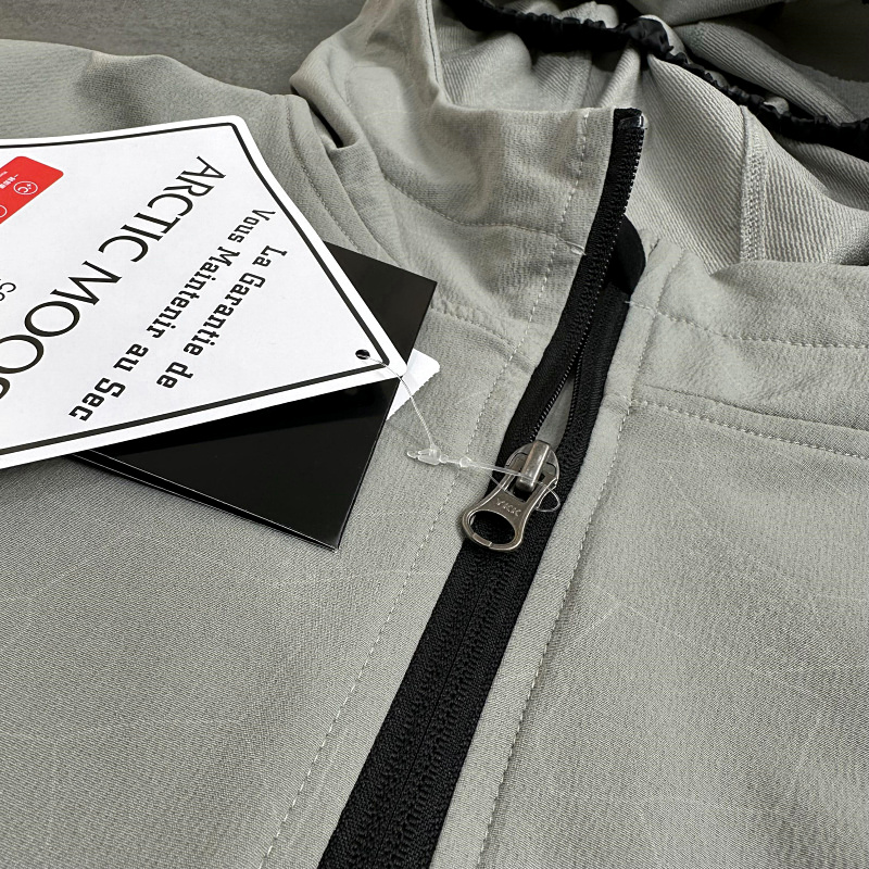 户外级专用连帽、防风领口,门襟、两侧拉链、都是无缝压胶工艺,
