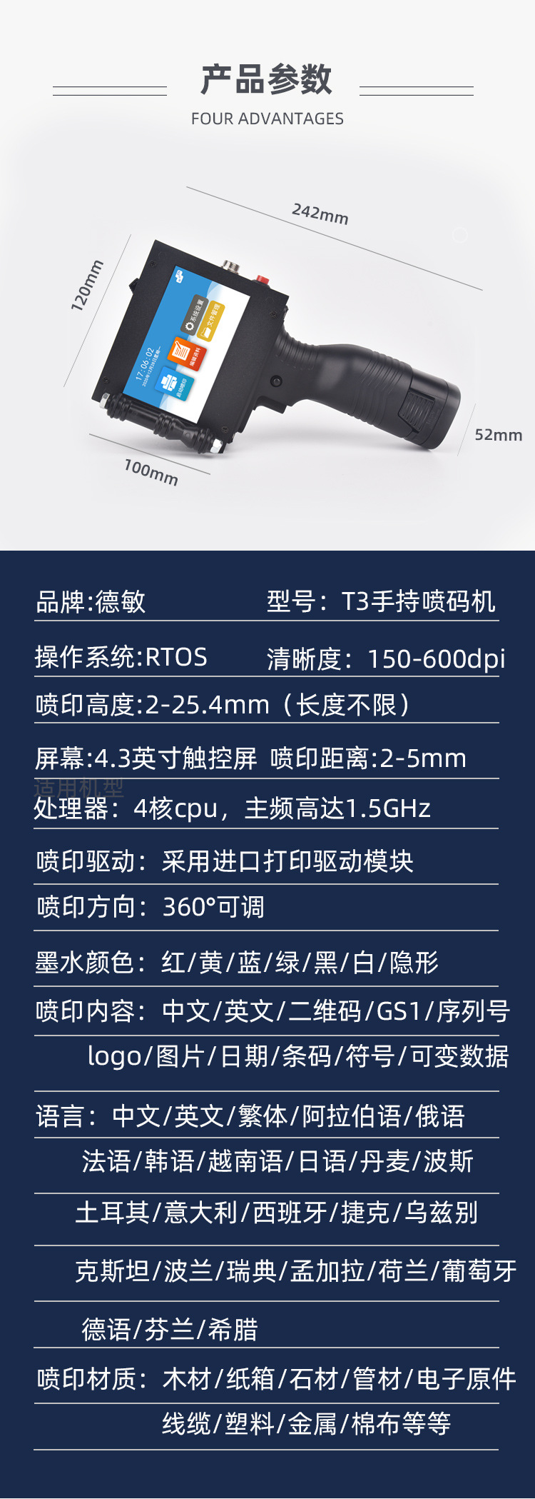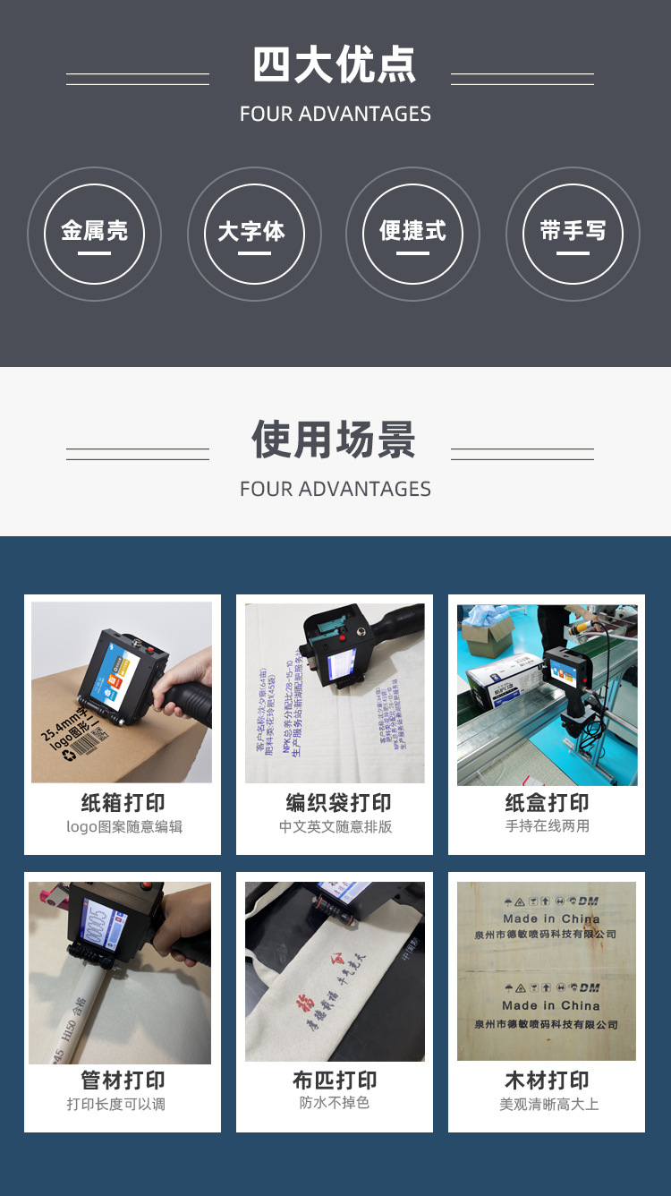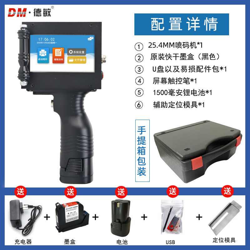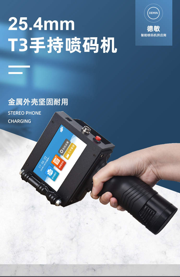 德敏T3全自动喷码机手持小型打码机一寸大字符生产日期标签打印机