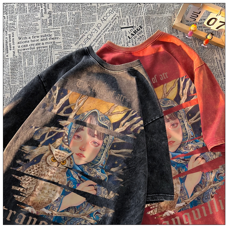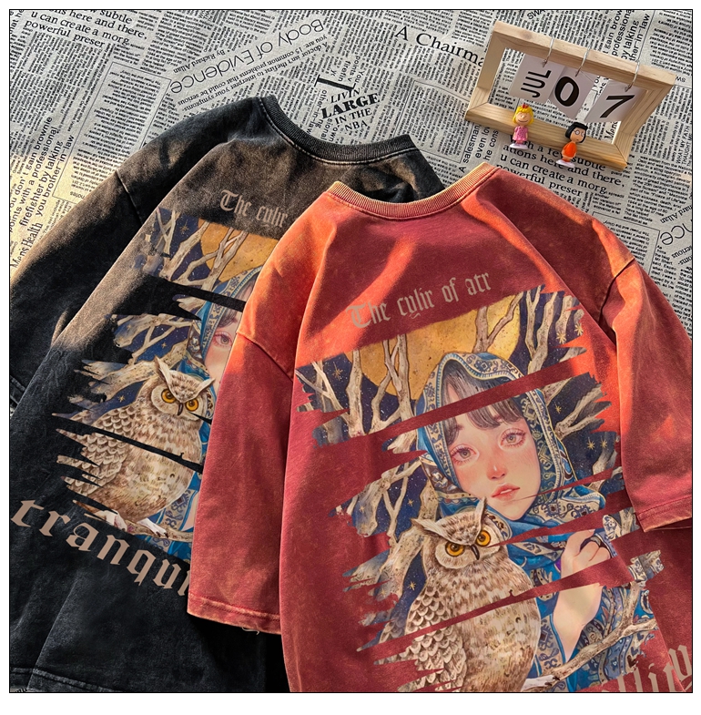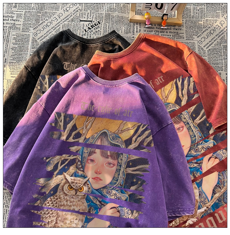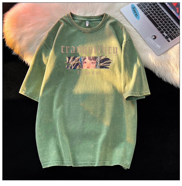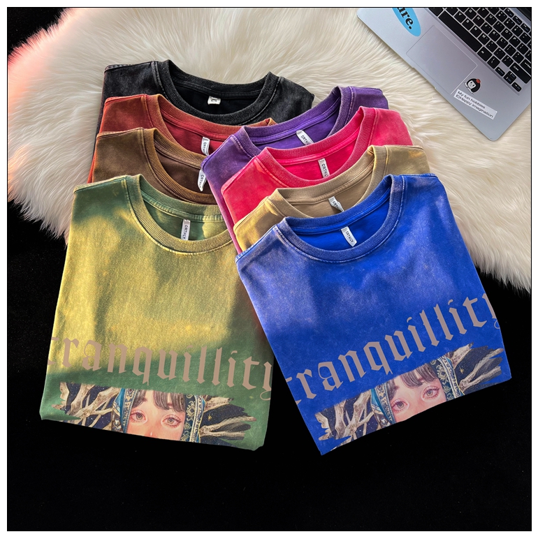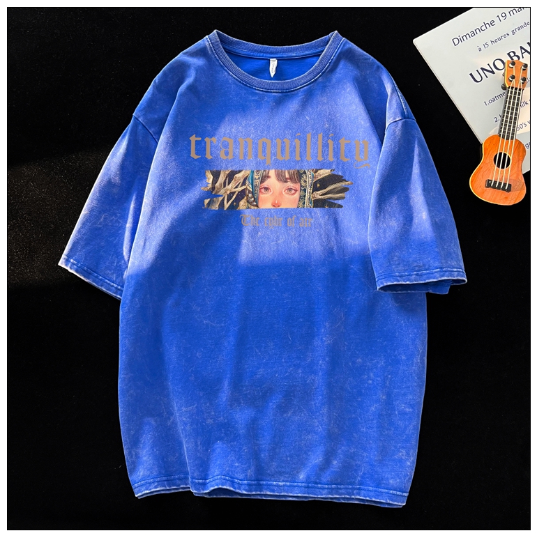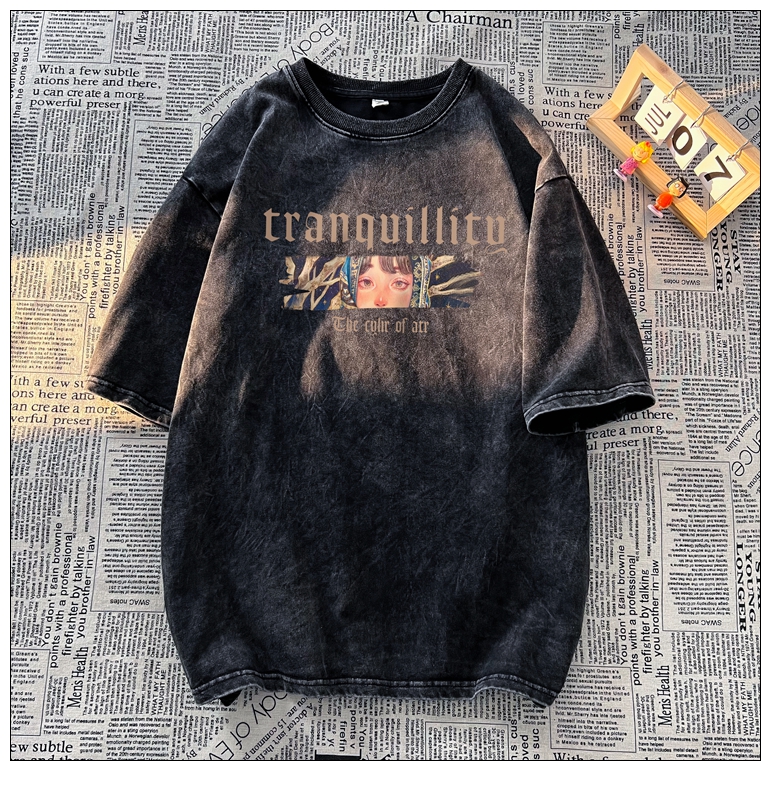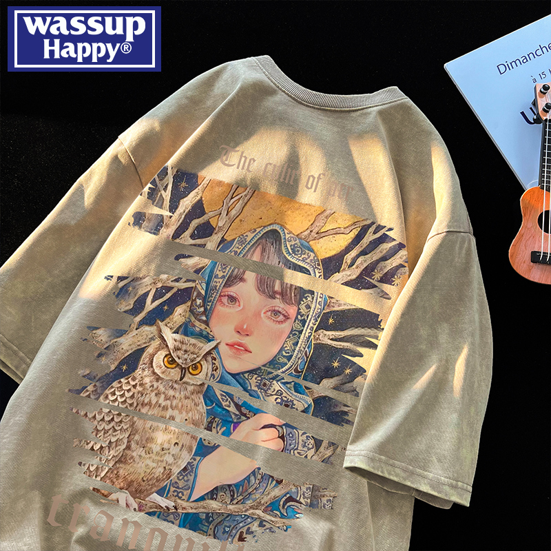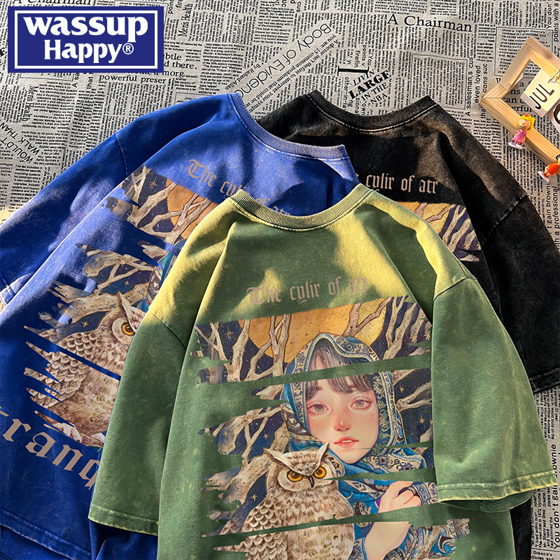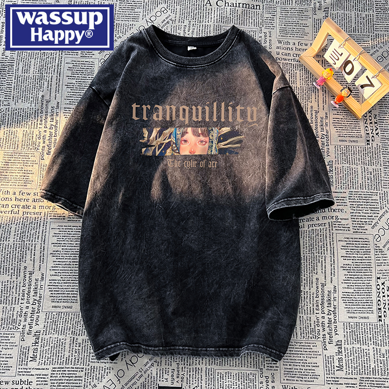 wassup happy美式高街潮牌短袖t恤男夏季復古潮休閒做舊半袖T恤