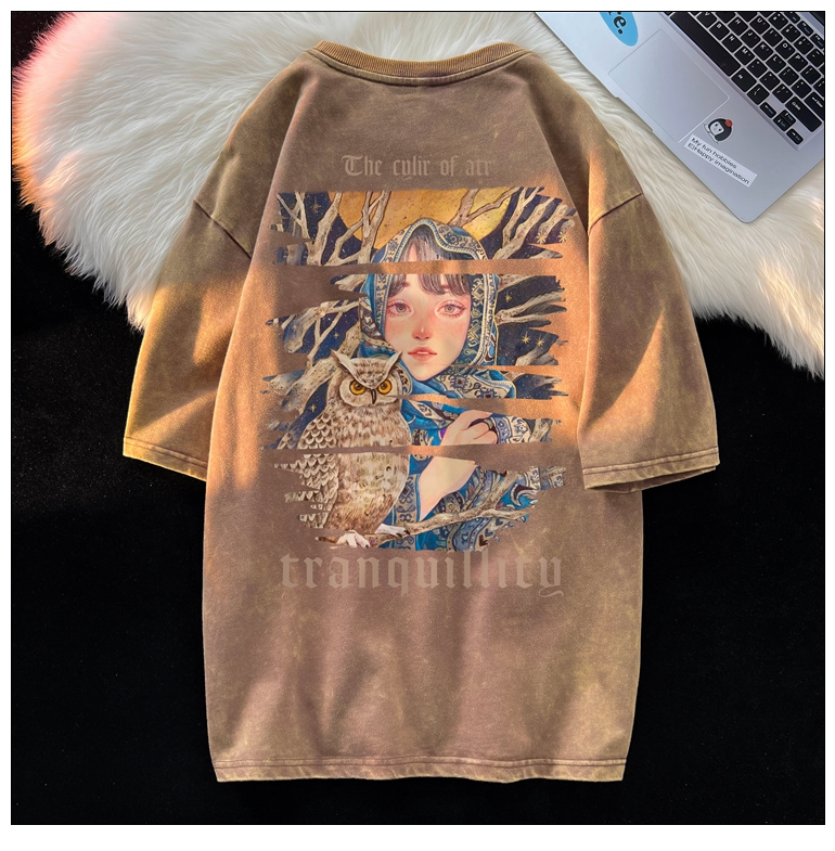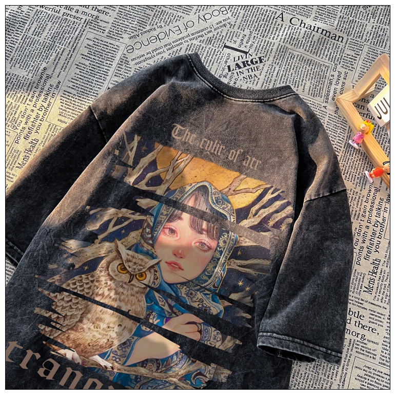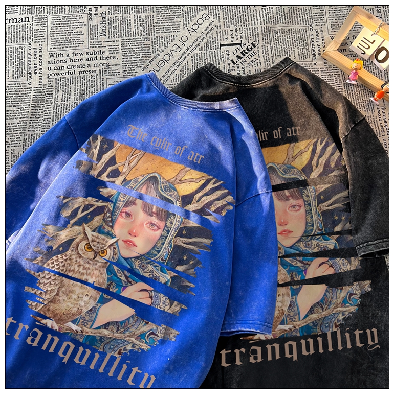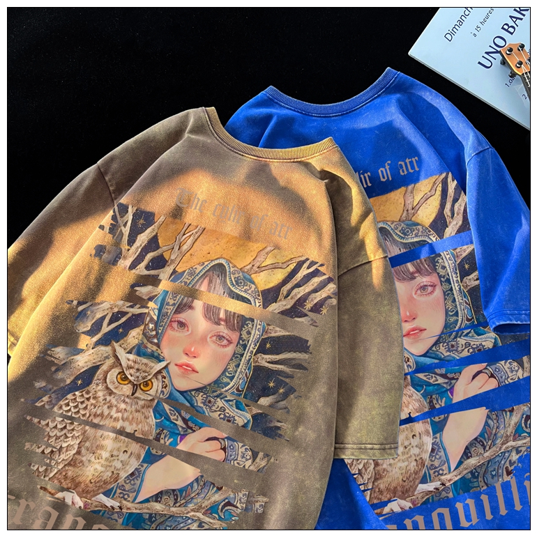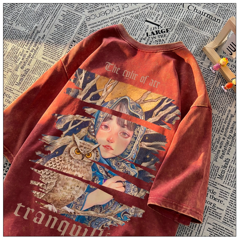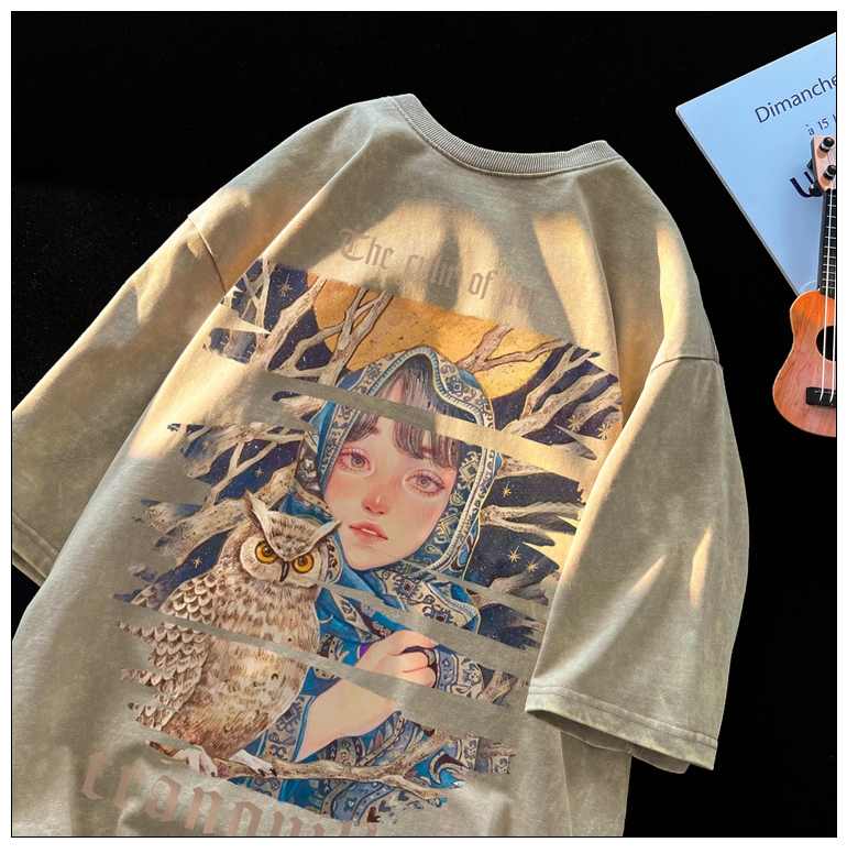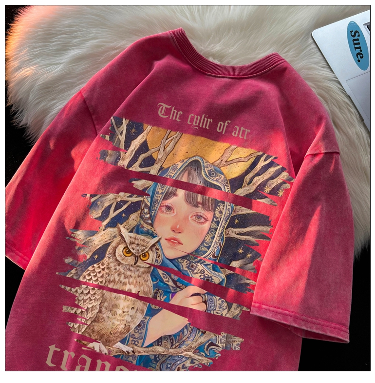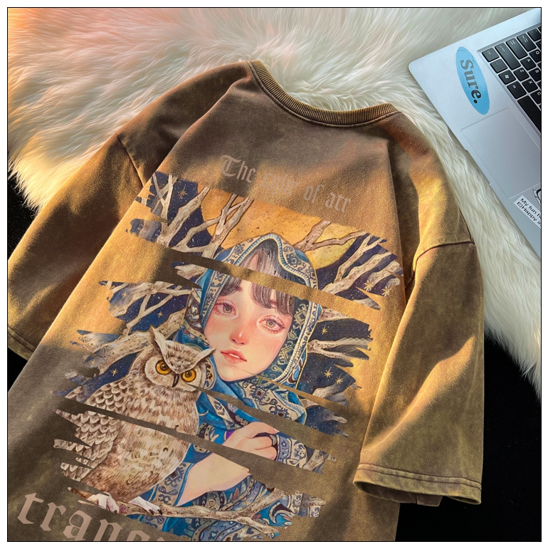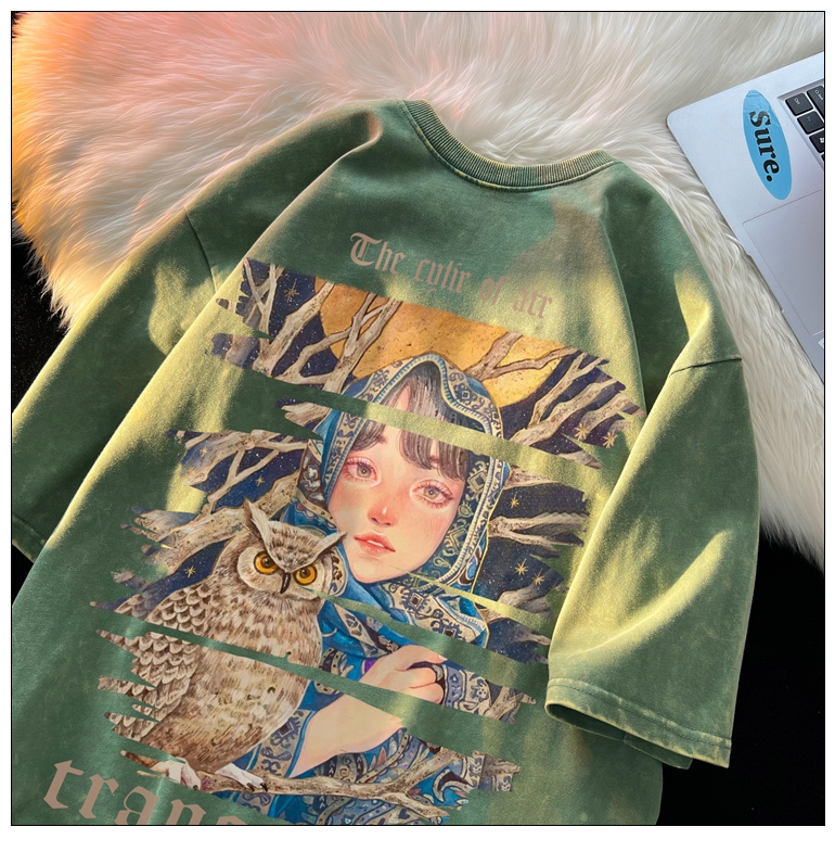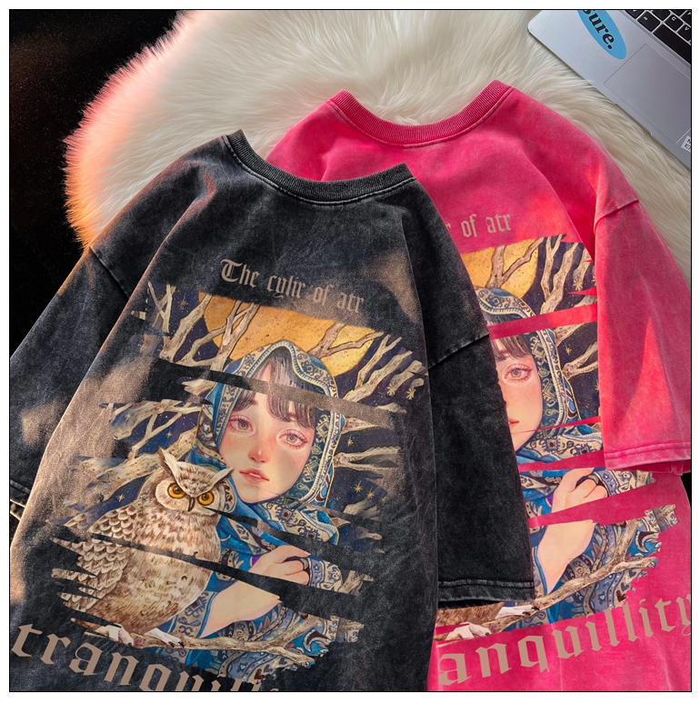 wassup happy美式高街潮牌短袖t恤男夏季復古潮休閒做舊半袖T恤