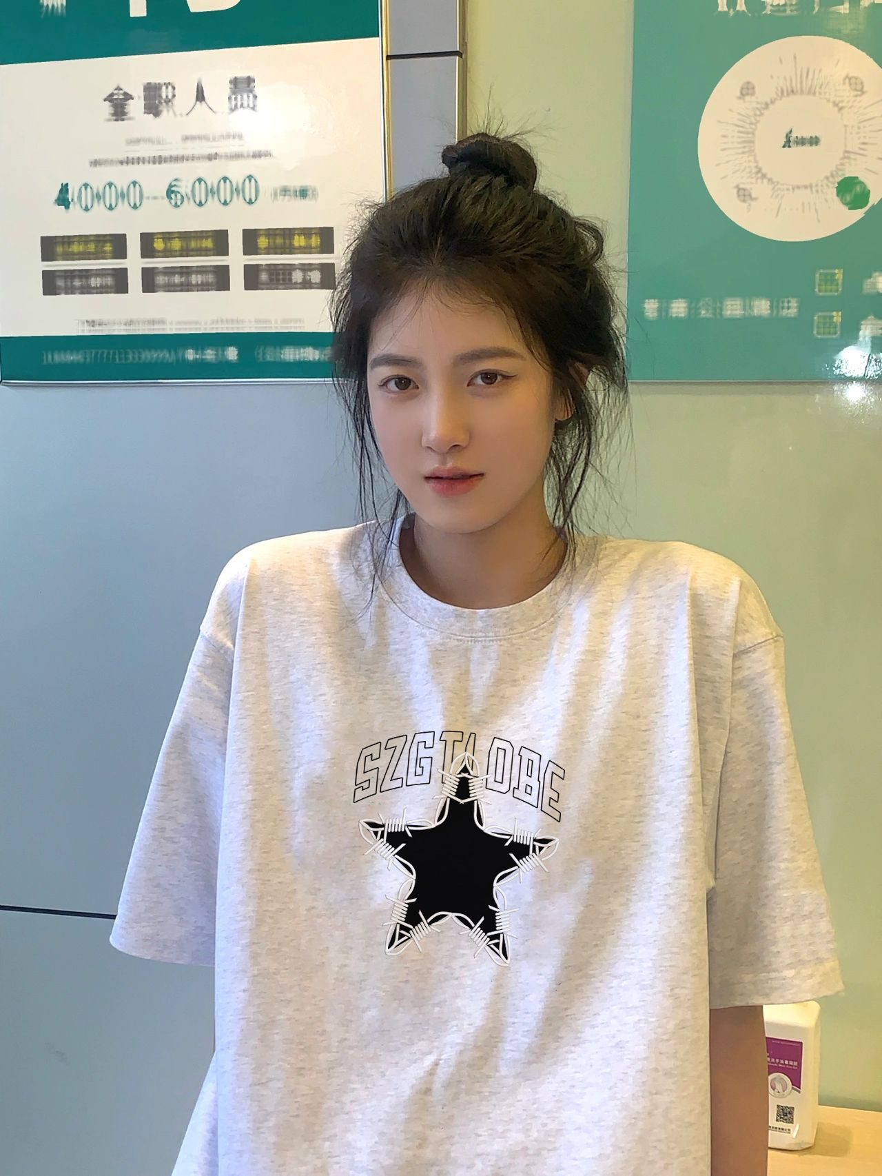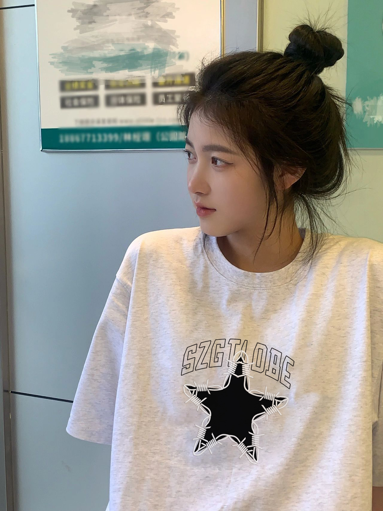白灰色純棉短袖t恤女夏季寬鬆小眾設計感oversize上衣美式復古潮