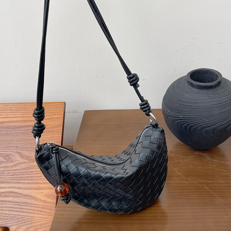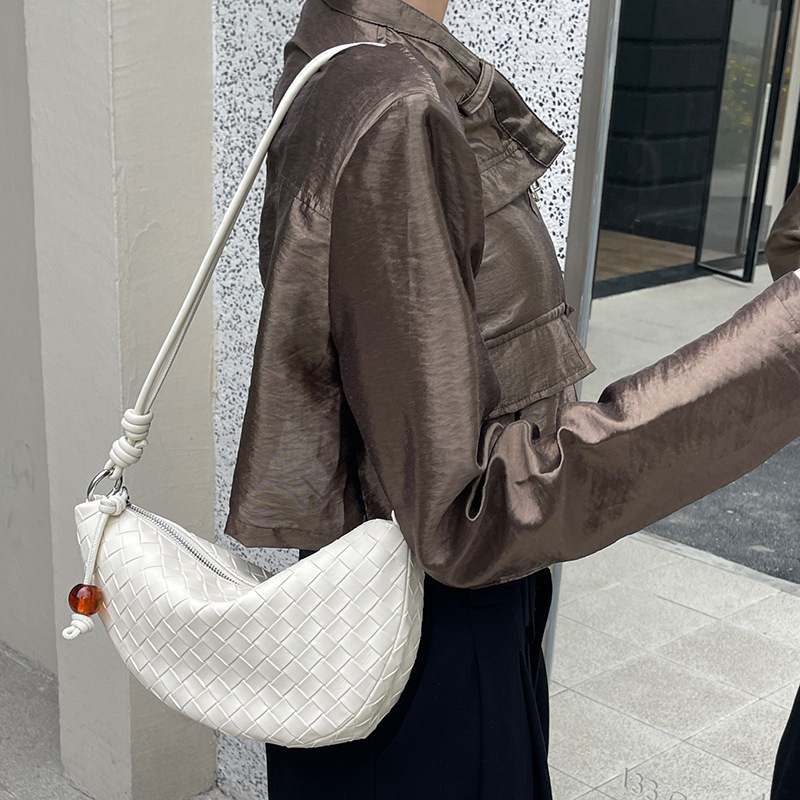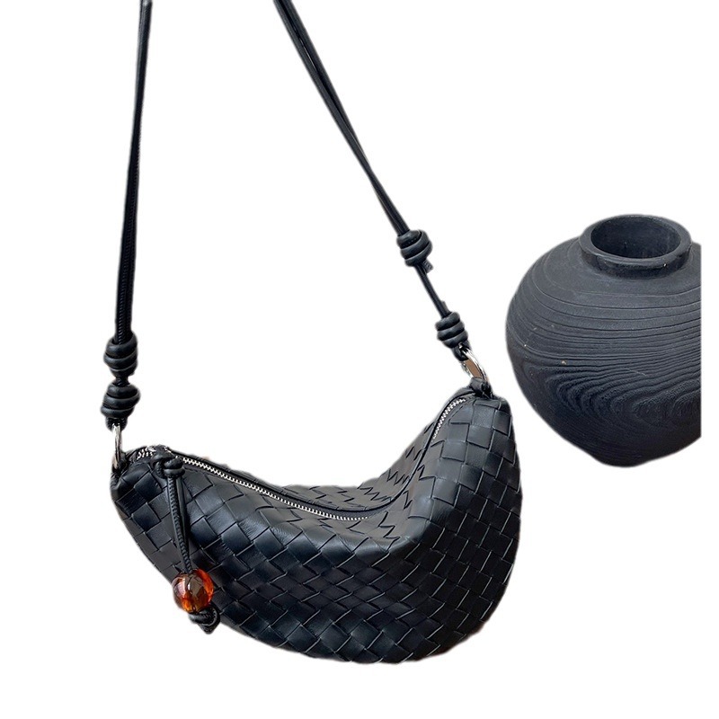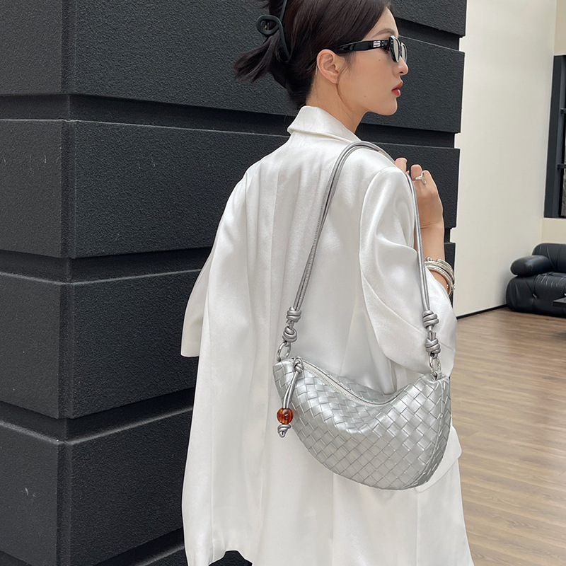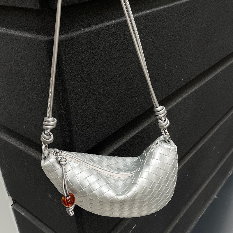 牛皮编织包银色包包女潮2024新小众水壶包月牙腋下包斜挎包饺子包