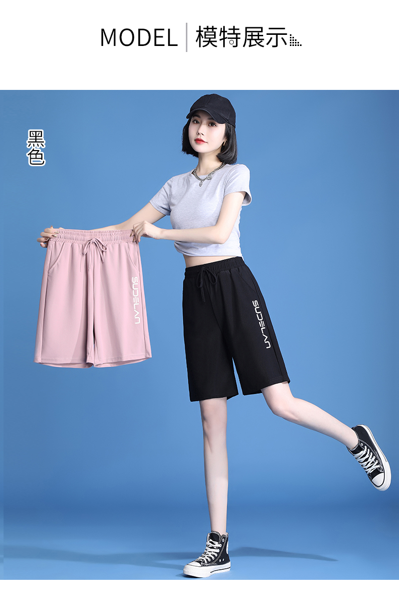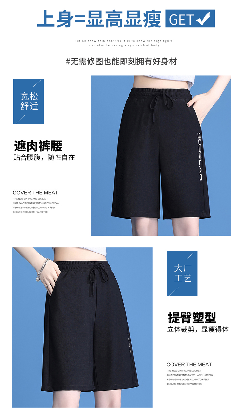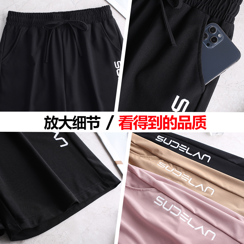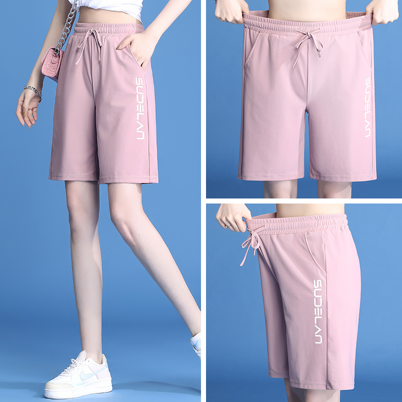 休閒短褲女夏薄款冰絲速乾運動2023新款高腰大尺碼寬鬆闊腿五分五分褲