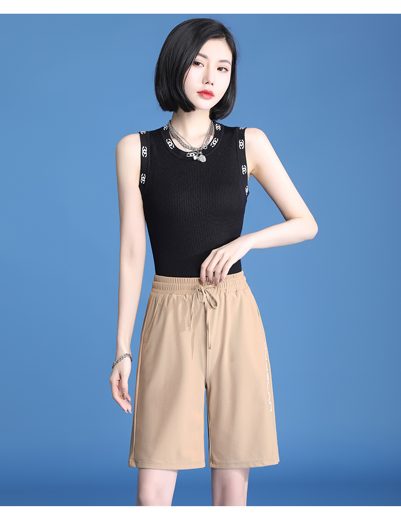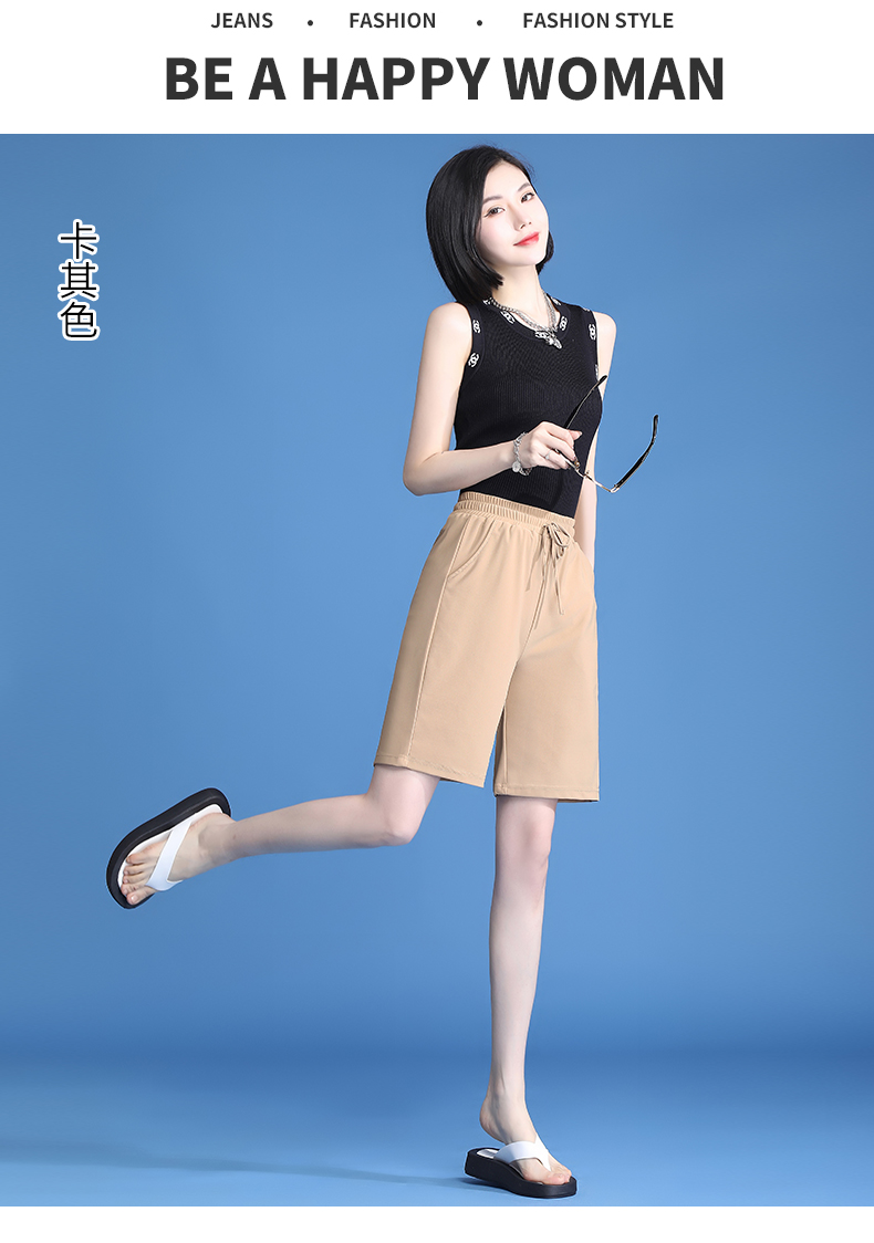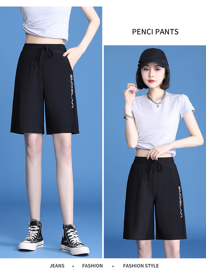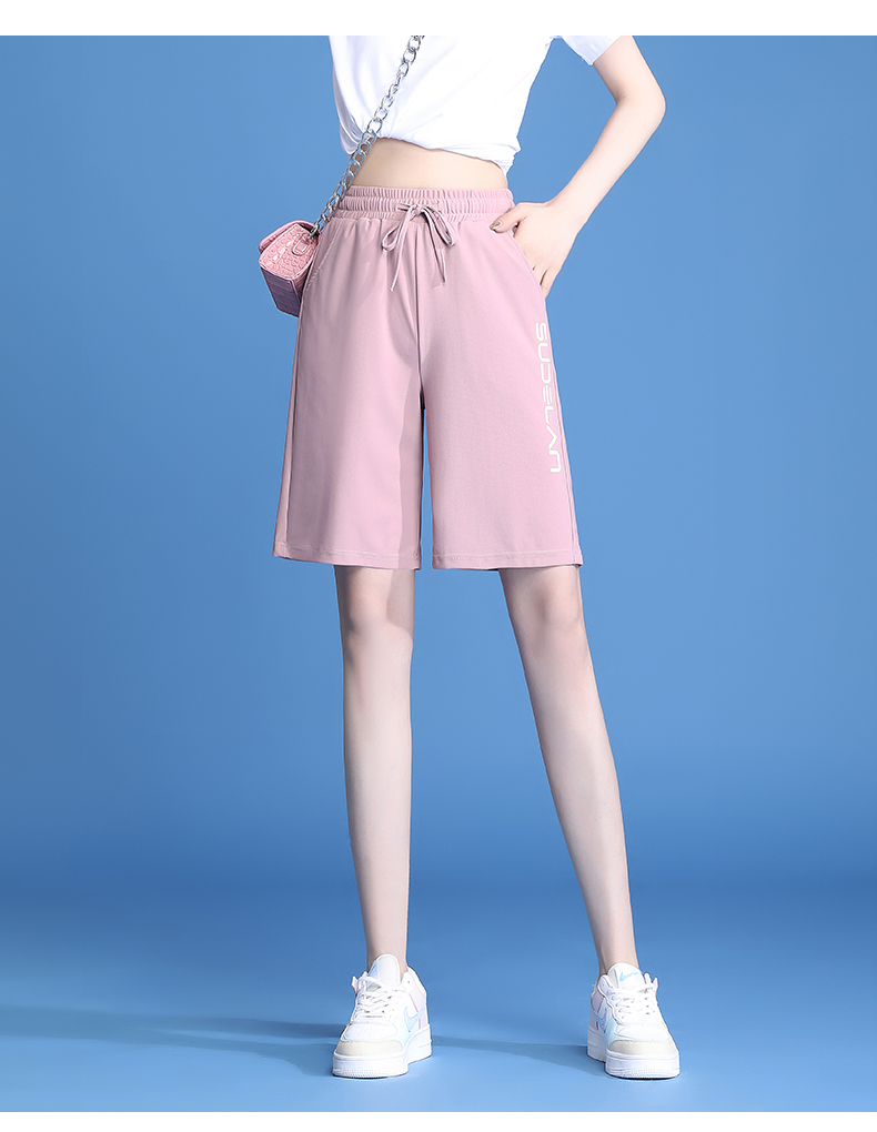 休閒短褲女夏薄款冰絲速乾運動2023新款高腰大尺碼寬鬆闊腿五分五分褲