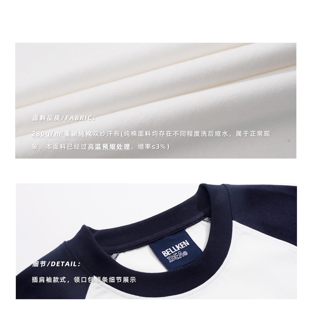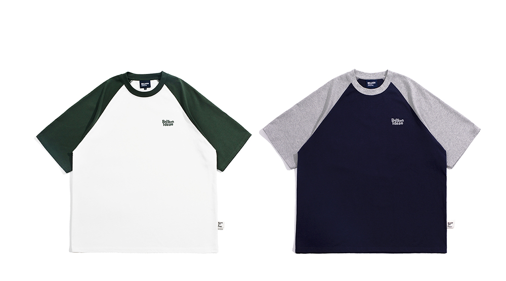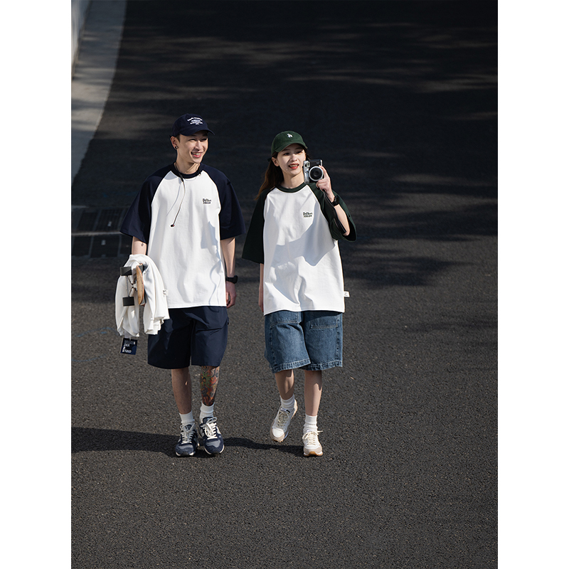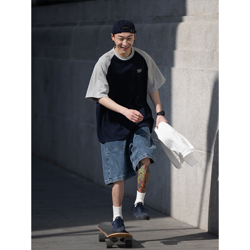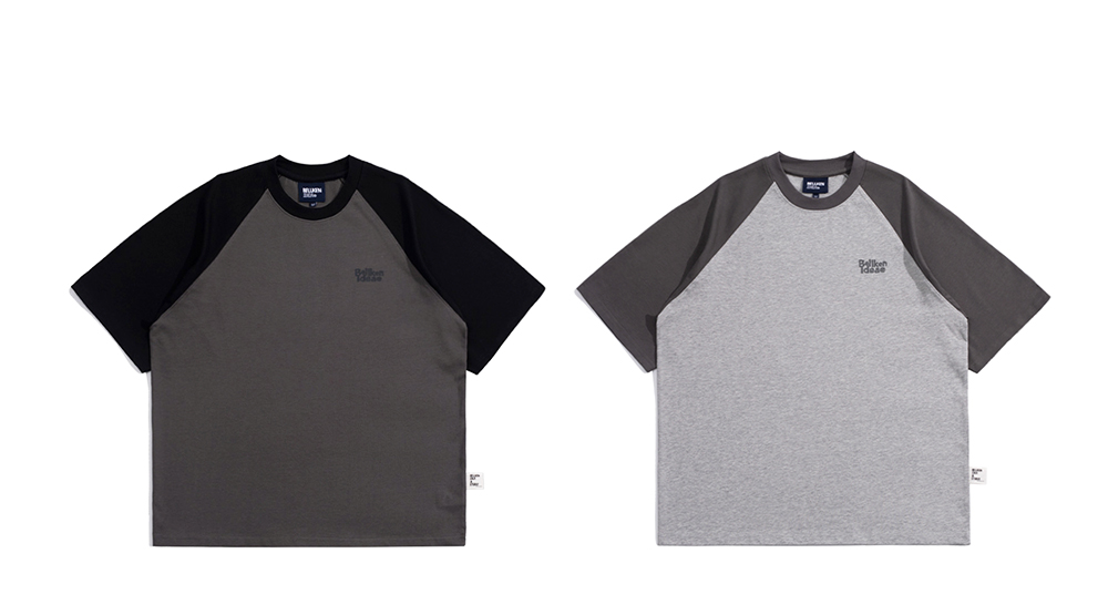 Bellken重磅純棉280g日系少年感插肩袖T恤打底衫男寬鬆拼接袖短袖