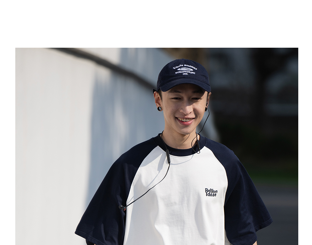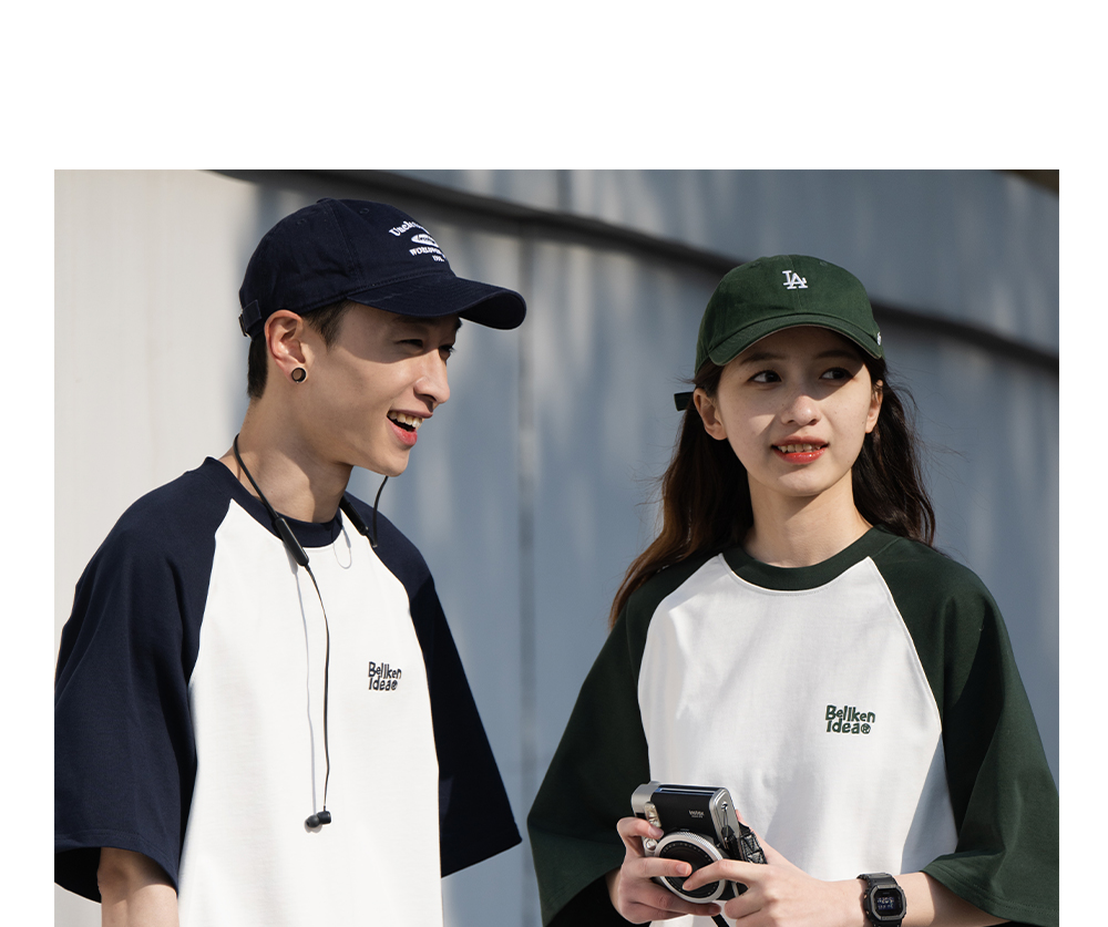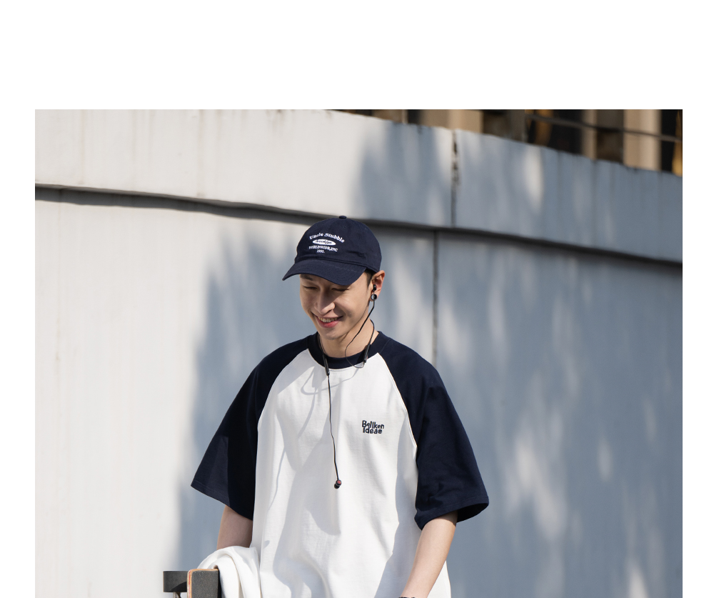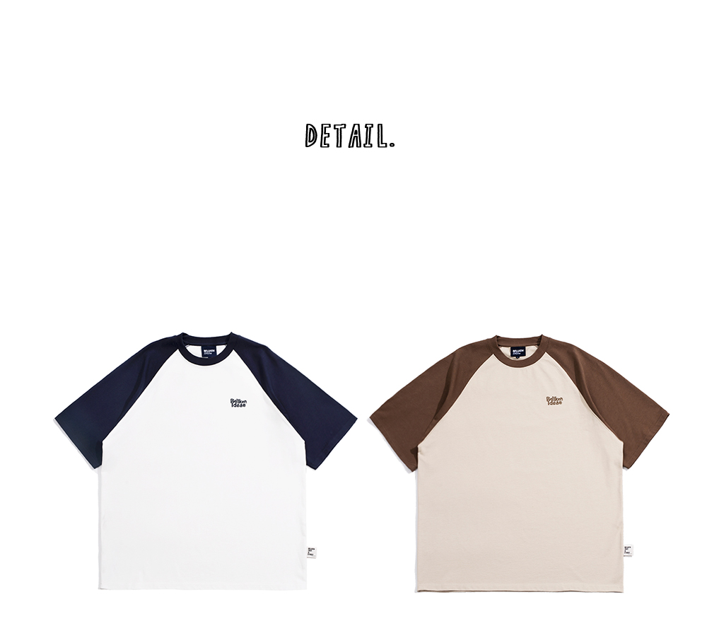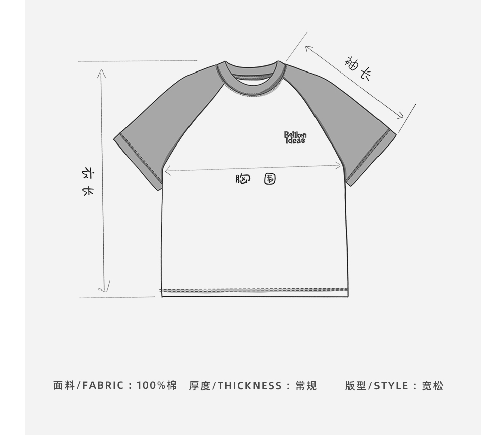 Bellken重磅純棉280g日系少年感插肩袖T恤打底衫男寬鬆拼接袖短袖