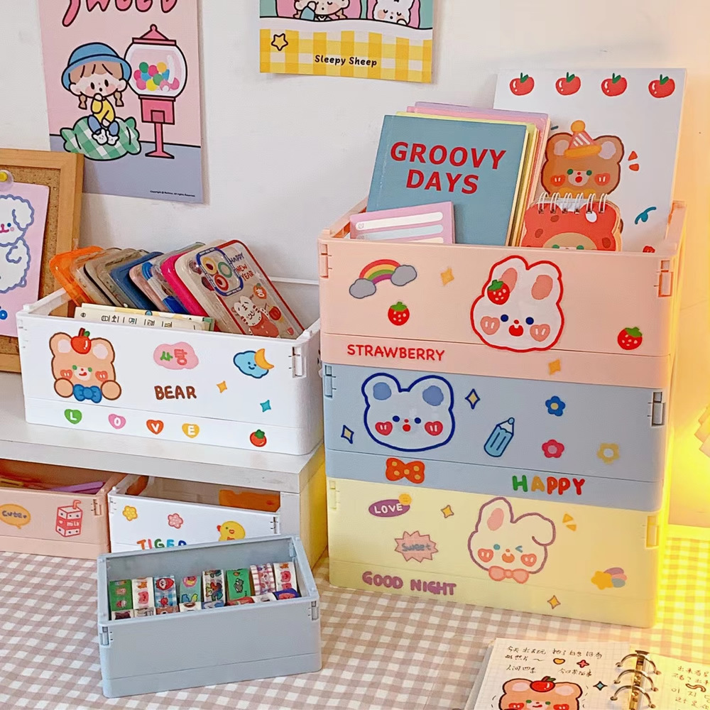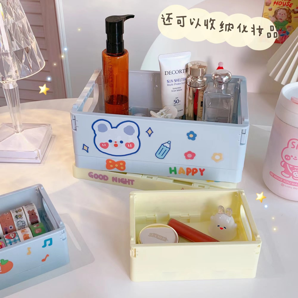 宿舍桌面收纳盒书本零食玩具收纳筐简约可折叠整理储物箱杂物小篮