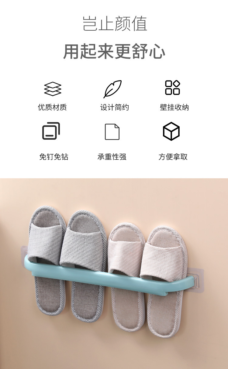厨房卫生间多功能毛巾架鞋架浴室壁挂式拖鞋架免打孔卫生间浴巾杆