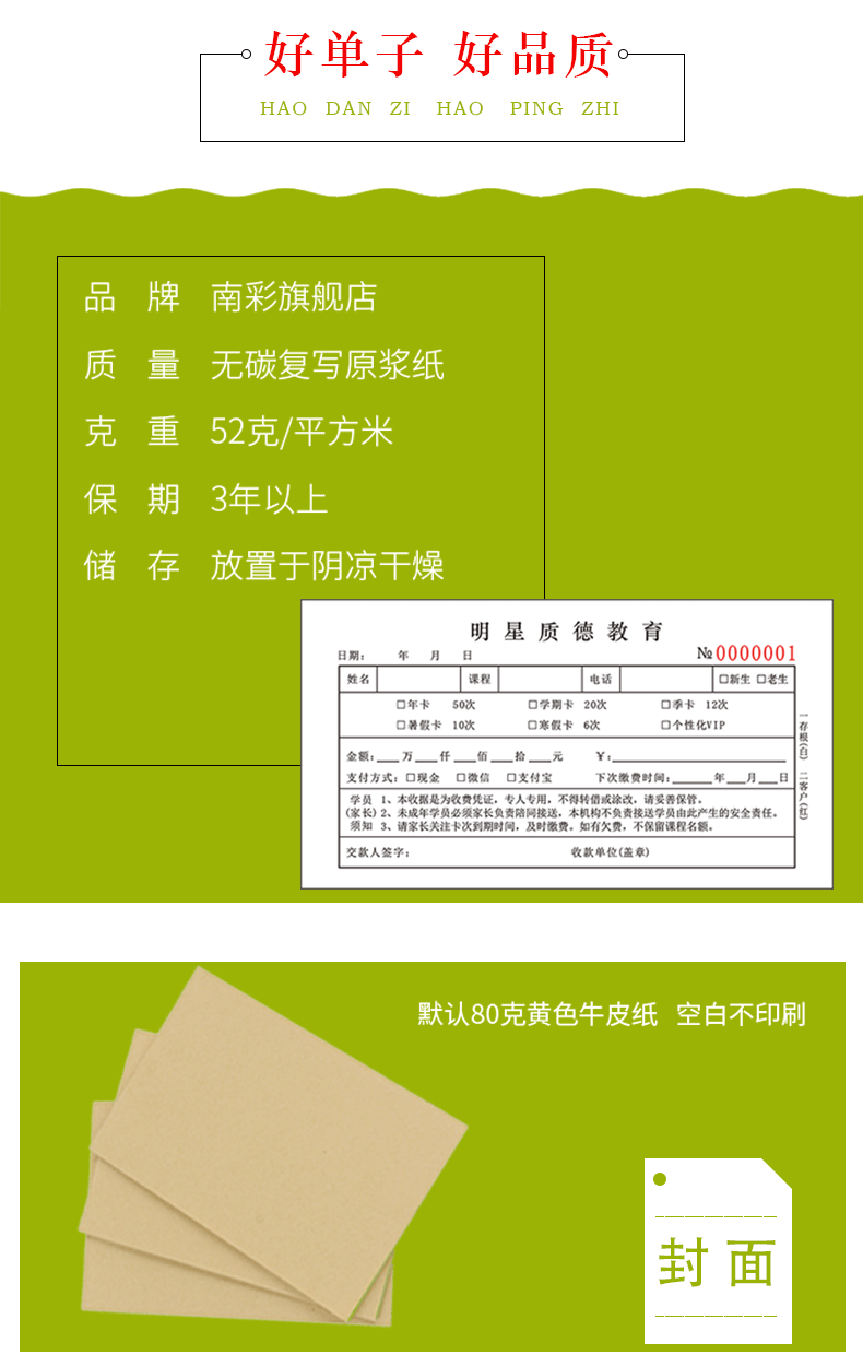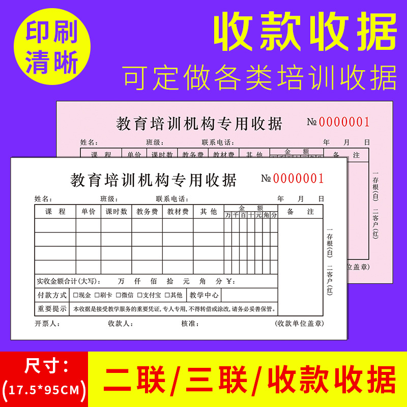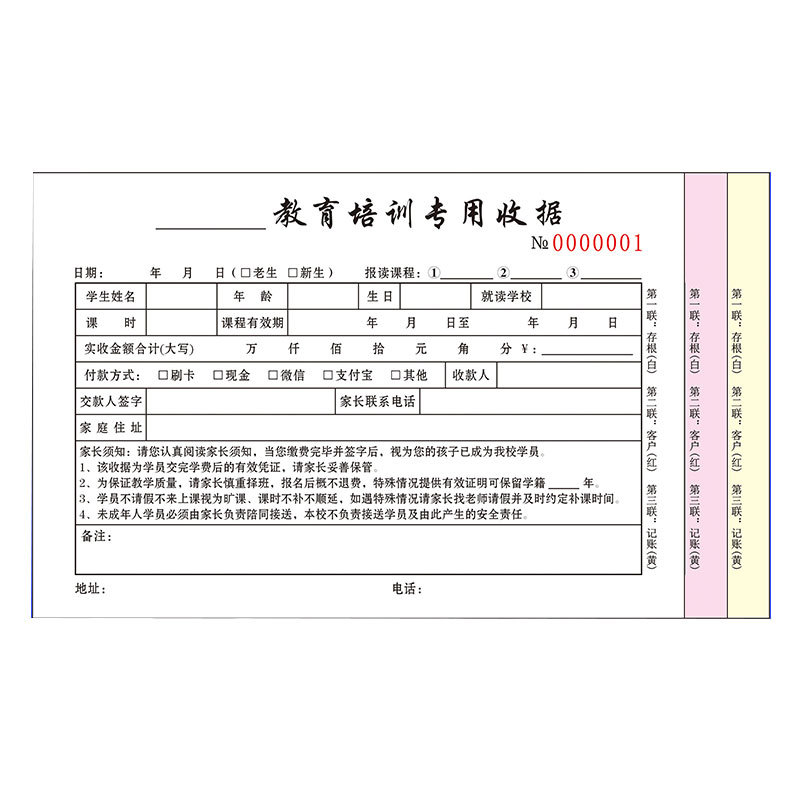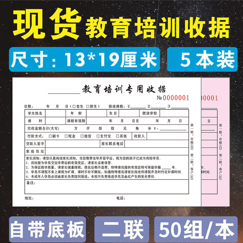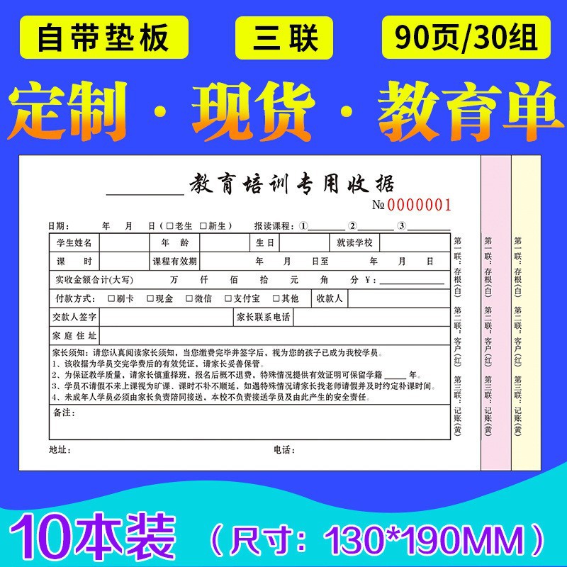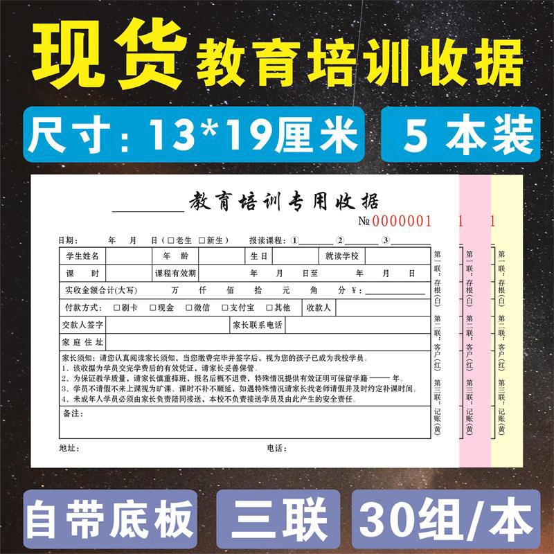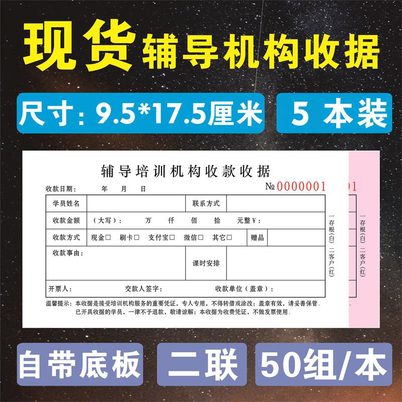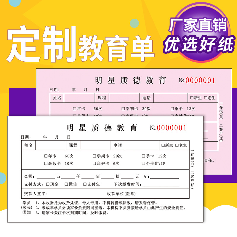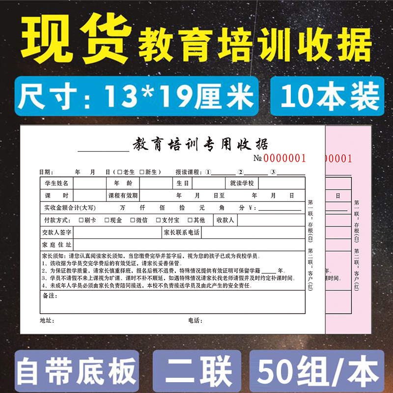 规格 48开小本辅导收据/二联/100页/5本,48开小本辅导收据/二联/100页/10本,32开大本教育收据/二联/100页/5本,32开大本教育收据/二联/100页/10本,32开大本教育收据/三联/90页/5本,32开大本教育收据/三联/90页/10本,48开小本教育培训收据/二联/100页/5本,48开小本教育培训收据/二联/100页/10本,学员登记单/单联/50张/5本装